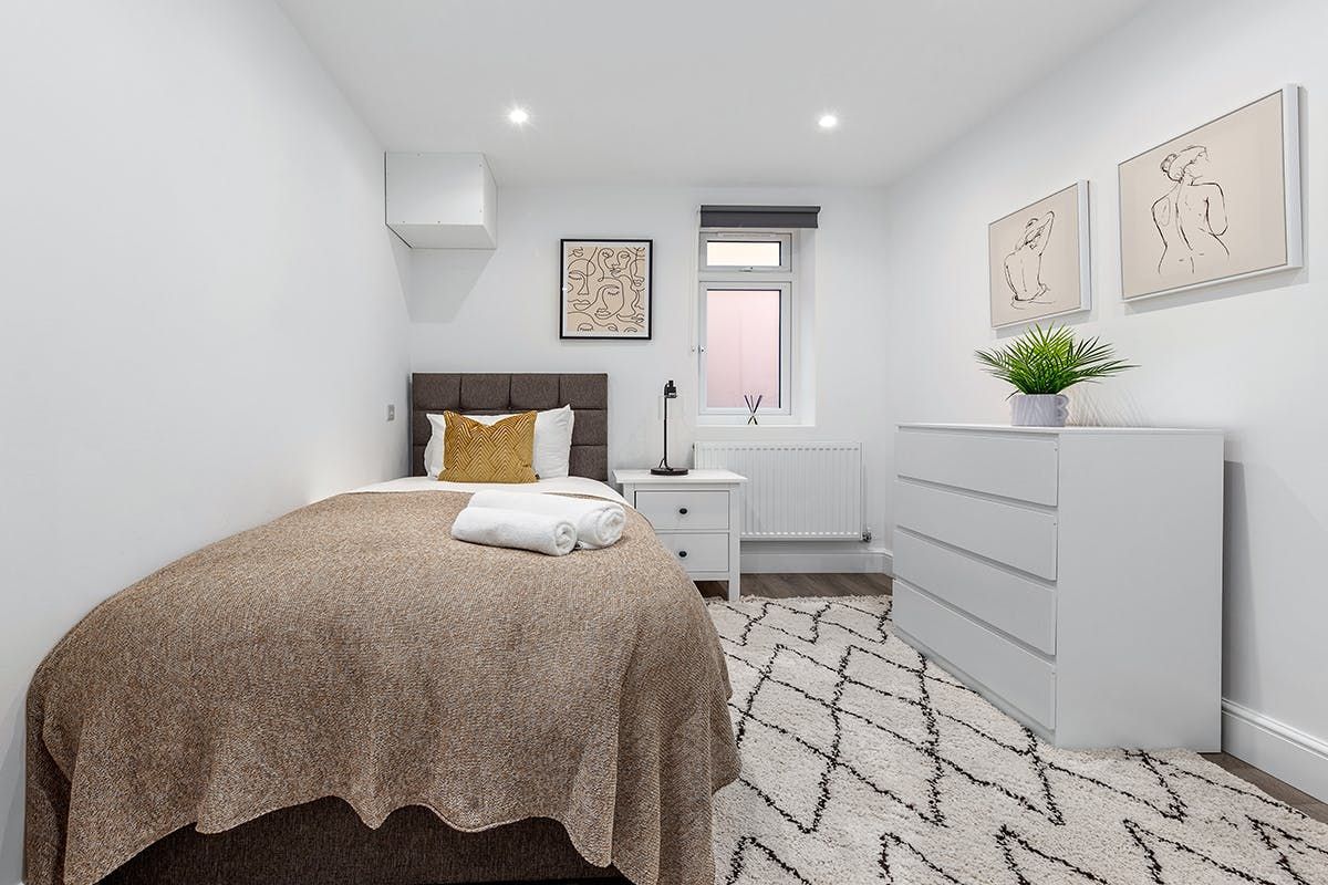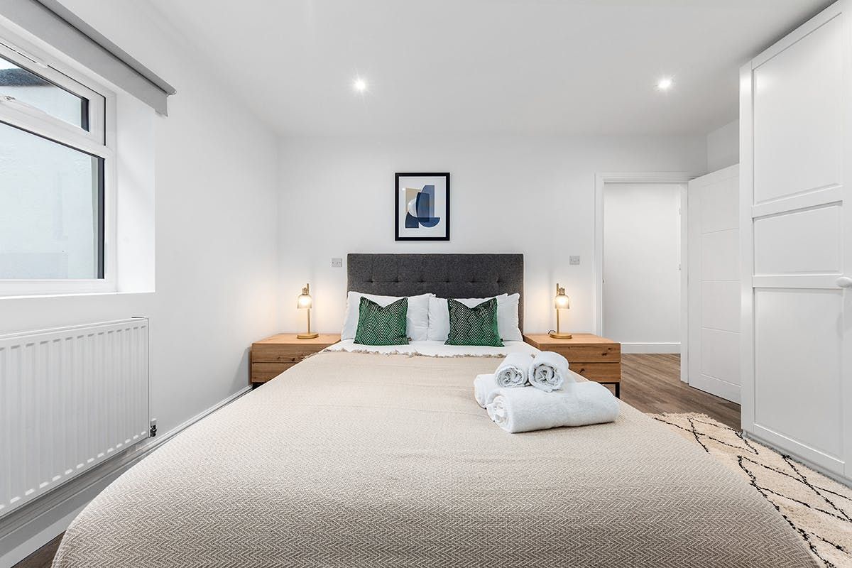Tucked away in London's northwest, this ground-floor apartment promises an ideal hideaway from the lively city. It's on the ground floor of a townhouse so there's a chance you might hear some noise from residents upstairs, but you'll have access to the spacious garden from the main bedroom, with some outdoor seating for enjoying an evening drink. At full capacity, one guest will sleep on the sofa bed in the living room, and there's parking outside for one car. If you're not driving though, fear not – you'll find Hendon Central Station close by, with regular trains into the heart of London.