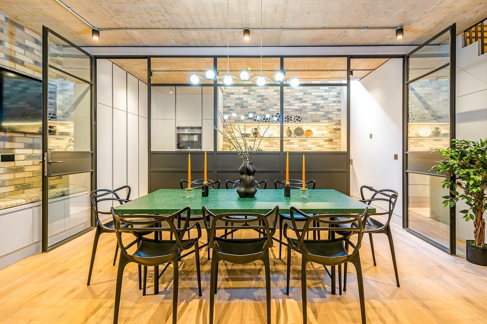 Sleek and contemporary, this industrial-inspired apartment is the epitome of modern living. It's set over two floors, giving a small family or group plenty of space to spread out. High-end amenities abound – lush hotel-quality linens, underfloor heating, Nordic Quooker boiling water taps, double Siemens ovens and lavish rainfall showers are just a few of the touches that make a stay here feel extra luxurious. Whether you're lounging on the soft velvet sofa with a book from the host's library, hosting a dinner party in the striking dining area or nodding off in the cosy bedrooms, you're sure to feel right at home. And location-wise, this flat is spot-on. Tucked away on a quiet traditional mews in the heart of Bloomsbury, you're a short stroll away from three different underground stations (Chancery Lane is the closest, just six minutes on foot) and only a thirteen-minute walk from The British Museum. Charming pubs, independent coffee shops and delicious restaurants are basically on your doorstep, so this is an excellent spot to be.
