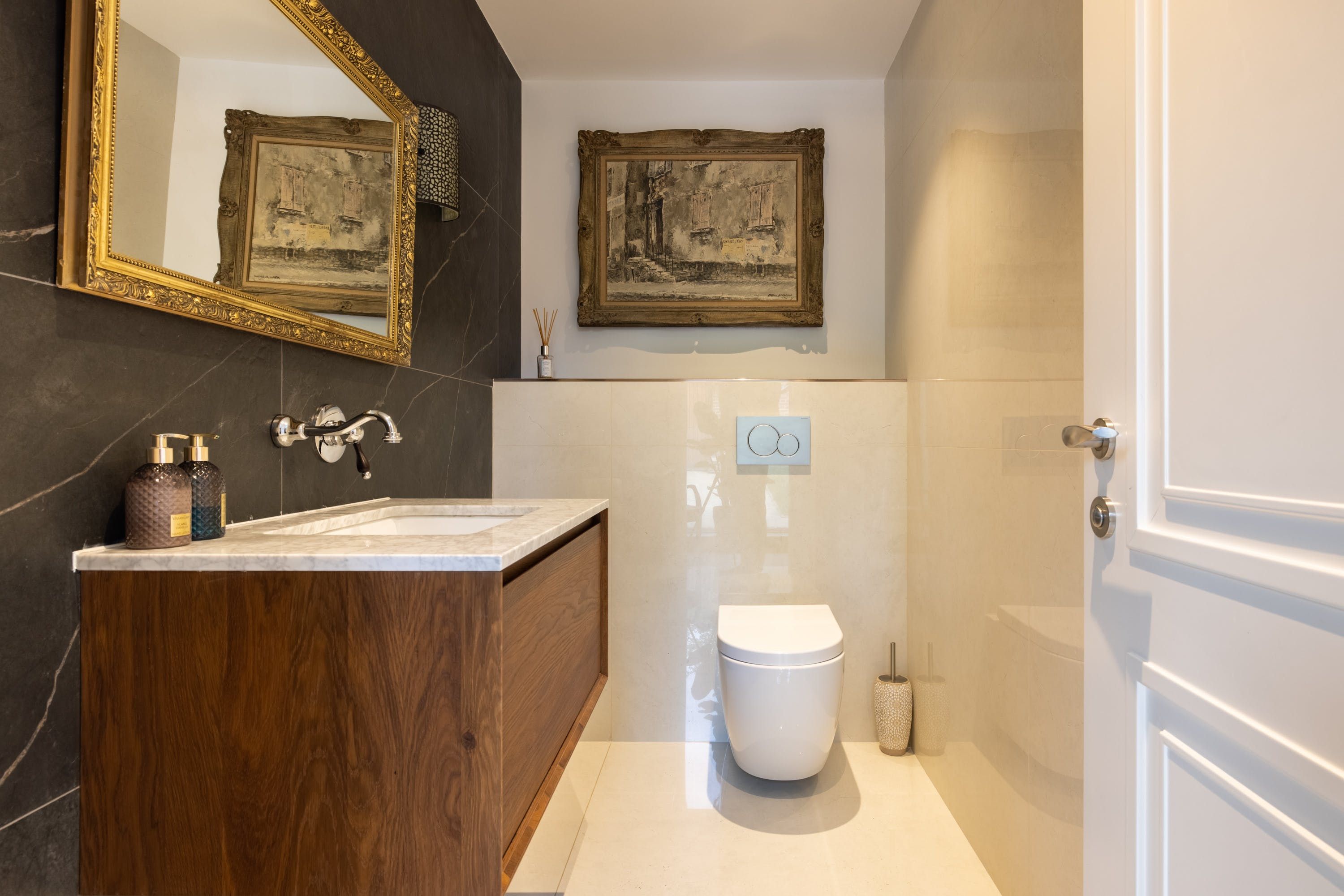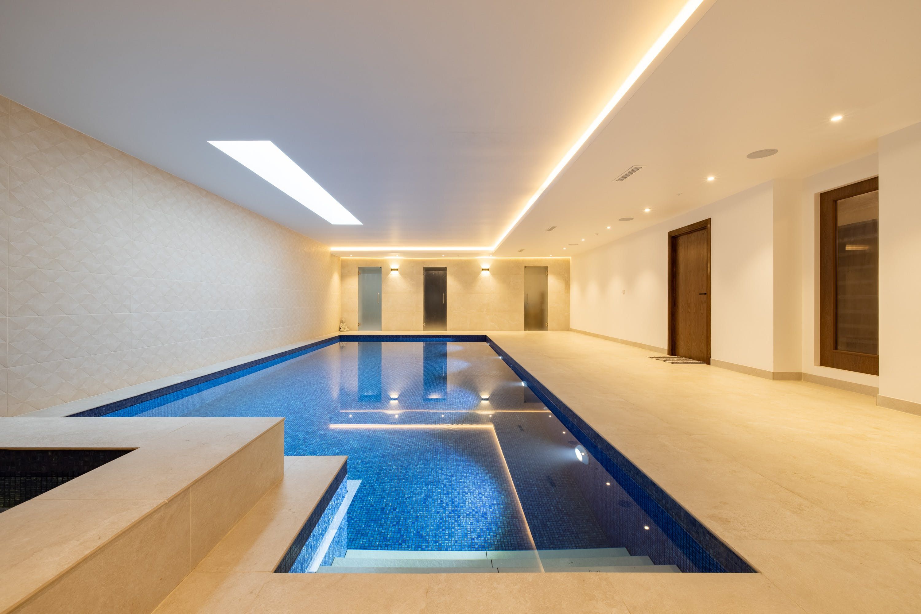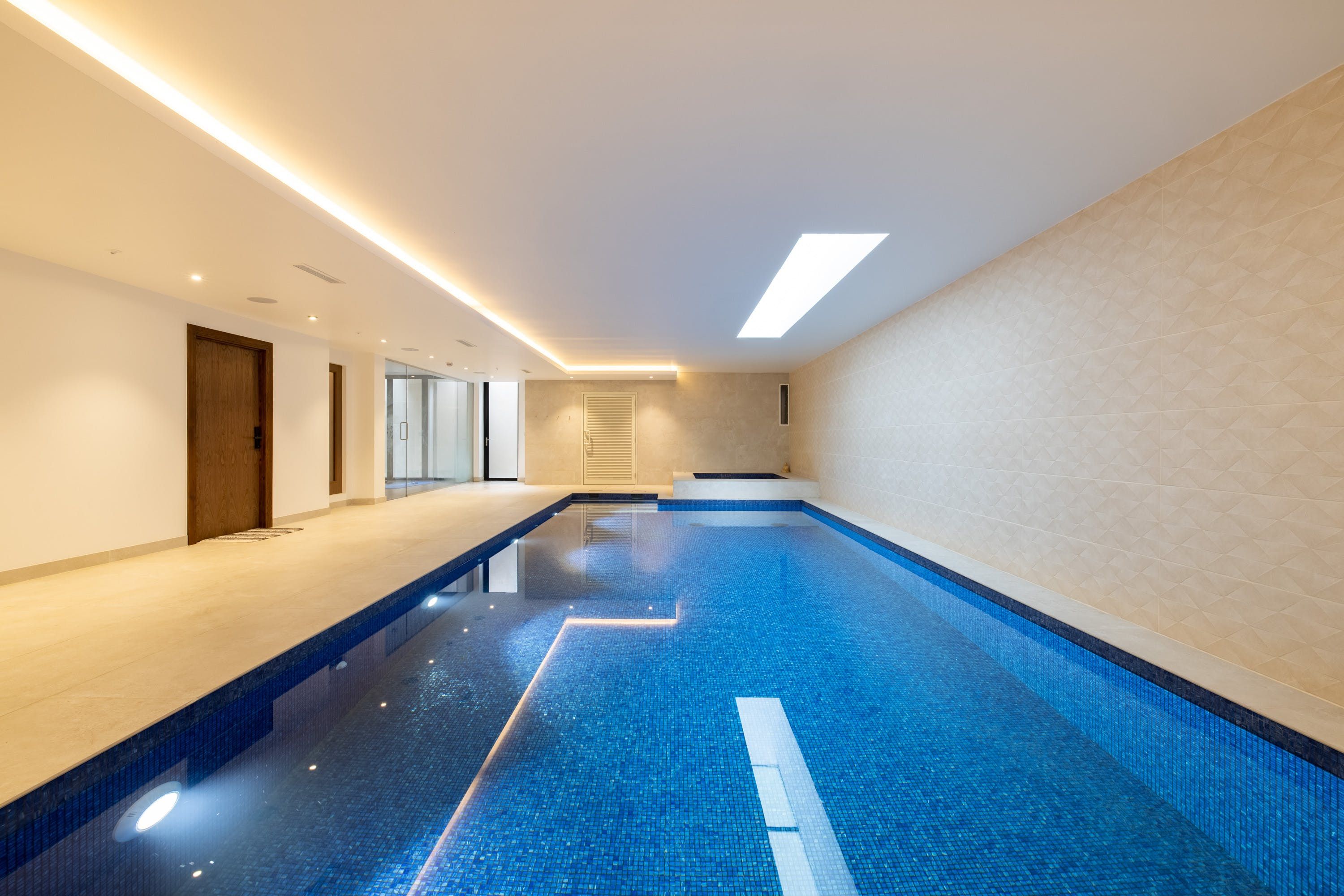 You wouldn't be able to tell it at first glance, but there's a basement level to the address that features a huge indoor swimming pool with an adjoining Jacuzzi, plus a full-size gym studio with equipment and a spa area with a hammam for afterwards. Not bad, right? Add to that a cinema room and it's fair to say that boredom is unlikely to be on the cards at any point.