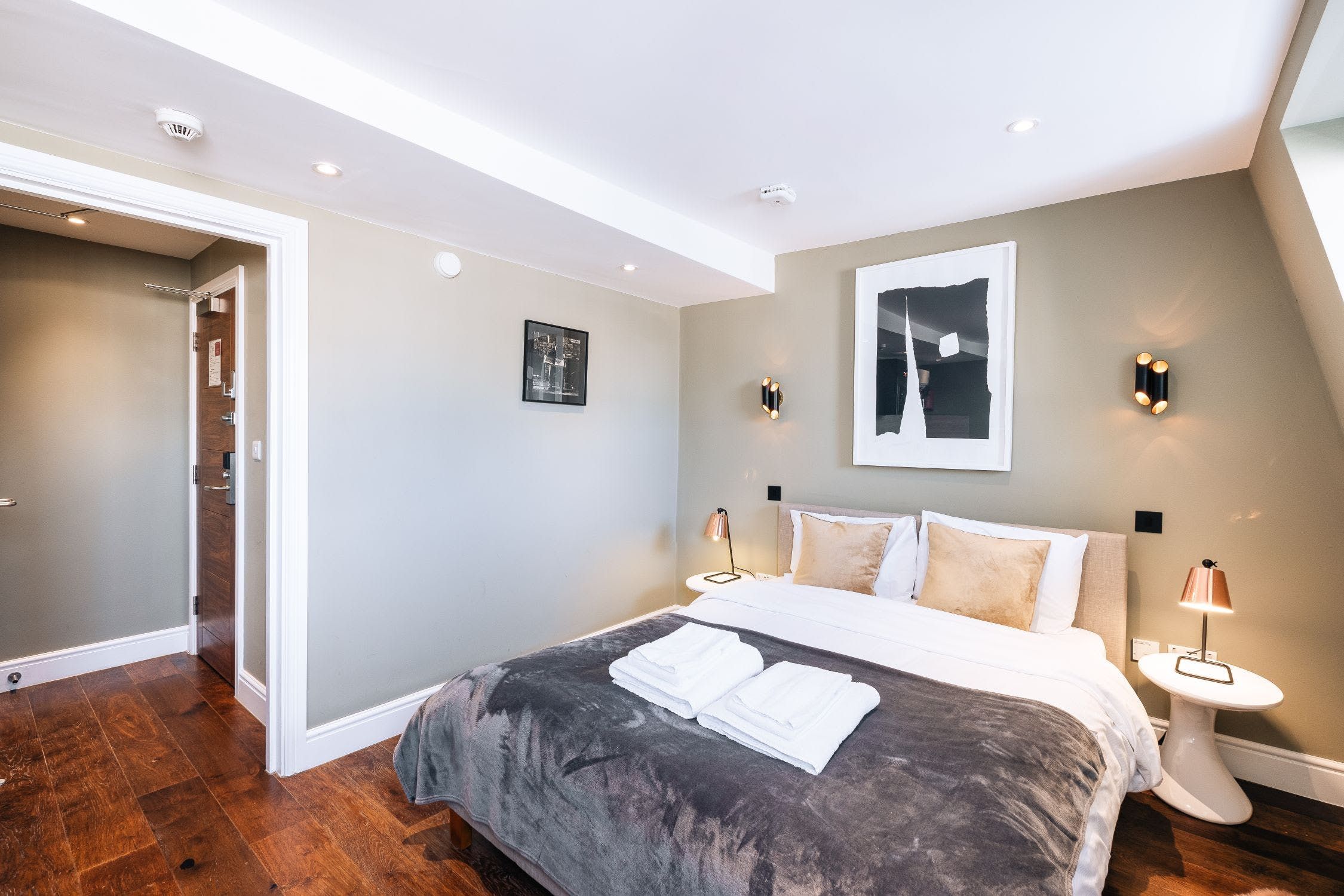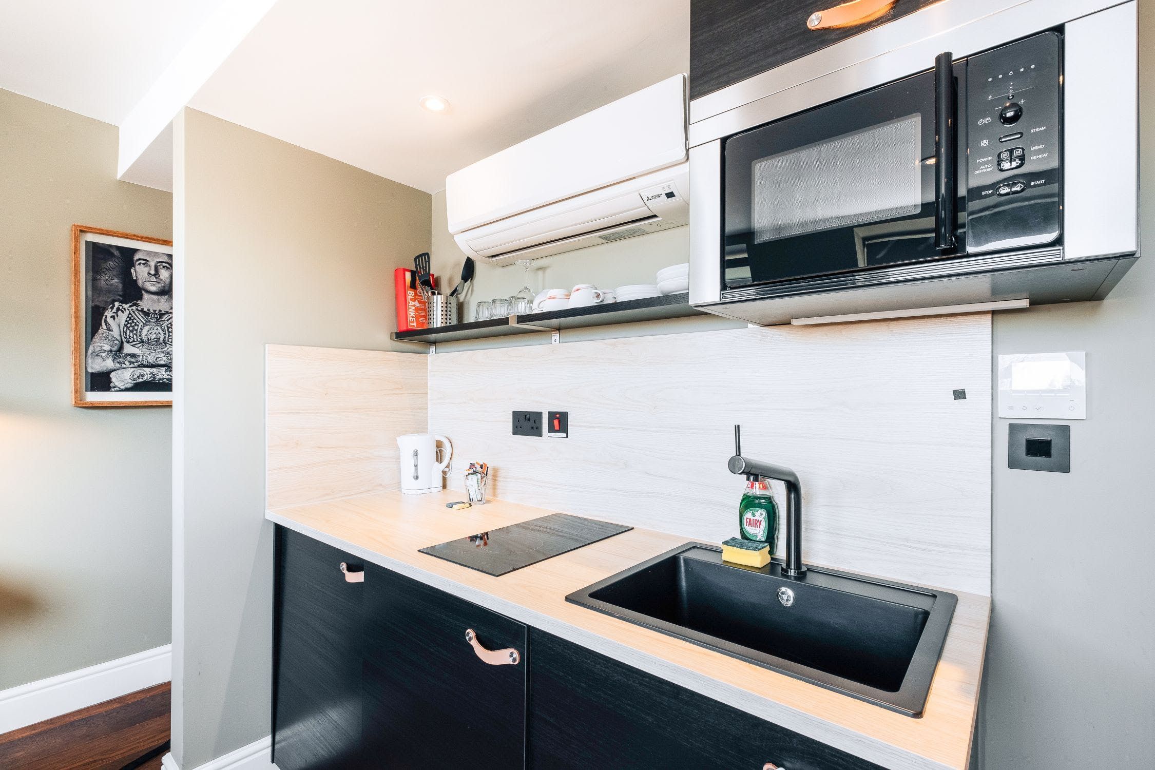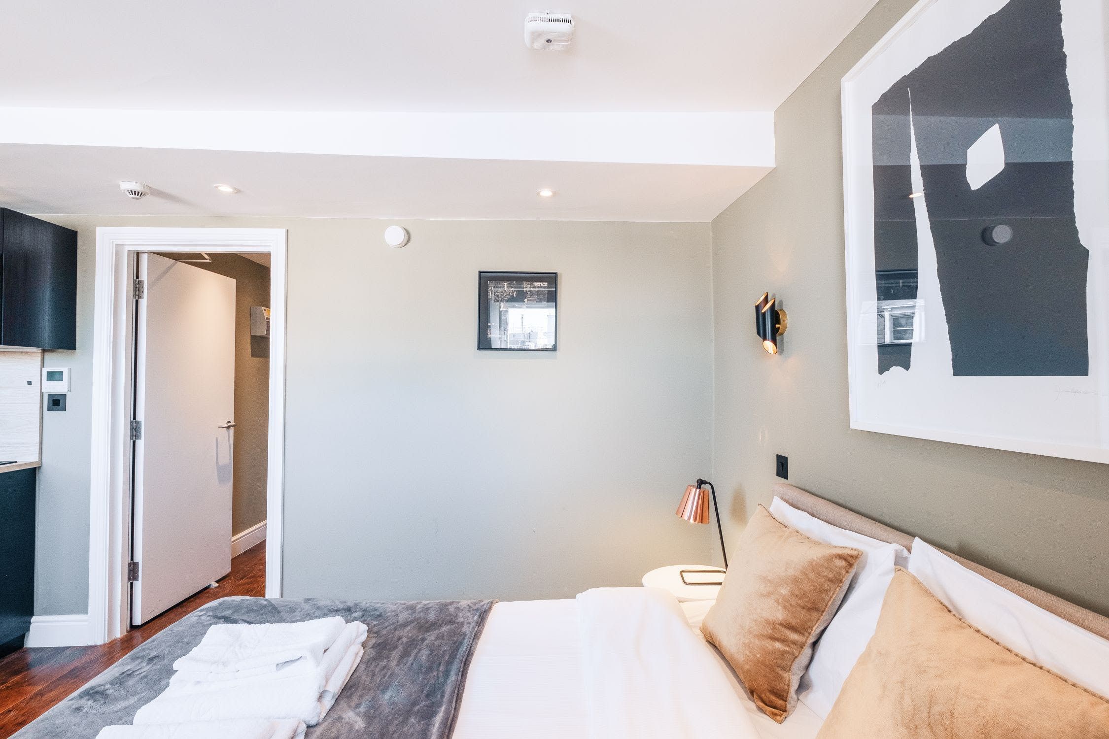 However you spend your days here, you’ll love coming home to your simple but stylish space, which comes complete with everything you need for a comfortable stay in the Capital. If you’re anything like us, you’ll love the finishing touches here – think soft rugs, trendy light fixtures and characterful art prints – all of which have been carefully chosen to make you feel at home the second you step over the threshold. Catch up on some work at your stylish desk or make a beeline for your comfy double bed and let the sounds of the city lull you to sleep.