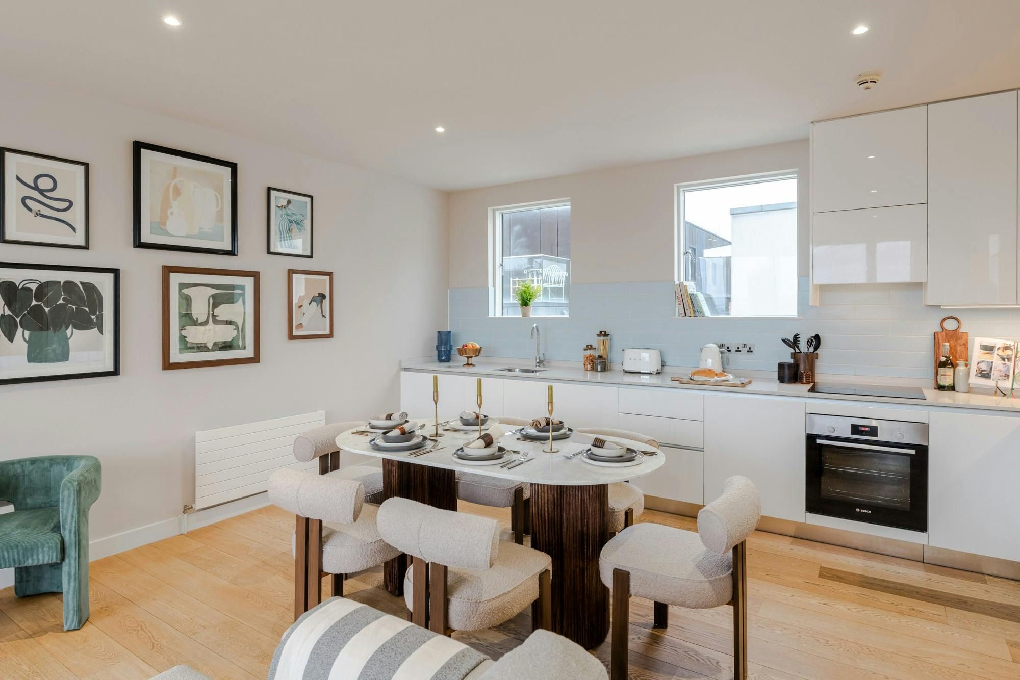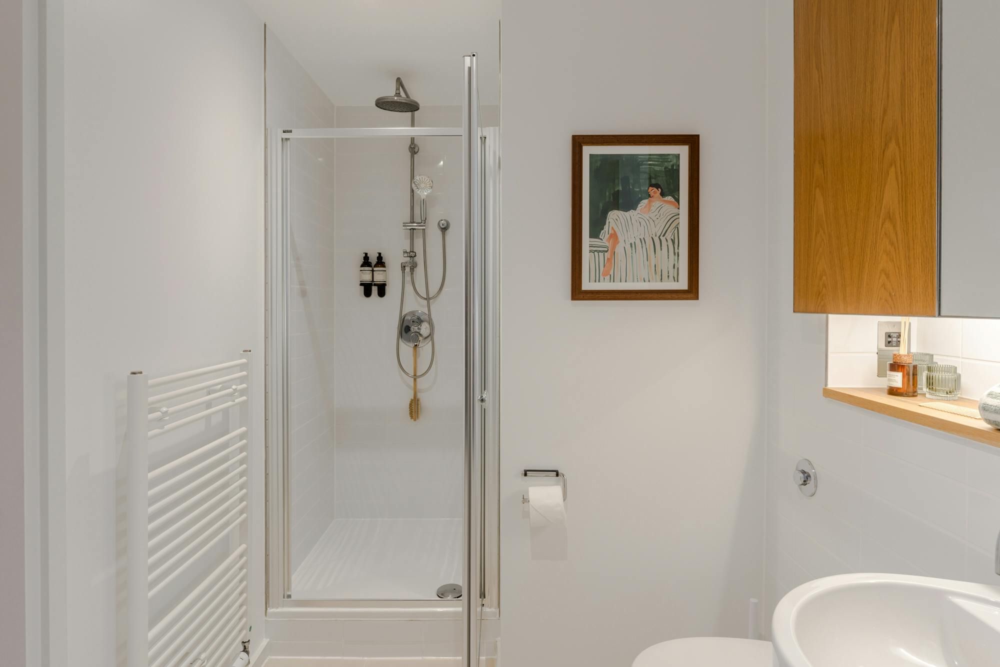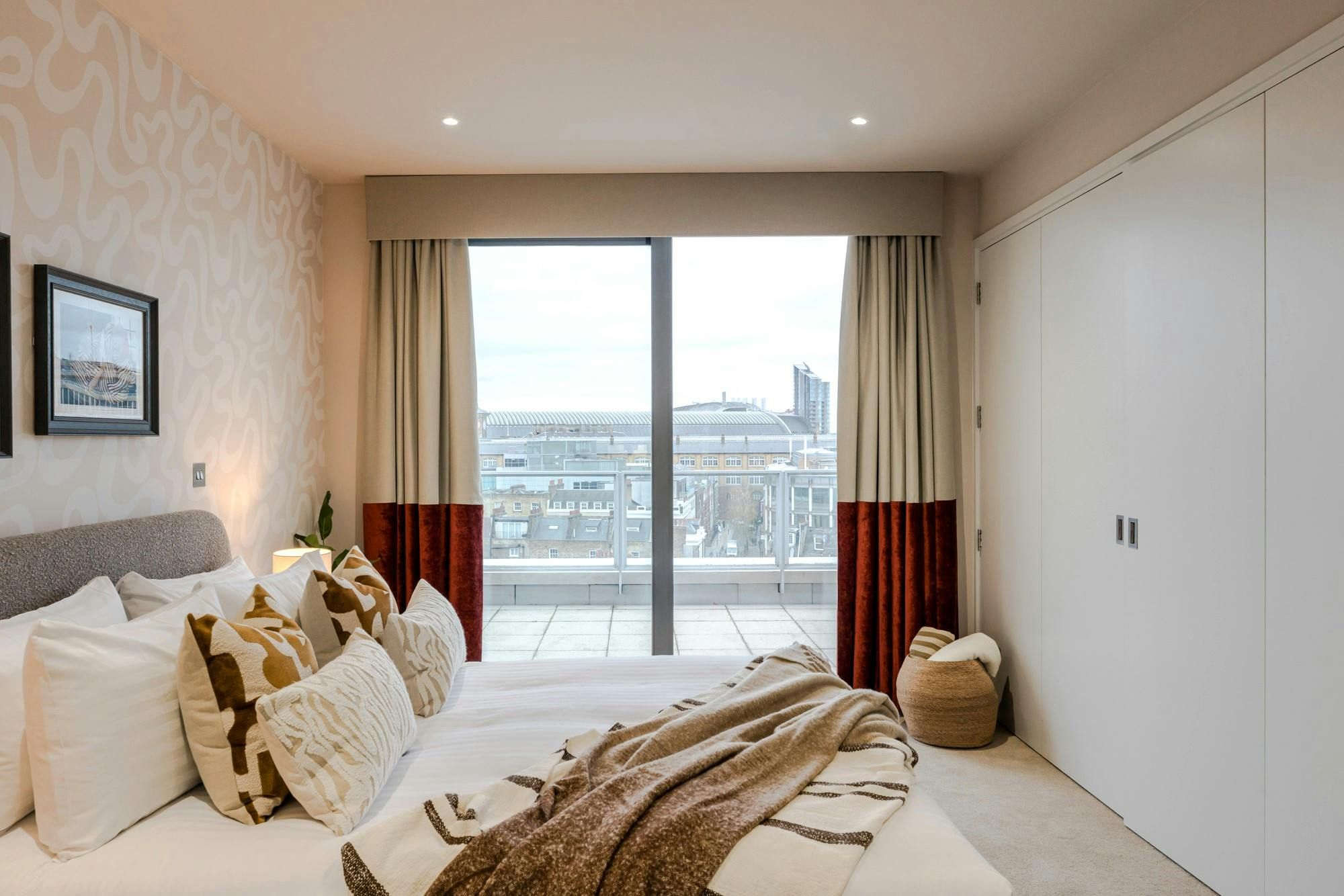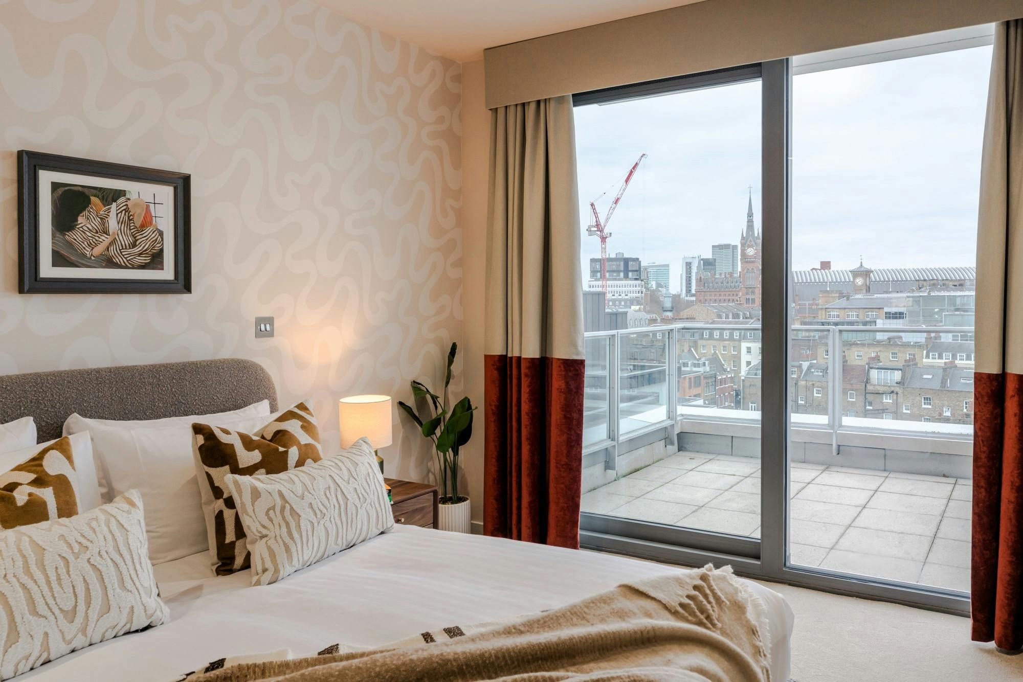 This elegant apartment boasts a splendid setting in central London, just a short walk from King’s Cross. It’s ideal for a family, a group of friends, or business travellers – you’ll have everything you need for a comfortable stay. This apartment is stylish and practical, with an integrated kitchen in the open-plan living and dining space. There’s also a wraparound balcony where you can admire London skyline views in warm weather. This attractive London home is perfect for those seeking a restful London base.