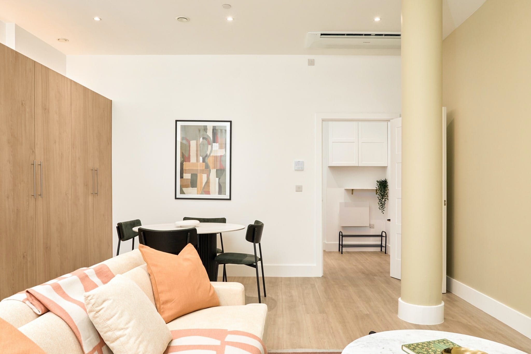 This apartment is moments away from bustling Edgware Road, putting Little Venice, Regent's Park, and Marylebone all within walking distance. Exploring is a breeze here – the Tube is ten minutes on foot, while Paddington Station is just a bit further. When you're not out and about, the stylish living area is perfect for unwinding. It has everything you need for a fuss-free stay, including a compact (but well-appointed) kitchen and a dining table that doubles as a workspace. We think it works well for couples and solo travellers.