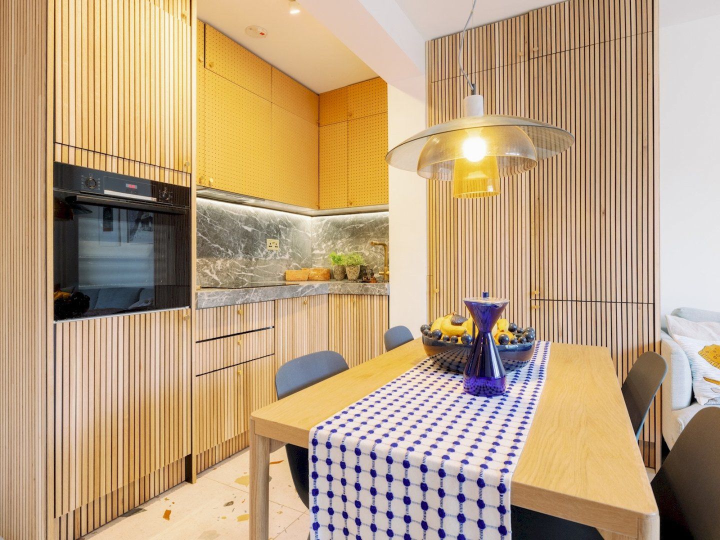 Only a short stroll to the British Library and Wellcome Collection, this apartment presents a sleek stay and an idyllic location. Though placed on a slightly quieter street between Euston and Mornington Crescent, its convenient address means you’ll find vibrant bars and cafes on your doorstep – and with two tube stations within easy walking distance, you’re all set when you want to explore further afield. The inside will suit design-oriented individuals seeking a contemporary pad to unwind in. If you’re here on business, there’s a desk to work from, while a bathtub is a relaxing way to end a day spent in the inner city – be it in meetings or perusing one of London’s many galleries.