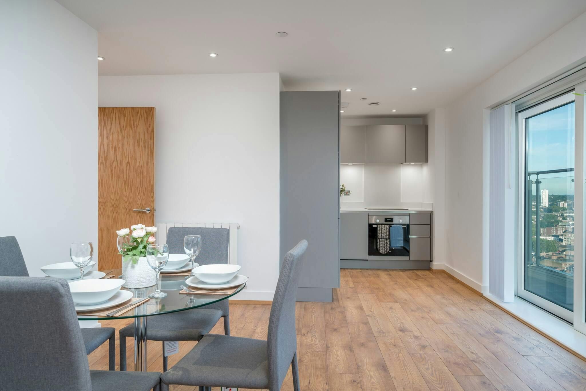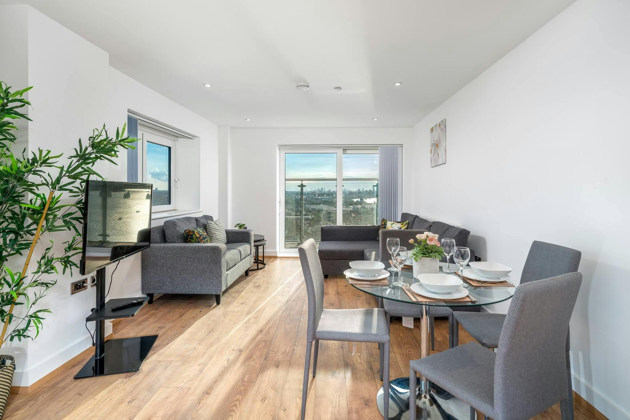 Located on the edge of the River Thames, this contemporary apartment delivers great views and a private terrace. It’s also conveniently located just a five-minute walk from Woolwich Dockyard Station, while the O2 Arena and the Excel Centre are also within easy reach. Private parking is available and all the essentials are provided to bring comfort to your stay. At full occupancy, two guests will be sleeping on the sofa bed in the living room but this is a great option for families and groups in search of a refreshing city stay.