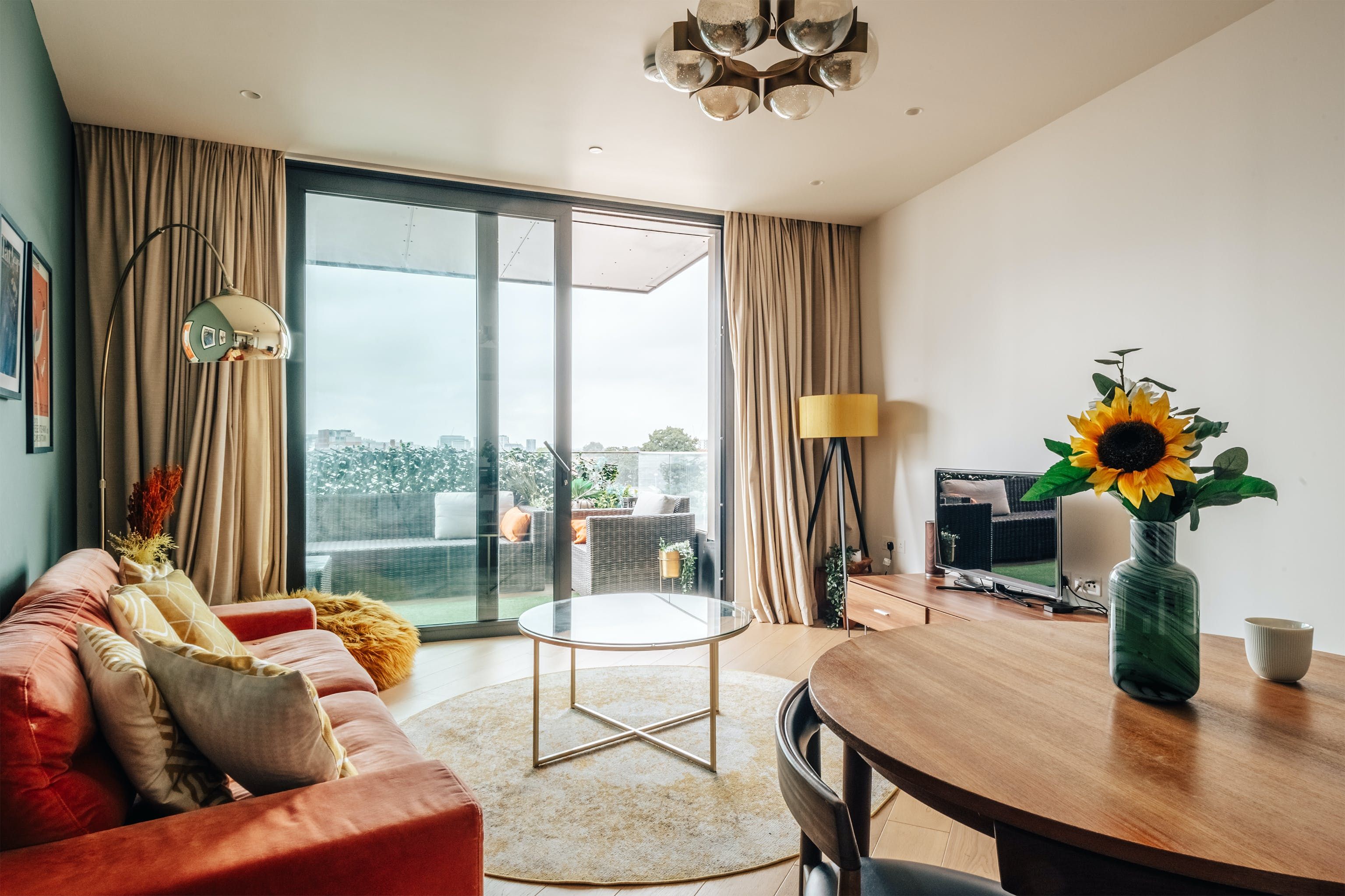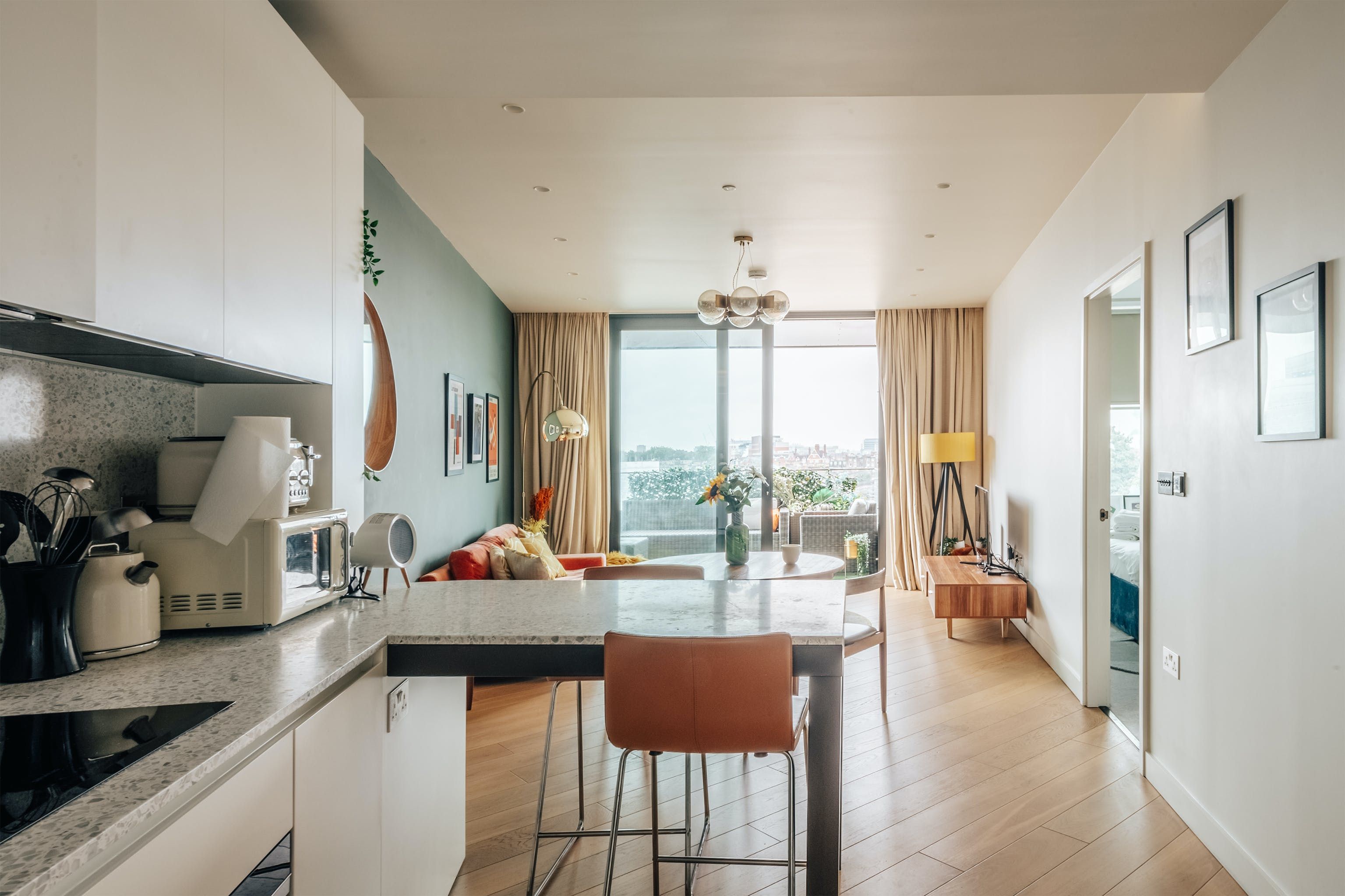 This city pad caught our eye for its amazing location. Opposite two Tube stations, you can explore the colourful streets of Notting Hill within six minutes or wandering down Oxford Street within quarter of an hour. The building shares facilities with the exclusive Soho House members club, so if you’re staying for 30 days or more you’ll have access to a swimming pool, cinema, gym, and spa. For shorter stays, you can still enjoy the development’s gardens, communal workspaces, and restaurants. The apartment itself boasts high-quality fixtures, underfloor heating, and a private balcony – the perfect spot to wind down with a drink after a day spent visiting London’s landmarks.