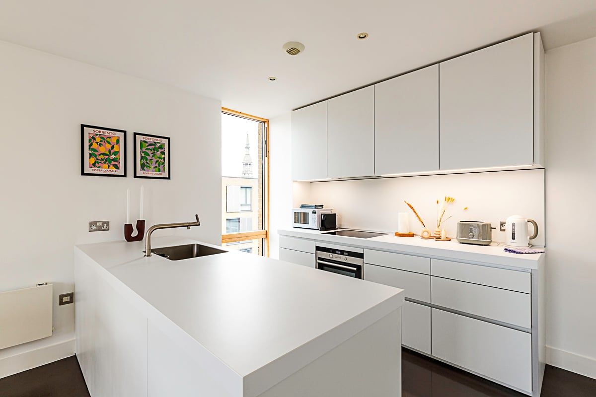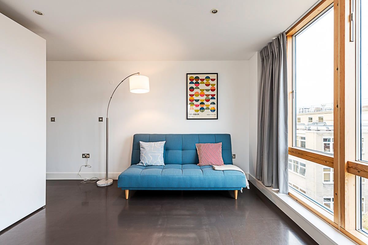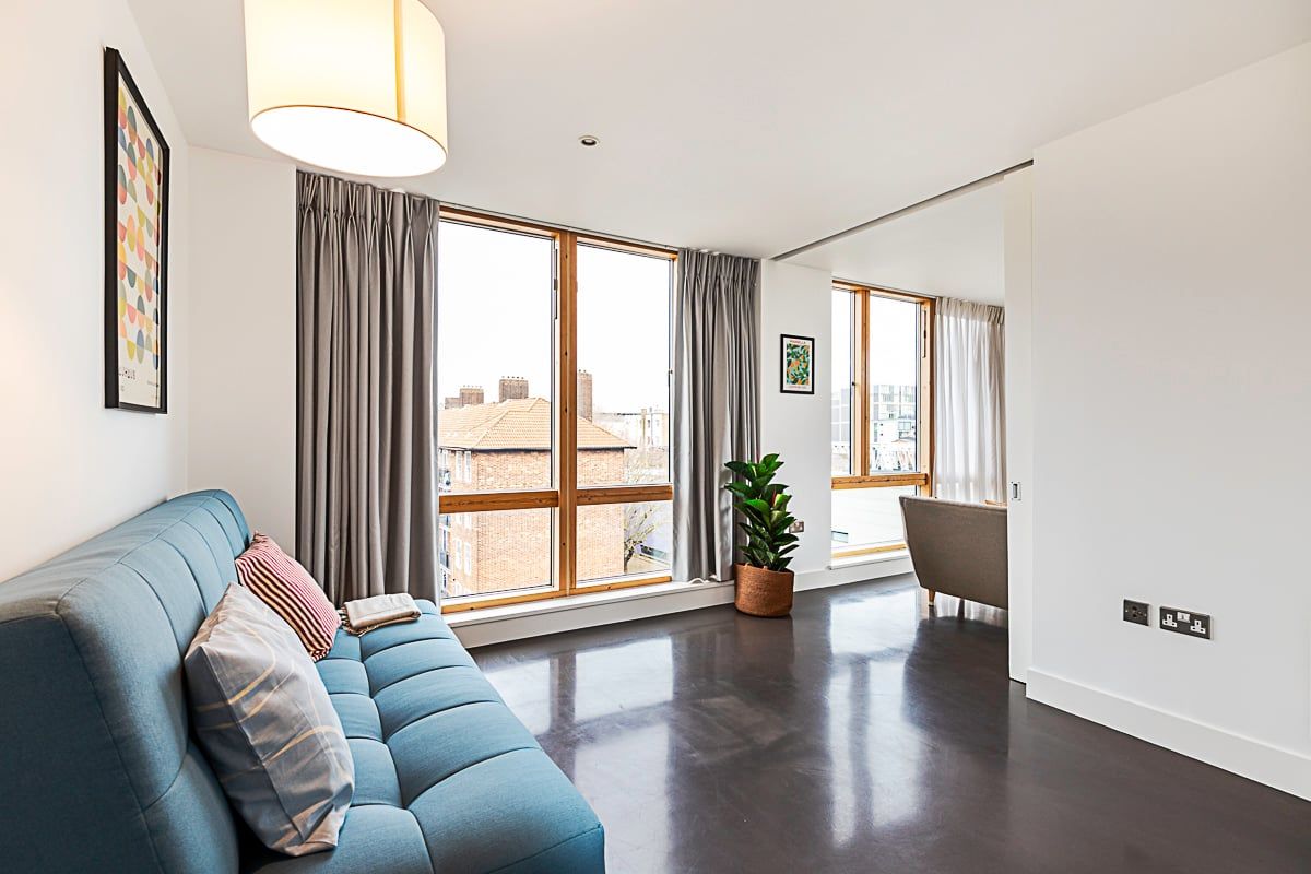 Situated just off the bustling Kingsland Road, this fourth-floor apartment offers attractive views of East London from its floor to ceiling windows. Despite being on the doorstep of Shoreditch, one of the capital's perennially popular nightlife destinations, the home is well soundproofed and allows guests to dip in and out as they please. It's also less than ten minutes from Old Street station, where the Northern Line can whisk you directly to King's Cross or London Bridge. While a party of three or more will need to use the sofa bed, a sliding door is thoughtfully provided that turns the living area into an impromptu second bedroom.