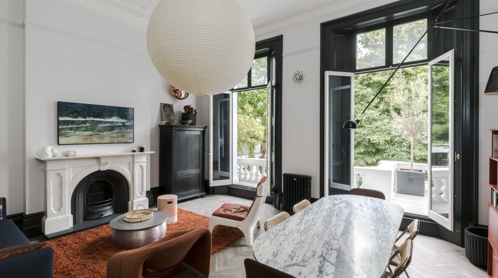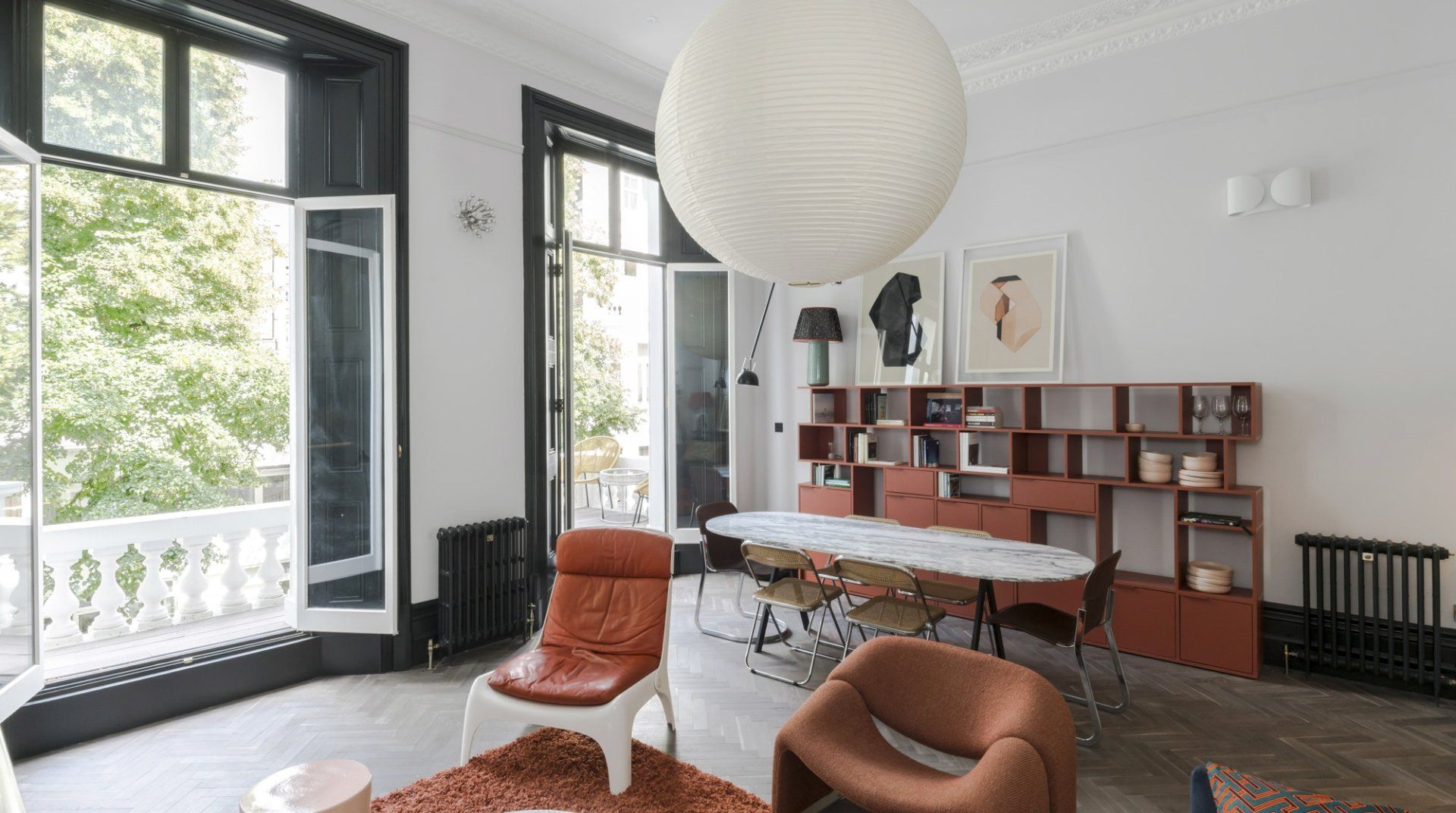 No detail has been spared at this apartment in Notting Hill. Expertly designed with chosen works from emerging contemporary artists, you'll notice the high-end touch that's been given here. The living area is an inviting space to unwind with double doors that open out onto a private balcony – ideal for evening vinos. There's also an outside space around the back of the home that encourages quiet moments to yourself. Elsewhere, you'll find the trendy street-side cafes, upscale restaurants and chic boutiques of Notting Hill right on your doorstep, while Portobello Road and its famous vintage market lie less than a ten-minute walk away.