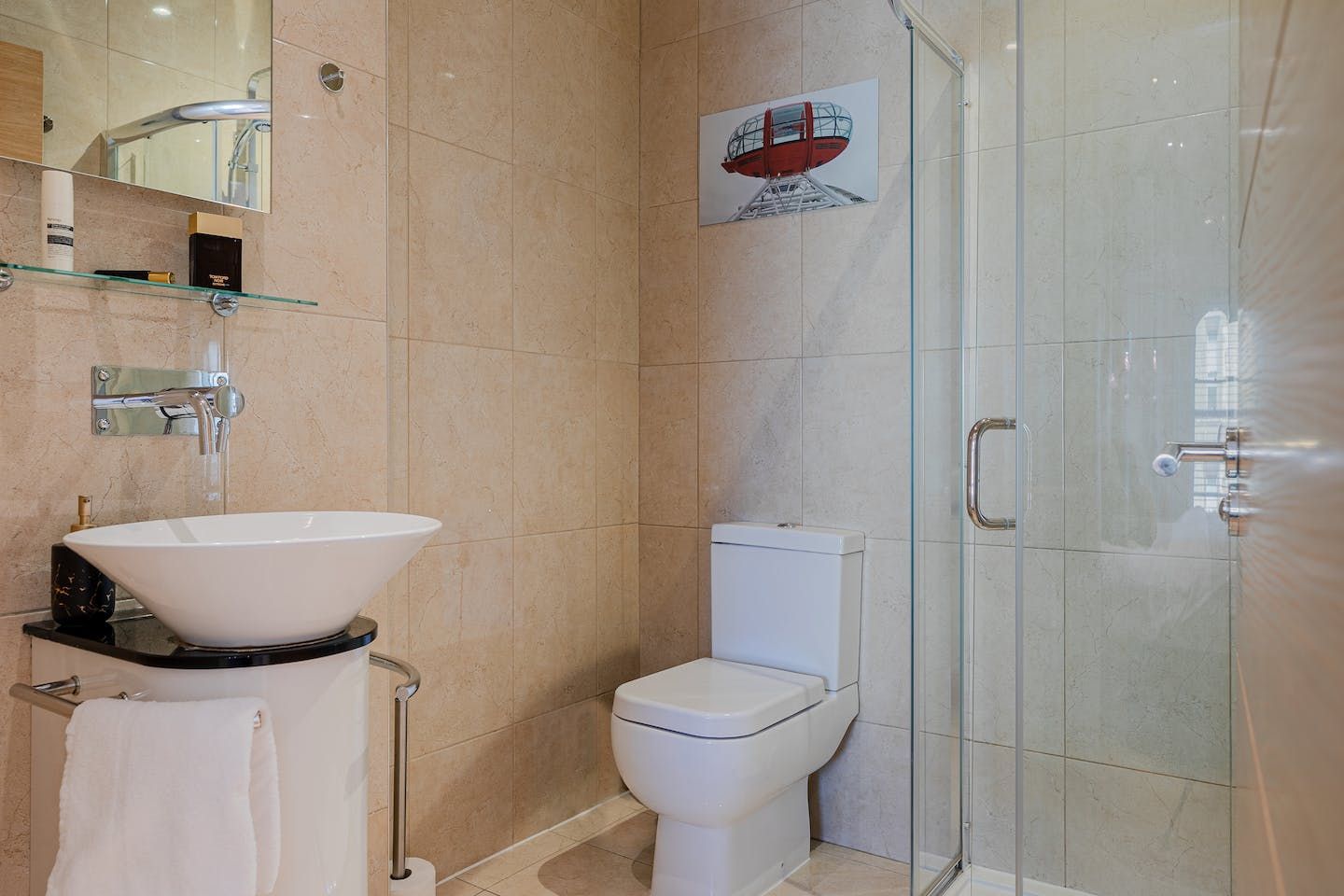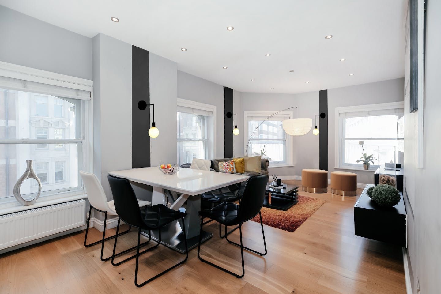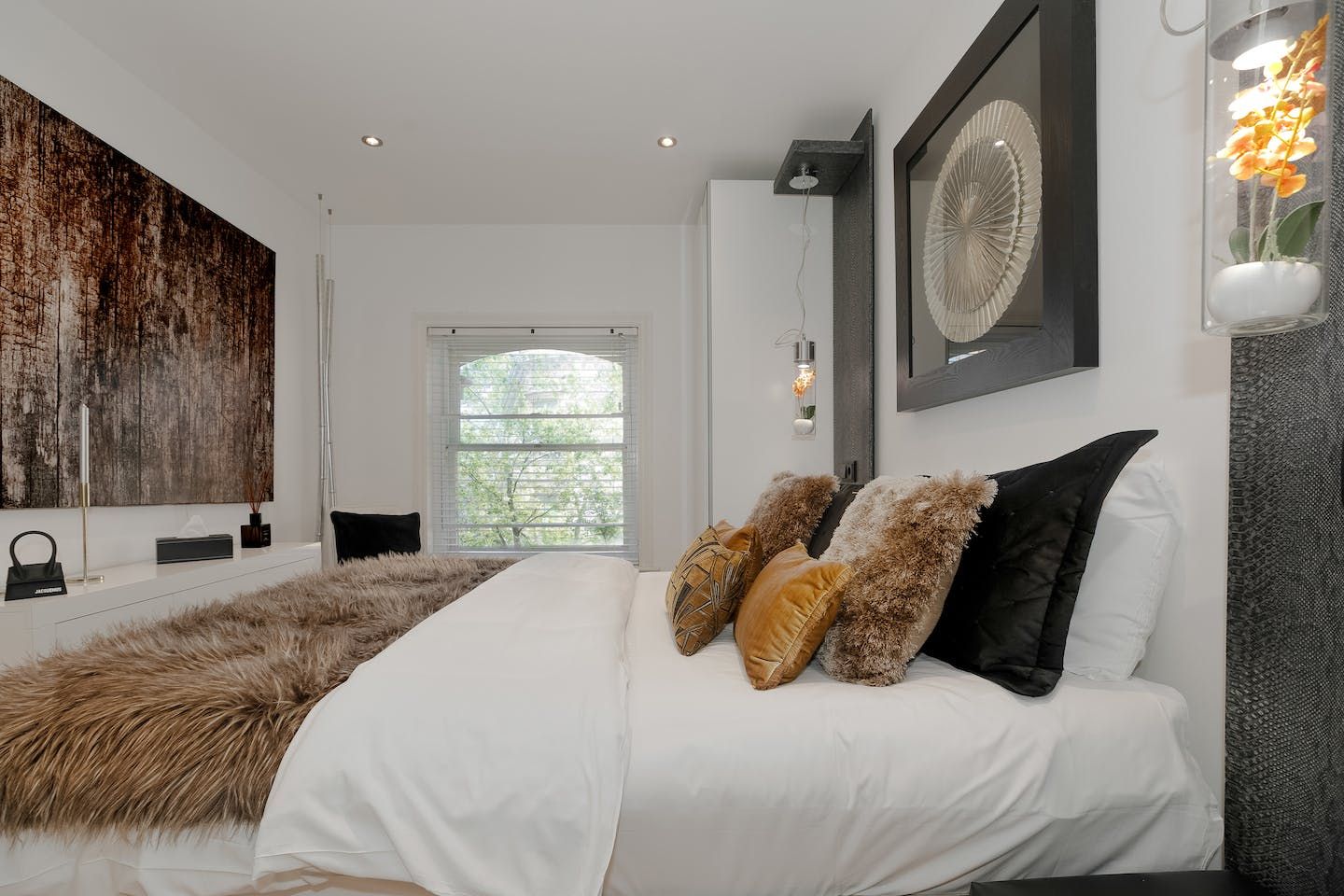 Back at this elegant and luxurious home, it's as impressive as its address. We love the attention to detail lavished on this place, such as the fabulous encased orchid lights in the stylish bedroom and the many modern artworks adorning the walls. Take a seat on the comfy sofa and enjoy a glass of Champagne at the end of a busy day. This apartment is perfect for a family, friends, or professionals on business in this captivating city.