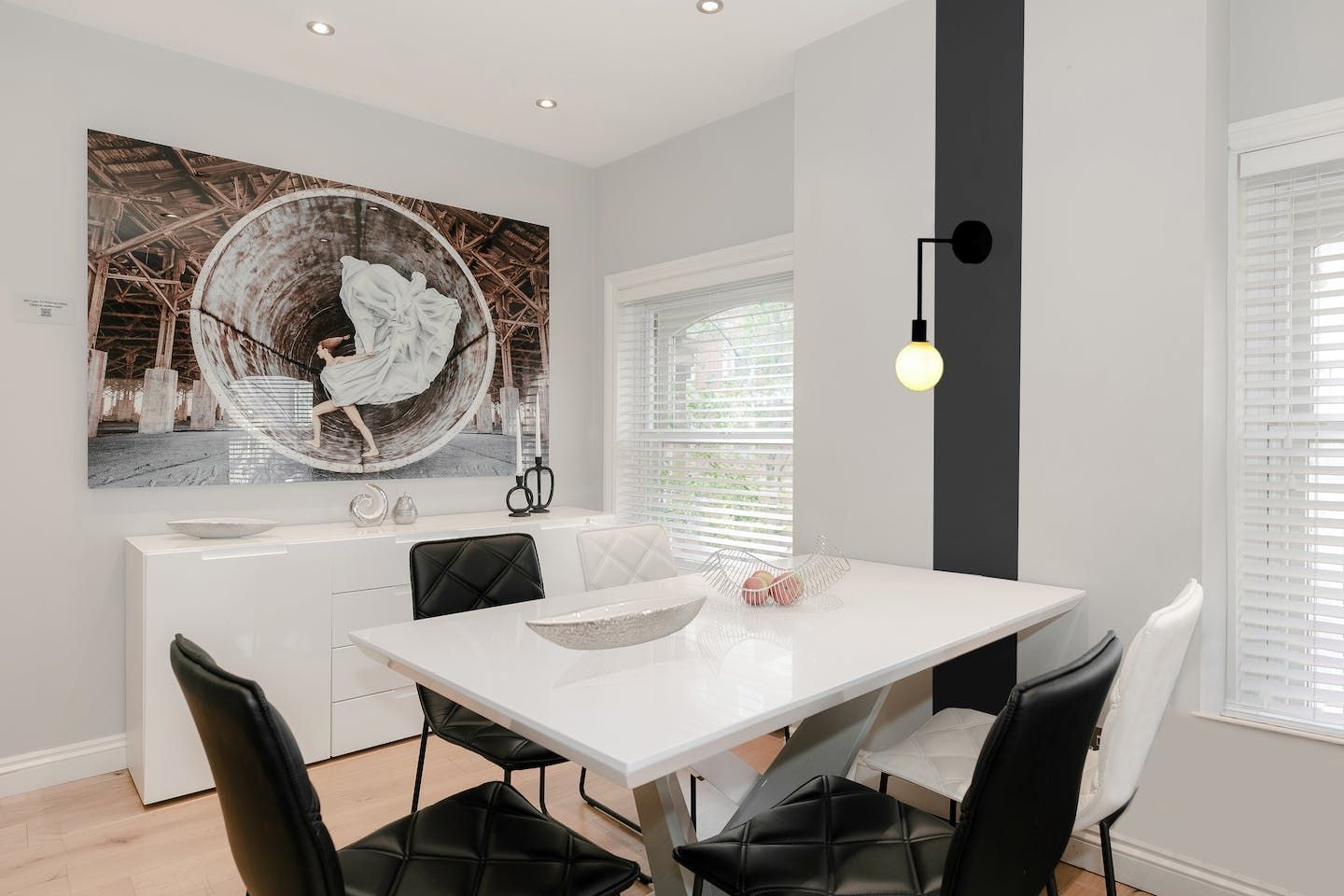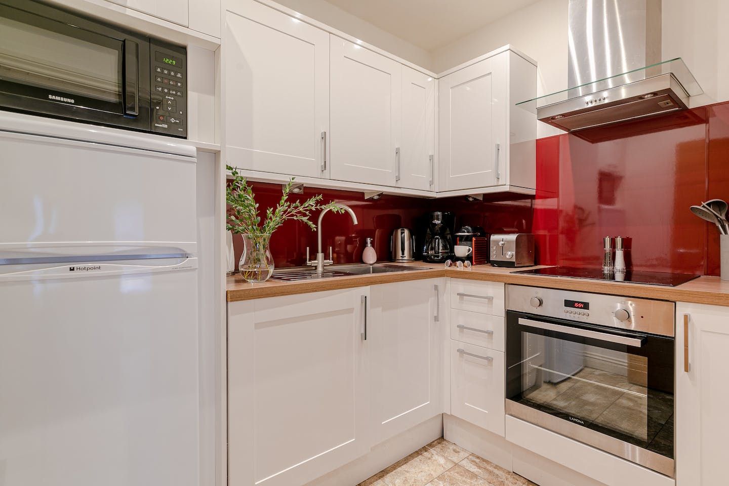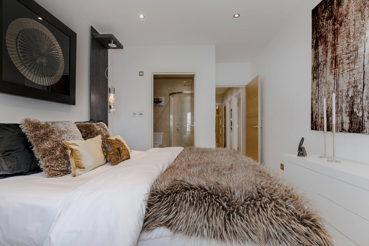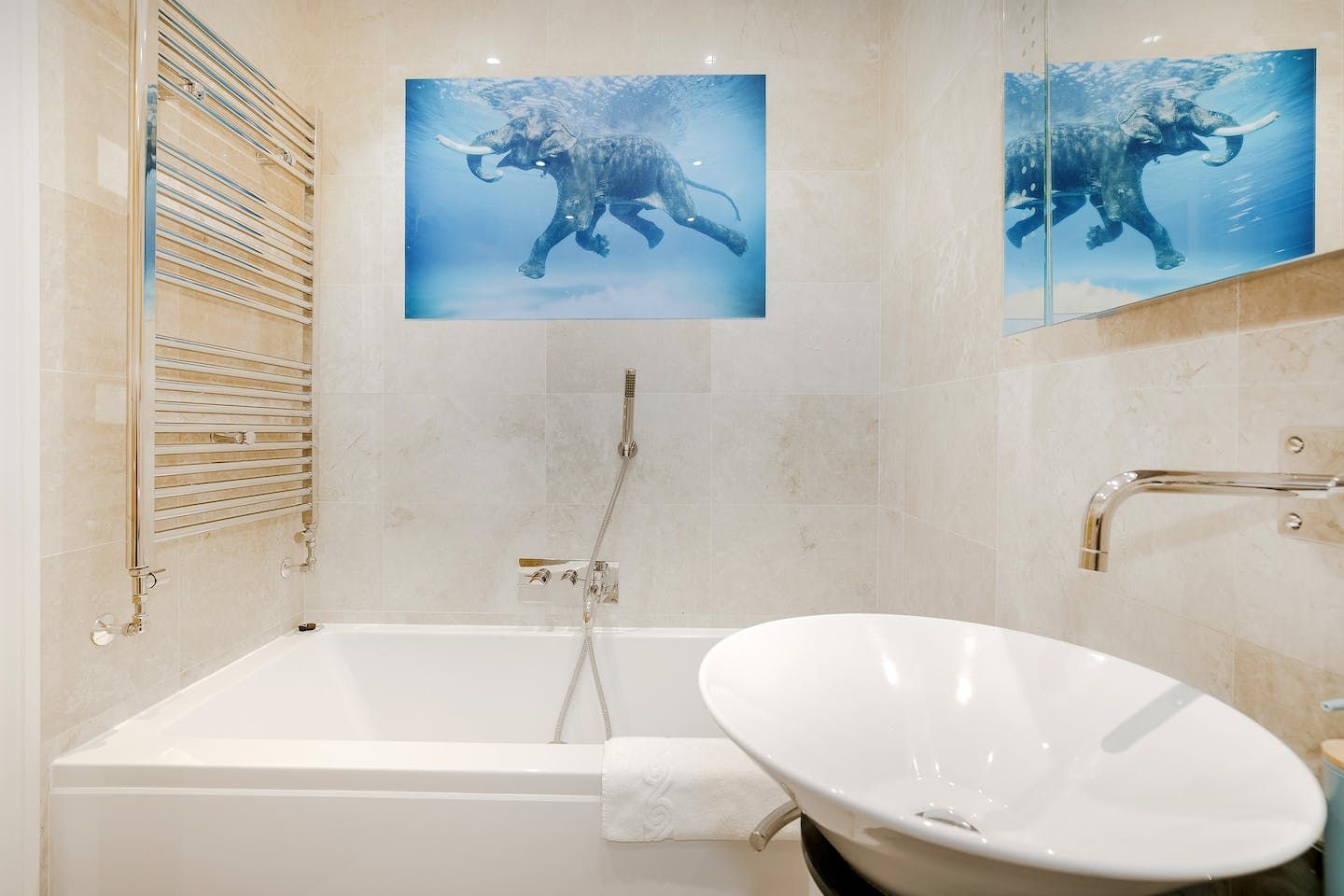 Back at this elegant and luxurious home, it's as impressive as its address. We love the attention to detail lavished on this place, such as the fabulous encased orchid lights in the stylish bedroom and the many modern artworks adorning the walls. Take a seat on the comfy sofa and enjoy a glass of Champagne at the end of a busy day. This apartment is perfect for a family, friends, or professionals on business in this captivating city.