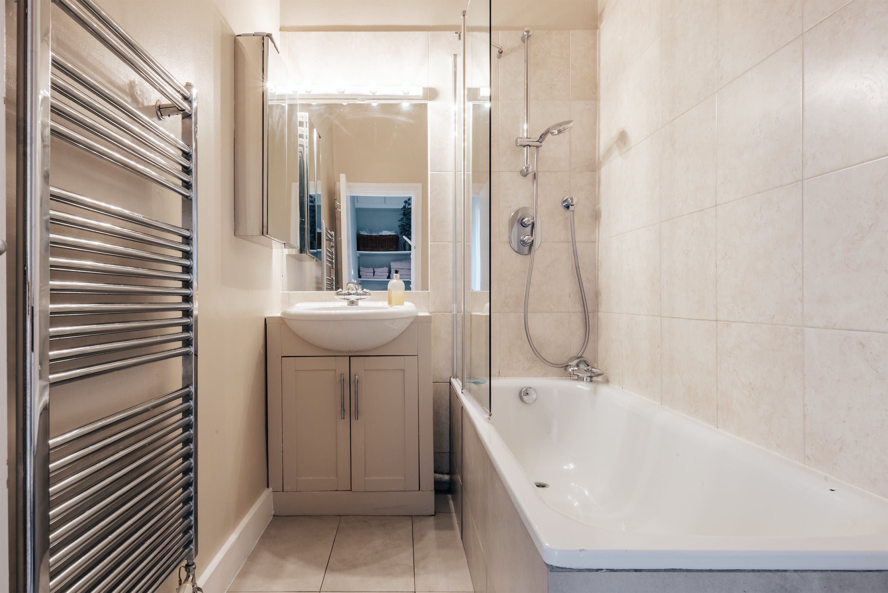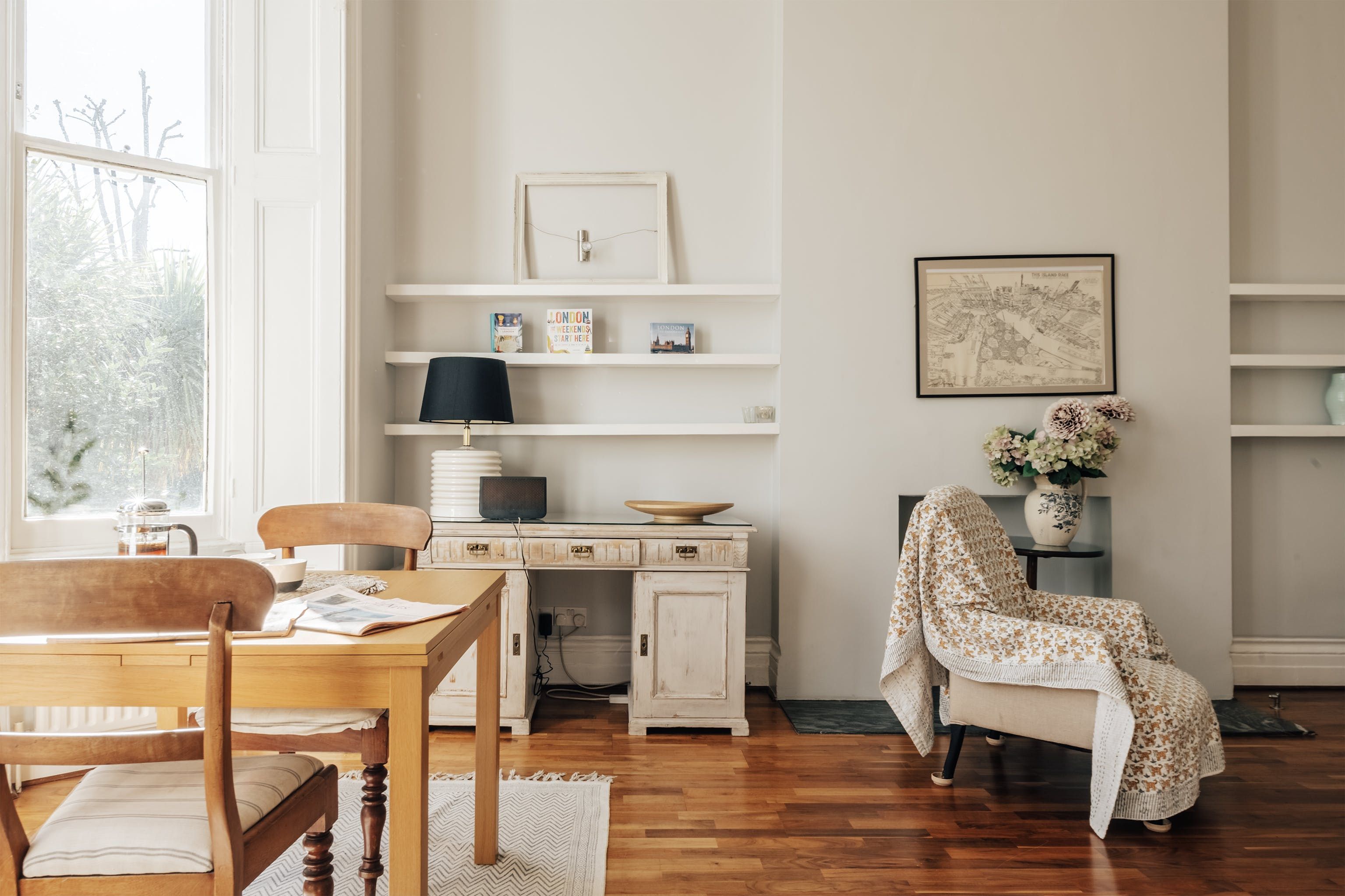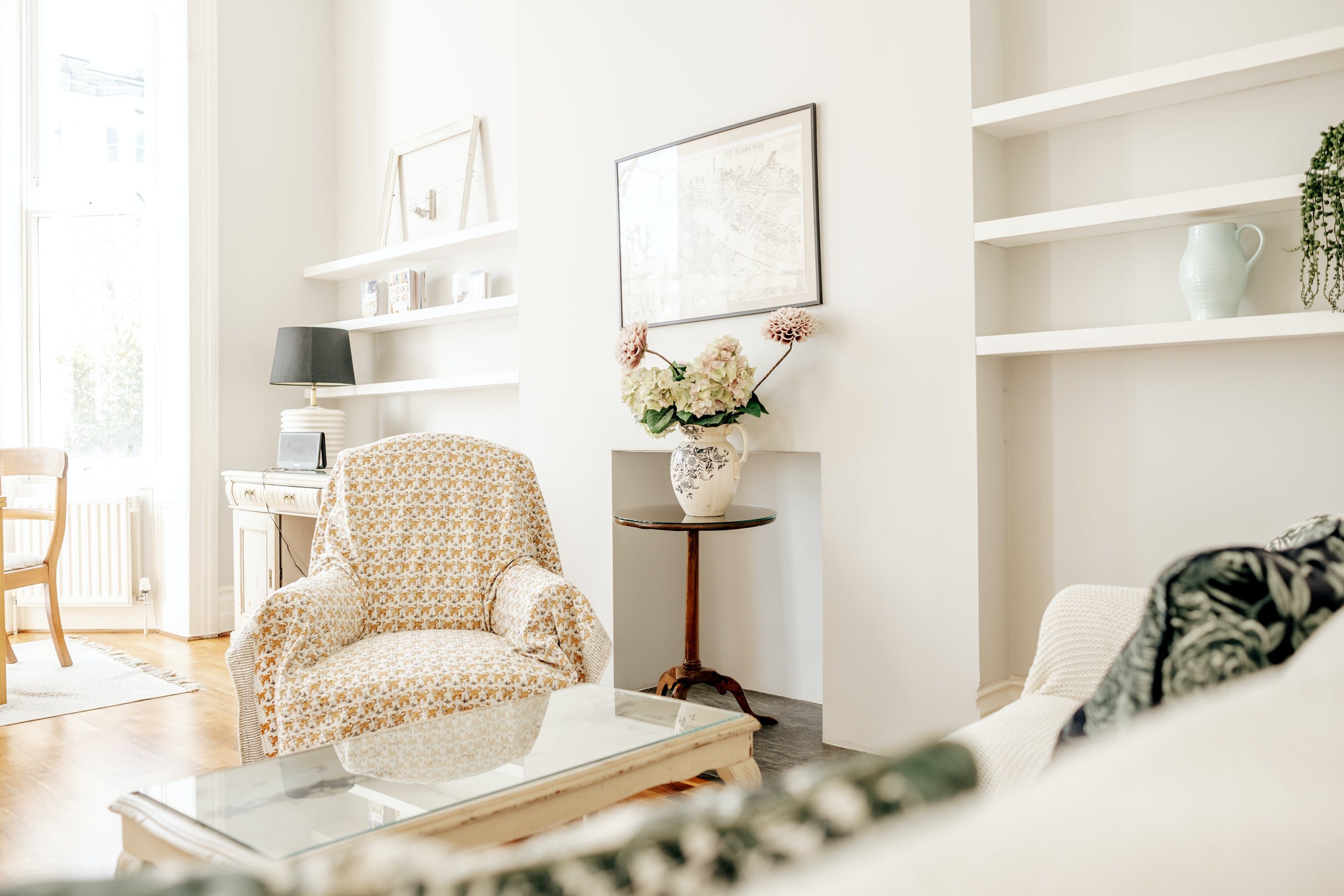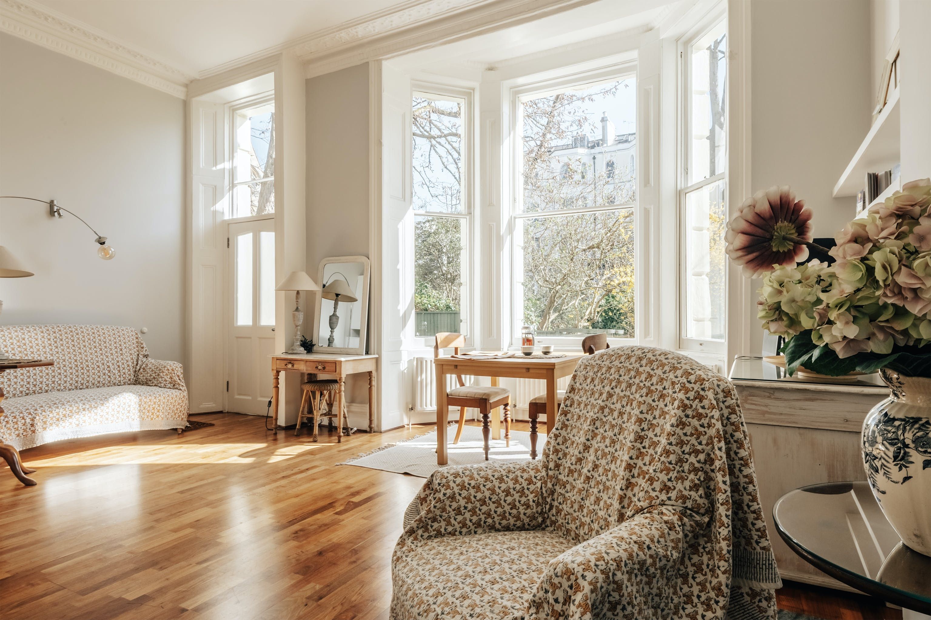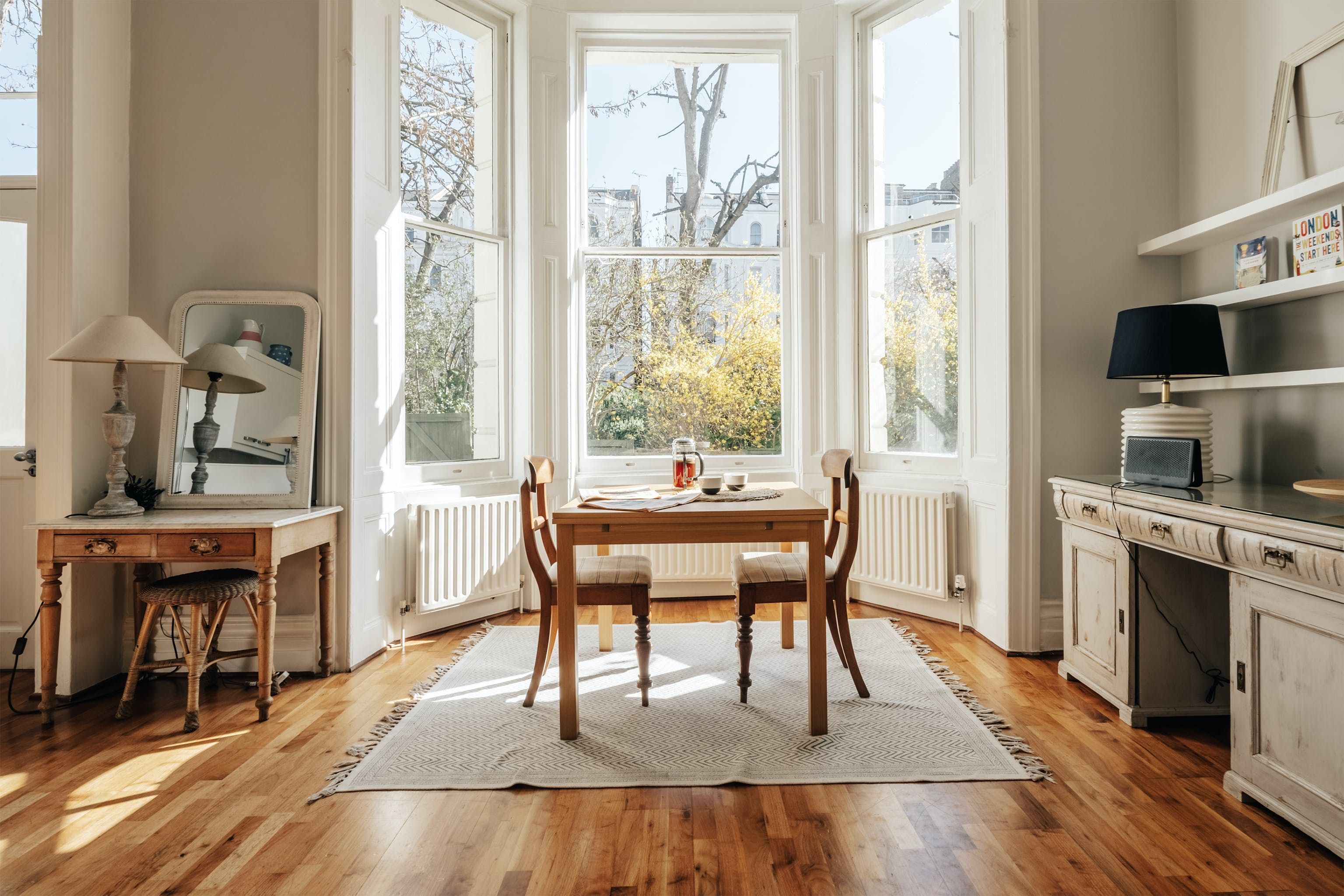 This is a classic, shabby chic Notting Hill flat. The huge bay window and sense of space in the living room make it feel incredibly relaxing and calm. It's not stuffed full of hi-tech entertainment and isn't super luxurious, but if you want a peaceful haven this is a proper gem. Perhaps the biggest highlight is the outdoor patio and gate leading onto the communal garden. Literally, nothing could be more classical Notting Hill.