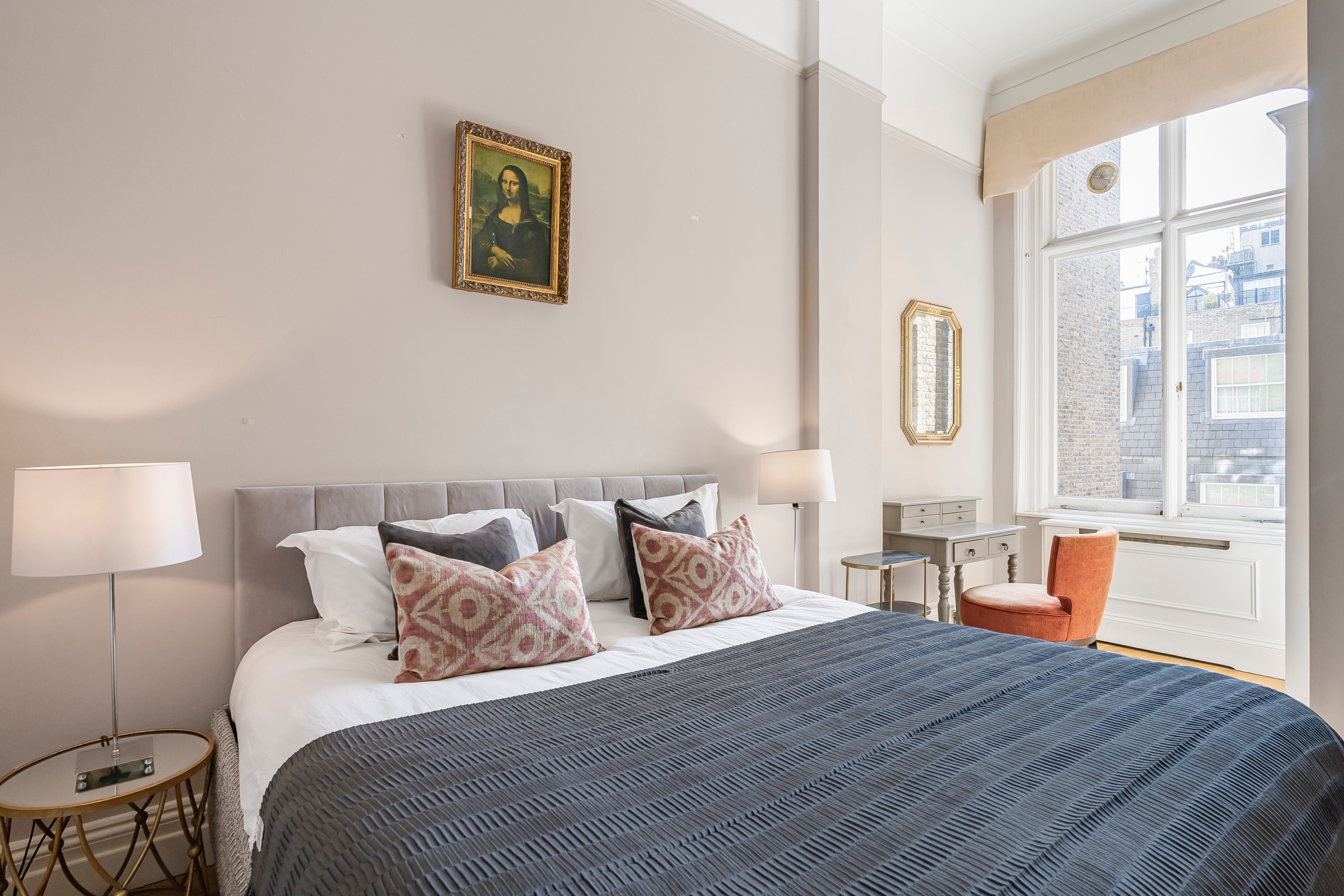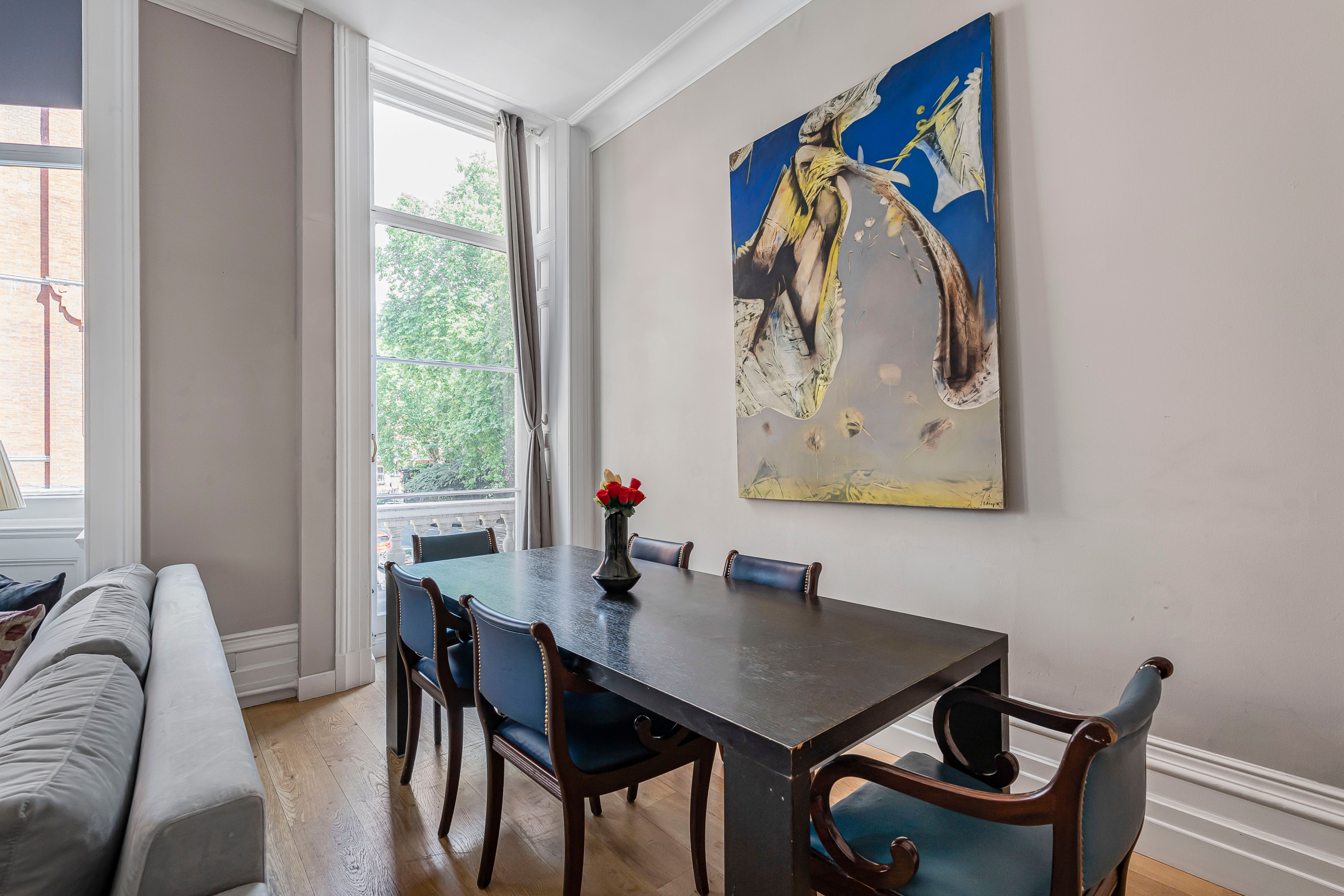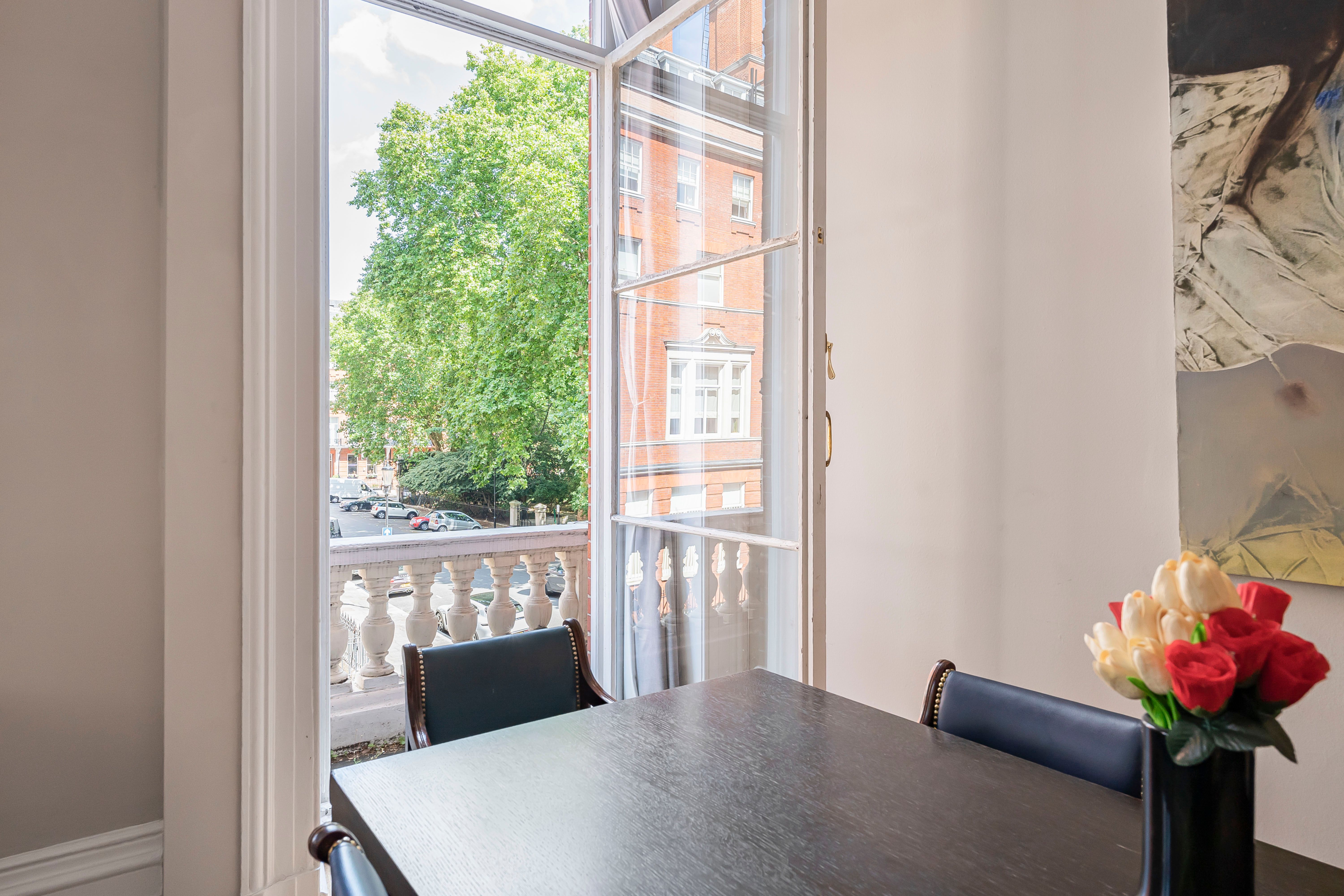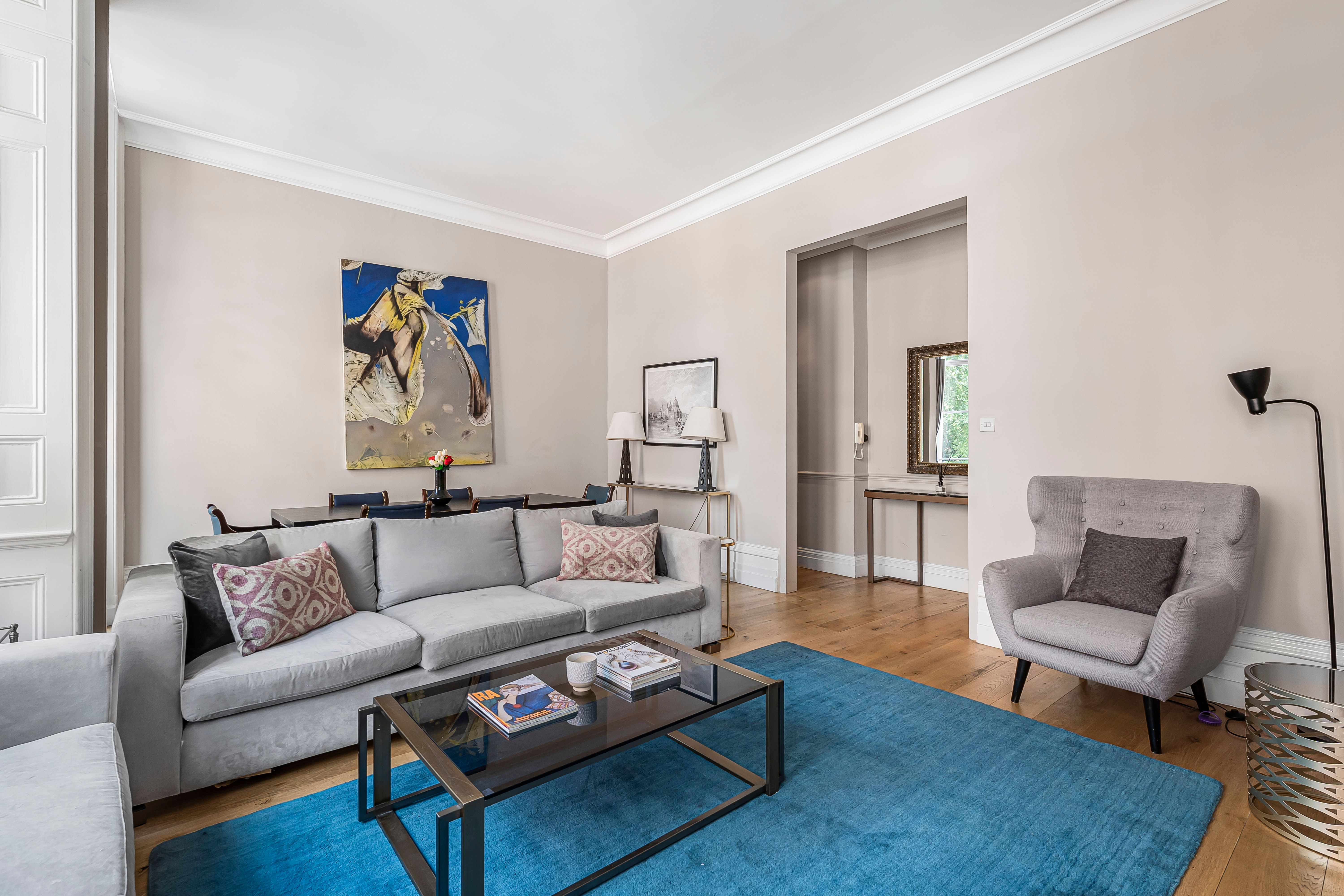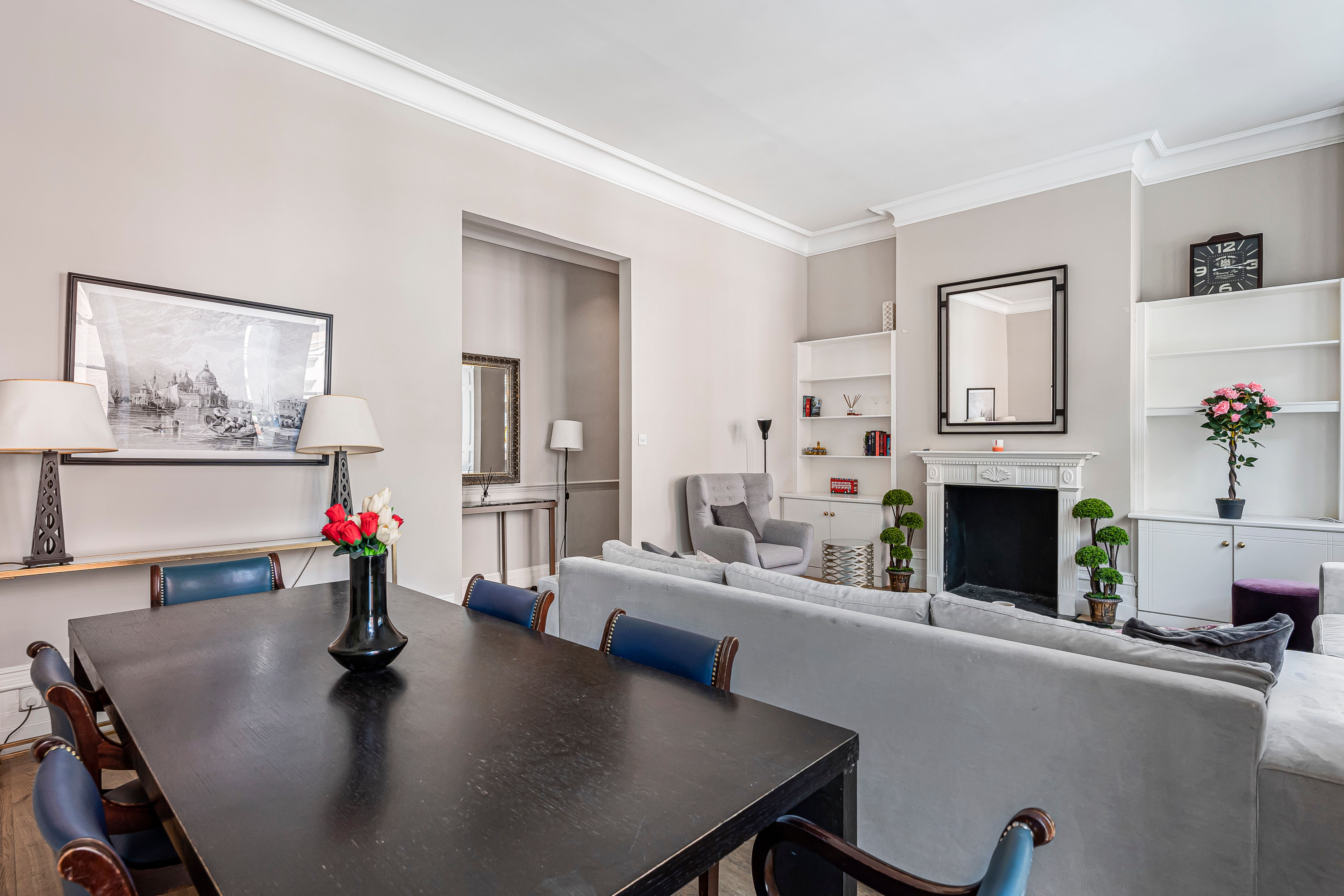 Home truths: *If you're travelling with little ones, your host can provide a cot. You'll need to request it in advance. *You'll have access to gardens and tennis courts here. They're shared with Cadogan Square's other residents. *The apartment is located on the first floor with lift access.