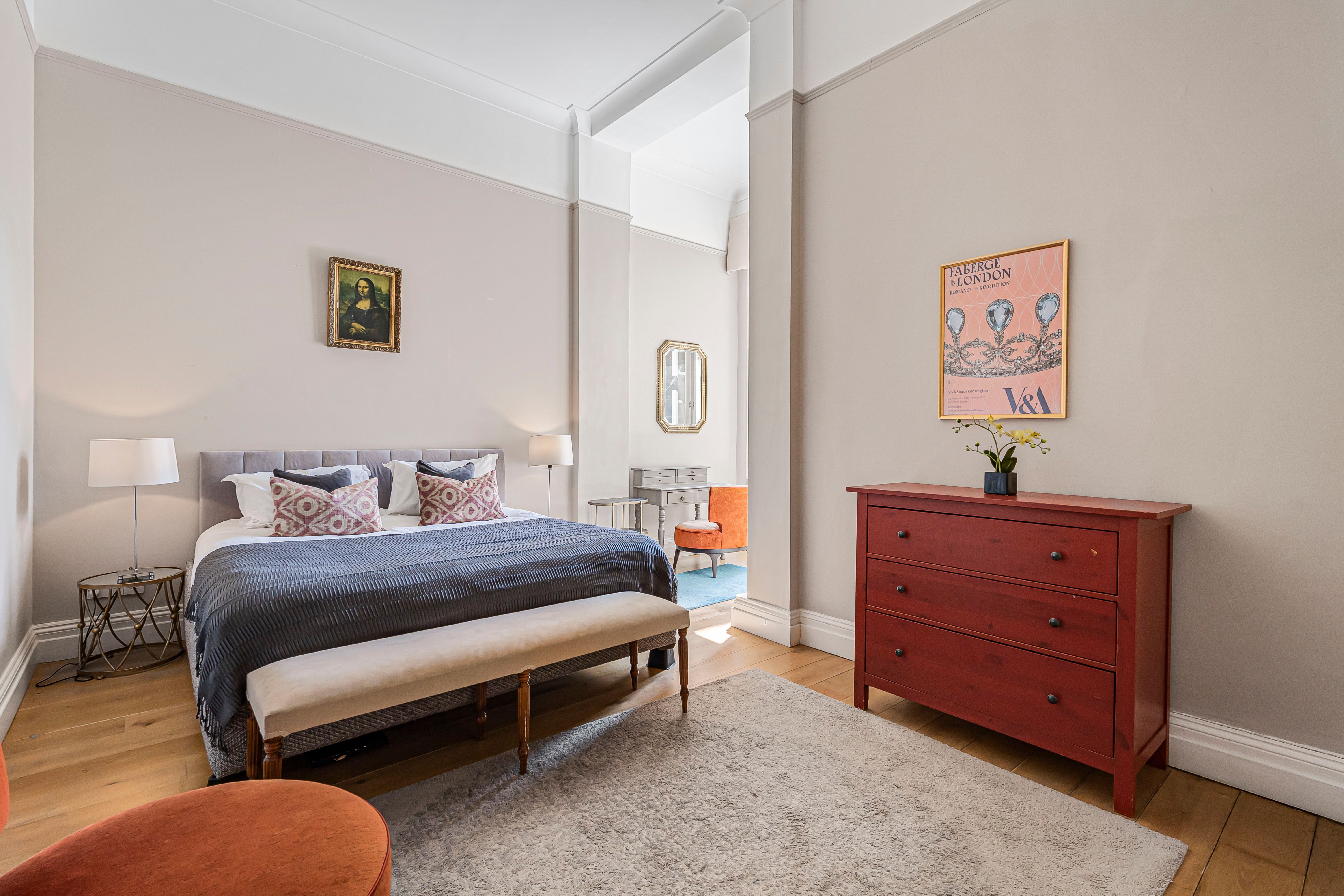 This chic apartment puts you in one of London’s most desirable postcodes. Set within an elegant period building, the space has an understated sense of grandeur – high ceilings, bay windows, and even a private balcony. The kitchen is a little compact, but with so many great restaurants on your doorstep, staying in will be the exception. Just a short walk takes you to the buzz of King’s Road, Sloane Square, and the world-class museums of Kensington. And if you’re not in the mood to roam, you can always enjoy the resident-only tennis courts and peaceful gardens — a real city oasis.