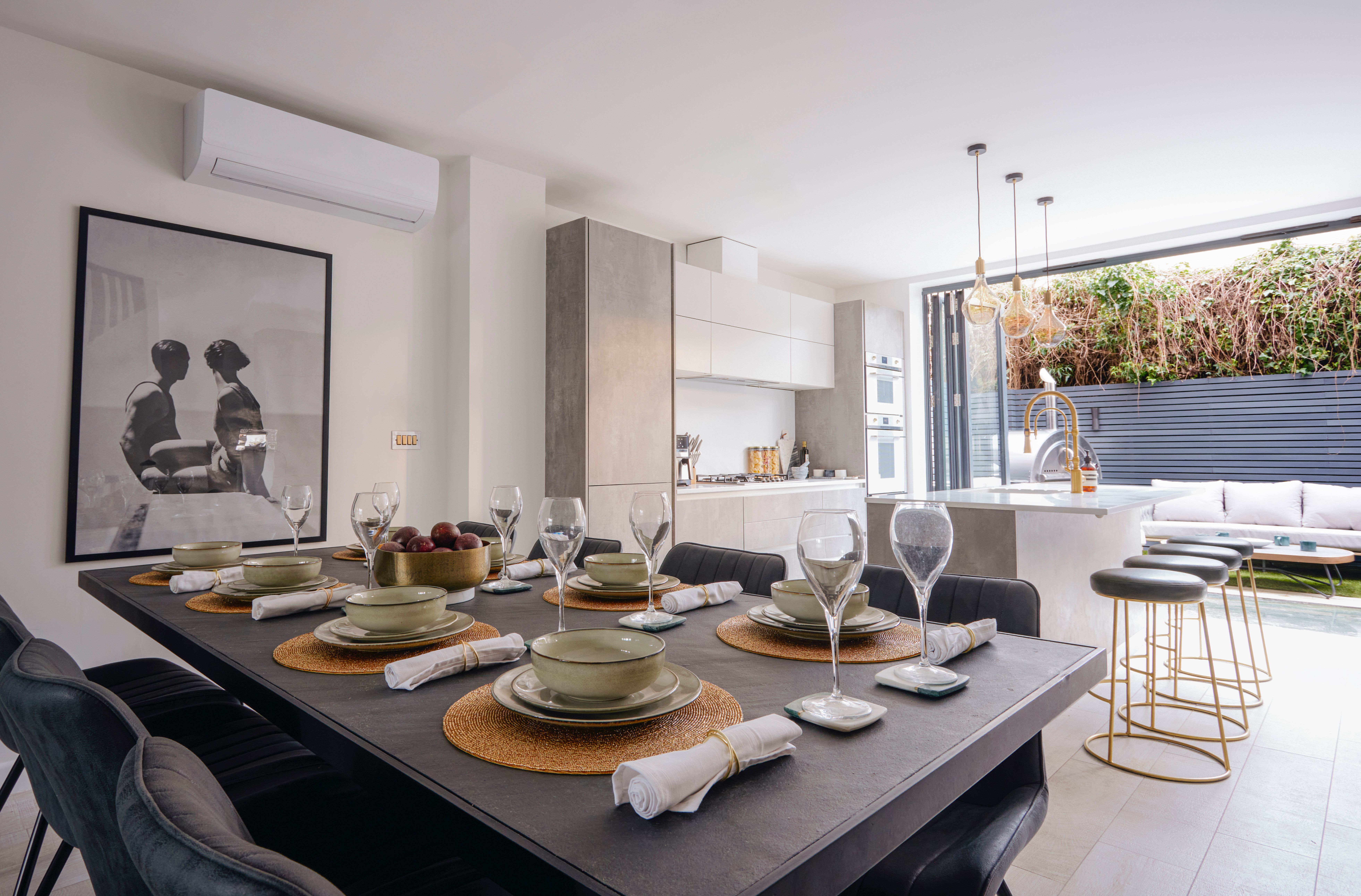 Cool, contemporary, and chockful of luxurious extras – this Parsons Green townhouse really has it all. Outside, a patio garden boasts a pizza oven ideal for summer barbecues, while the living area is perfect for socialising as a vinyl spins on the record player. Each bedroom boasts Egyptian cotton sheets and luxury toiletries, but our favourite feature is the private cinema room. Stocked with snacks and the all-important popcorn machine, there's nothing better than a movie night to wind down after a long day.