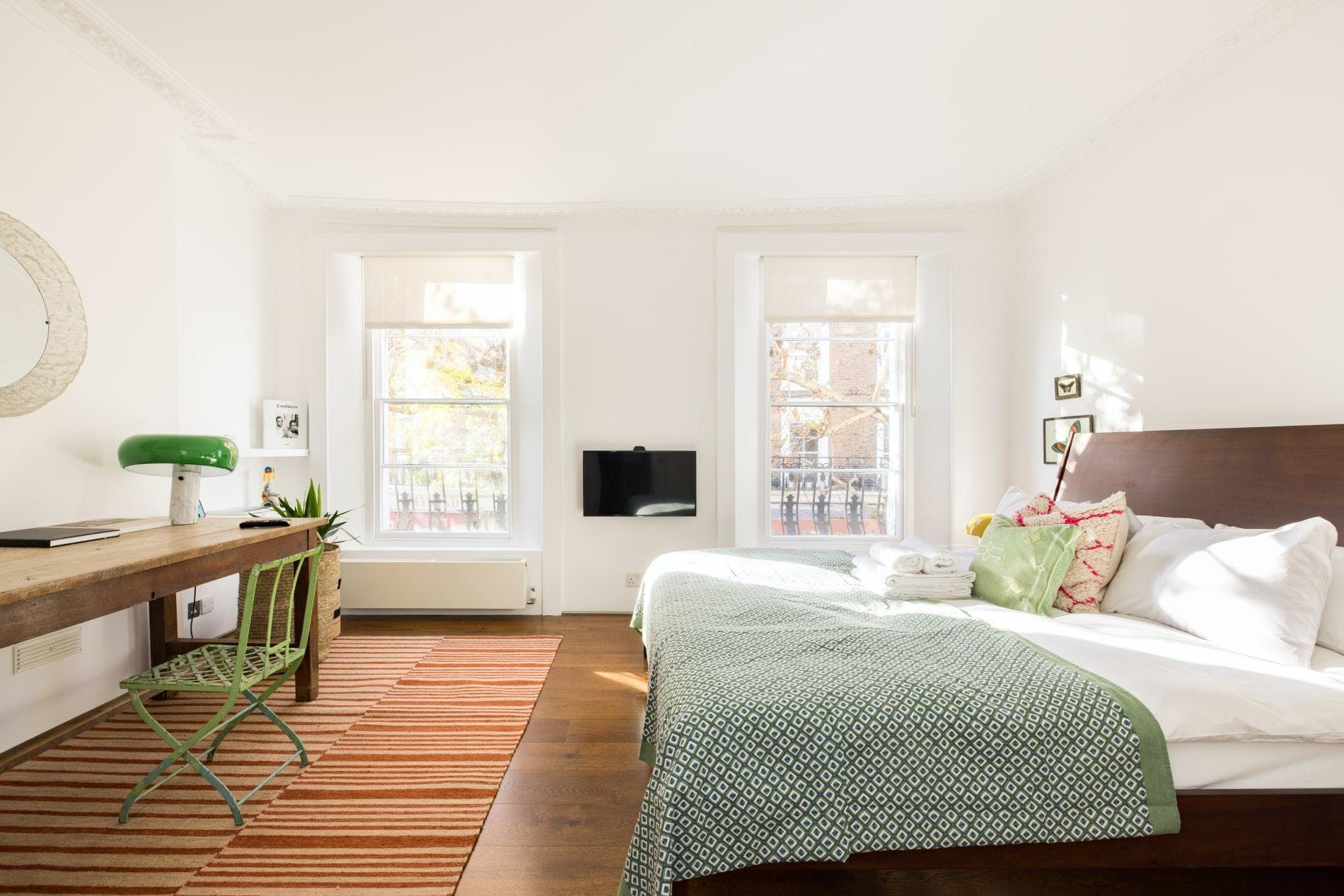 Set in a quiet corner of Notting Hill, this stylish home is great for families, friends, and professionals alike. It's spread over four floors so you'll be climbing plenty of stairs here, but the views from the rooftop terrace make it all worth it. You'll find Portobello Road with its famous street market and charming restaurants an easy walk away, along with that one bookshop that film buffs will want to visit. Holland Park and Notting Hill Gate stations are easily reached on foot too, putting some of London's most iconic landmarks like Buckingham Palace and Big Ben right at your fingertips. Whether you're seeing the sights or enjoying a more chilled-out city stay, this home delivers.
