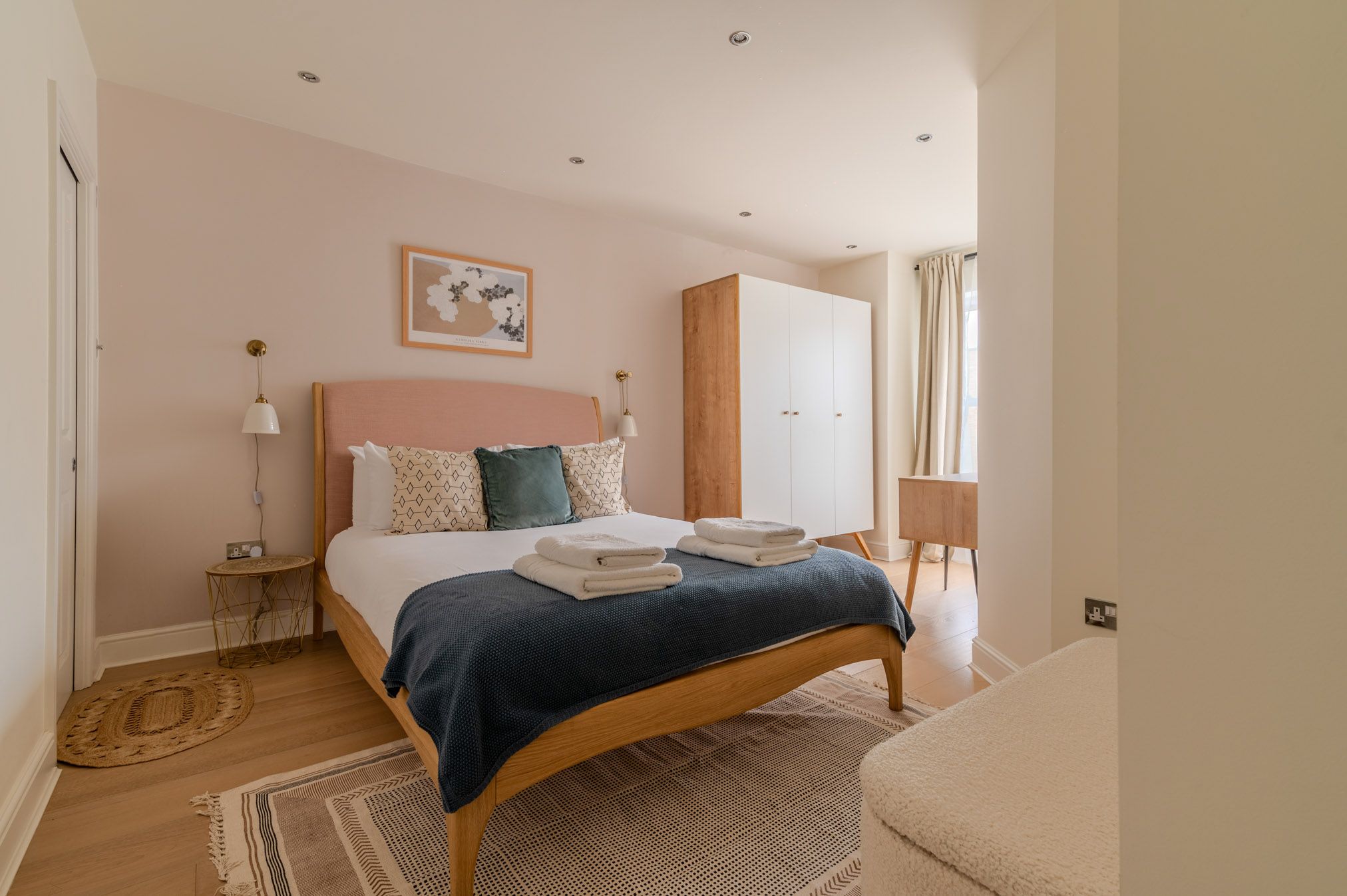 An excellent south-east London base, this apartment is stylish and inviting. It’s surrounded by greenery, just a five-minute walk from Dulwich Park – there’s a peaceful vibe. Despite the leafy surrounds, you’ll be just a short walk from the eateries and supermarkets of Lordship Lane, and one minute from a bus stop. It takes just twelve minutes on the bus to reach the Dulwich Picture Gallery. The apartment is comfortable and convenient, with a contemporary, state-of-the-art kitchen and tranquil bedrooms. It’s ideal for long stays, a real home-from-home.