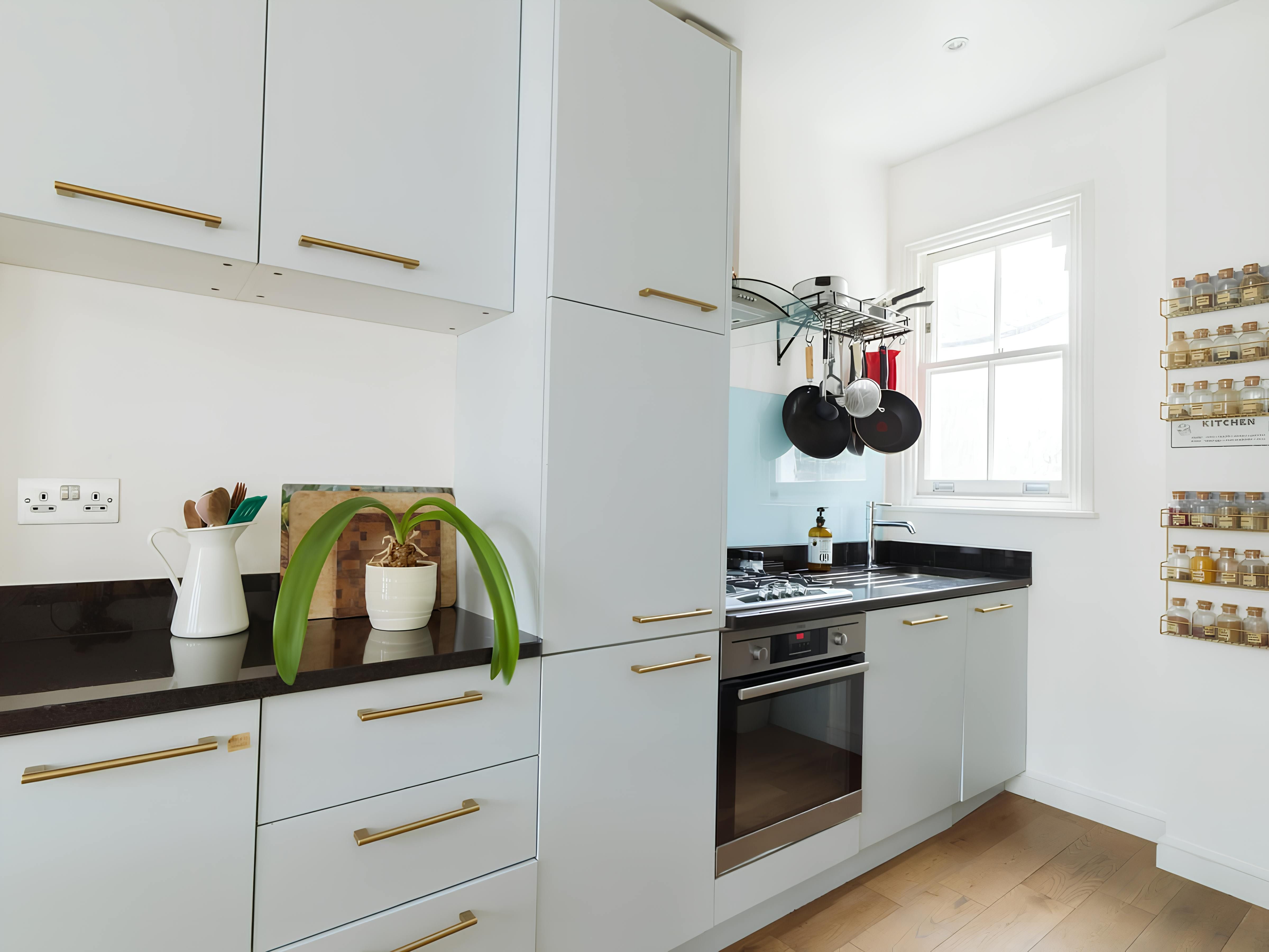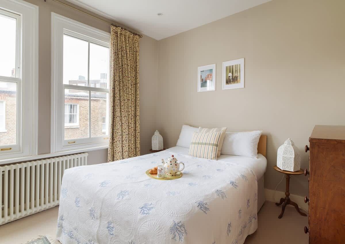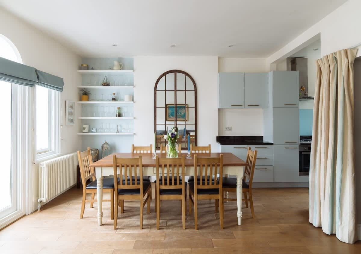 Bright and attractive, this apartment sits in Barons Court, seconds from the iconic Queens Club. There are great pubs and coffee shops nearby, and you can walk to the Tube in three minutes. The star of this home is undoubtedly the large roof terrace, where you can dine alfresco or lounge on the sofa. The apartment is spread over two floors so there’s plenty of space, though at full occupancy, two guests will sleep on a sofa bed in the living room. It's also worth pointing out that the building's low water pressure means that only one of this home's showers can be used at a time.