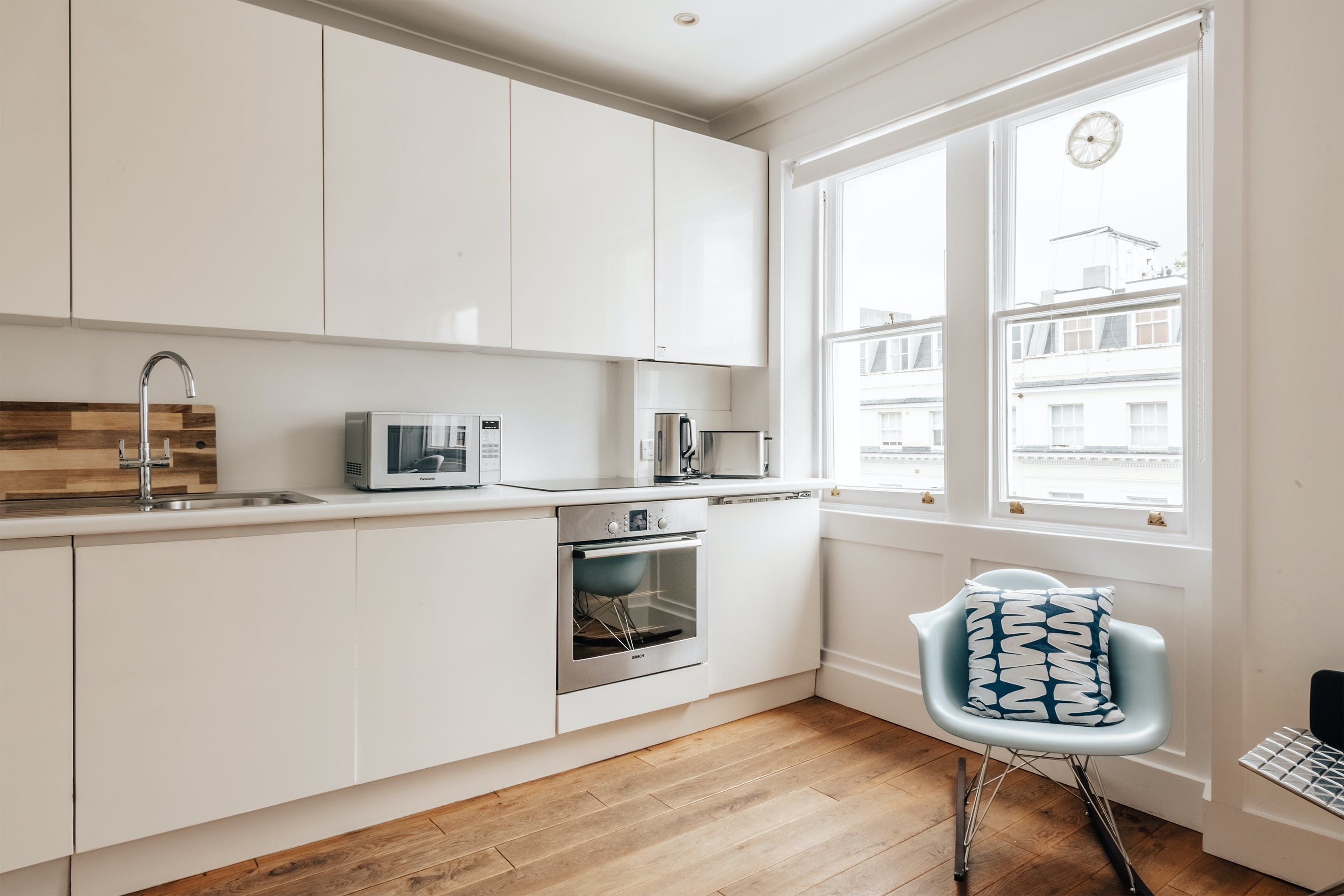 Set in a quiet corner of Notting Hill, yet with buzzy Portobello Market and Westbourne Grove a stroll away and the underground even closer, the location of this apartment is hard to beat. Housed in a grade II listed building, while the apartment's interiors may be a little pared-back for some, the owner's curated artwork brings plenty of interest. And there's no dodgy sofa bed set-ups here – instead, expect two well-proportioned bedrooms as light-filled as the next.