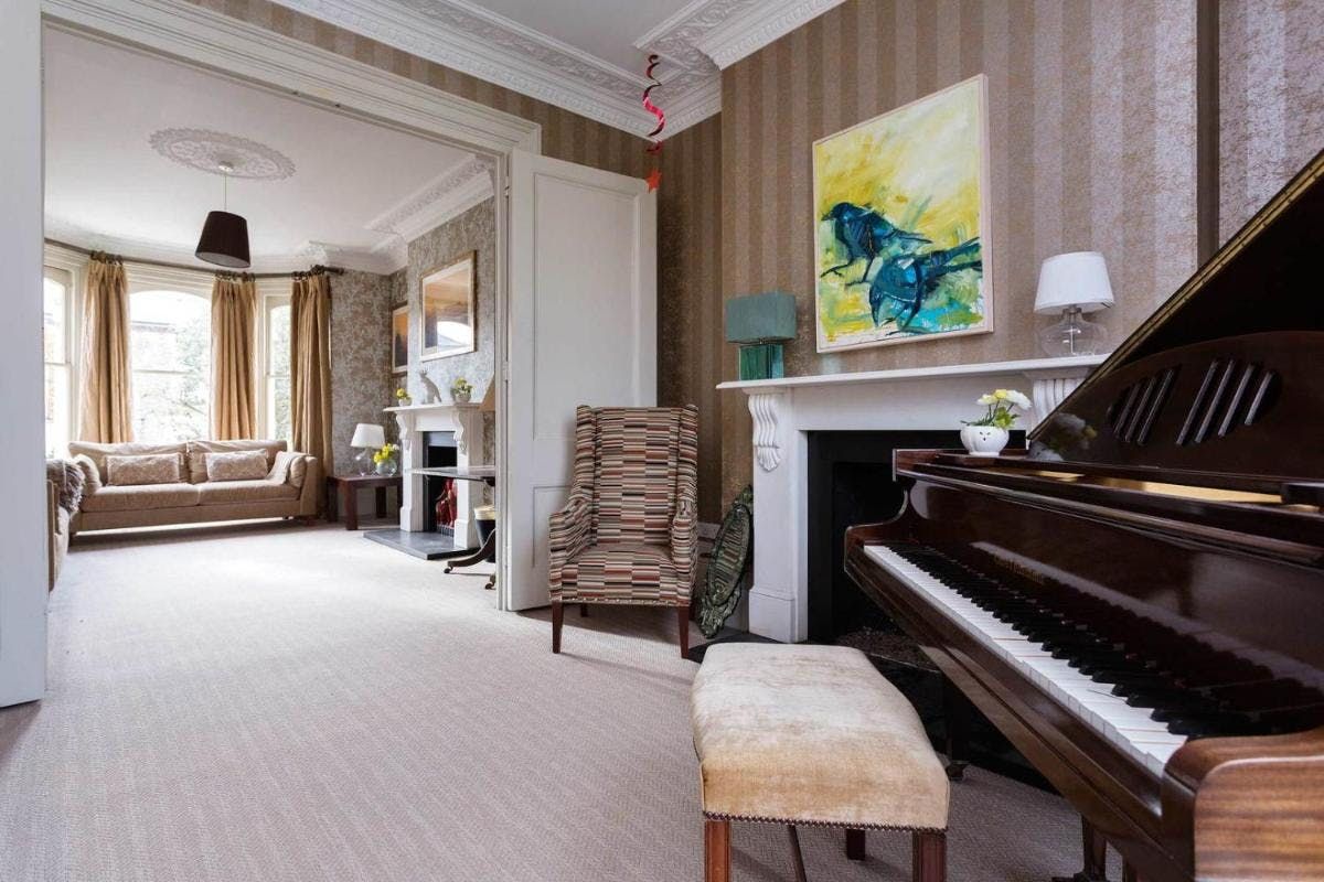 Located just a short walk from Clapham and Wandsworth Common, this home is ideal for a large family looking for a luxurious stay in London. At the heart of the home, a double reception room is equipped with a piano and plenty of space for entertaining. Plus, on warmer days, the open-plan kitchen opens to the garden via French doors, ideal for alfresco meals. The two family bathrooms feature free-standing bathtubs, so after days of exploring London, there'll be many opportunities to unwind in peace here. Just a short walk from the bars and boutiques of Northcote Road, the home is also within reach of the rest of London via Clapham Junction train station, only ten minutes away on foot.