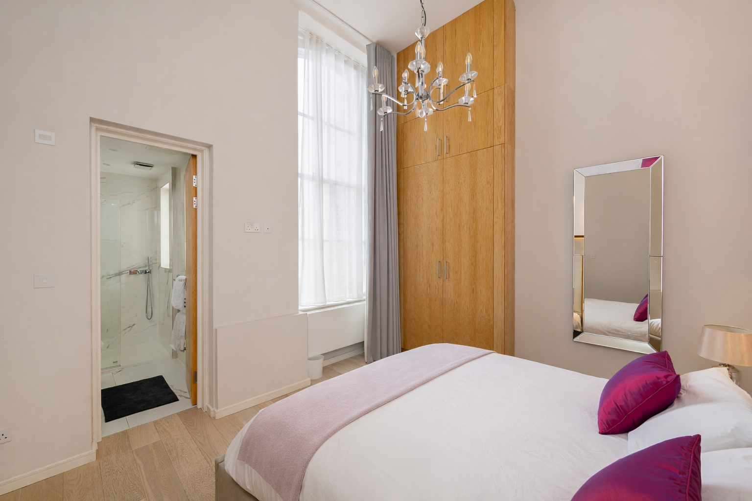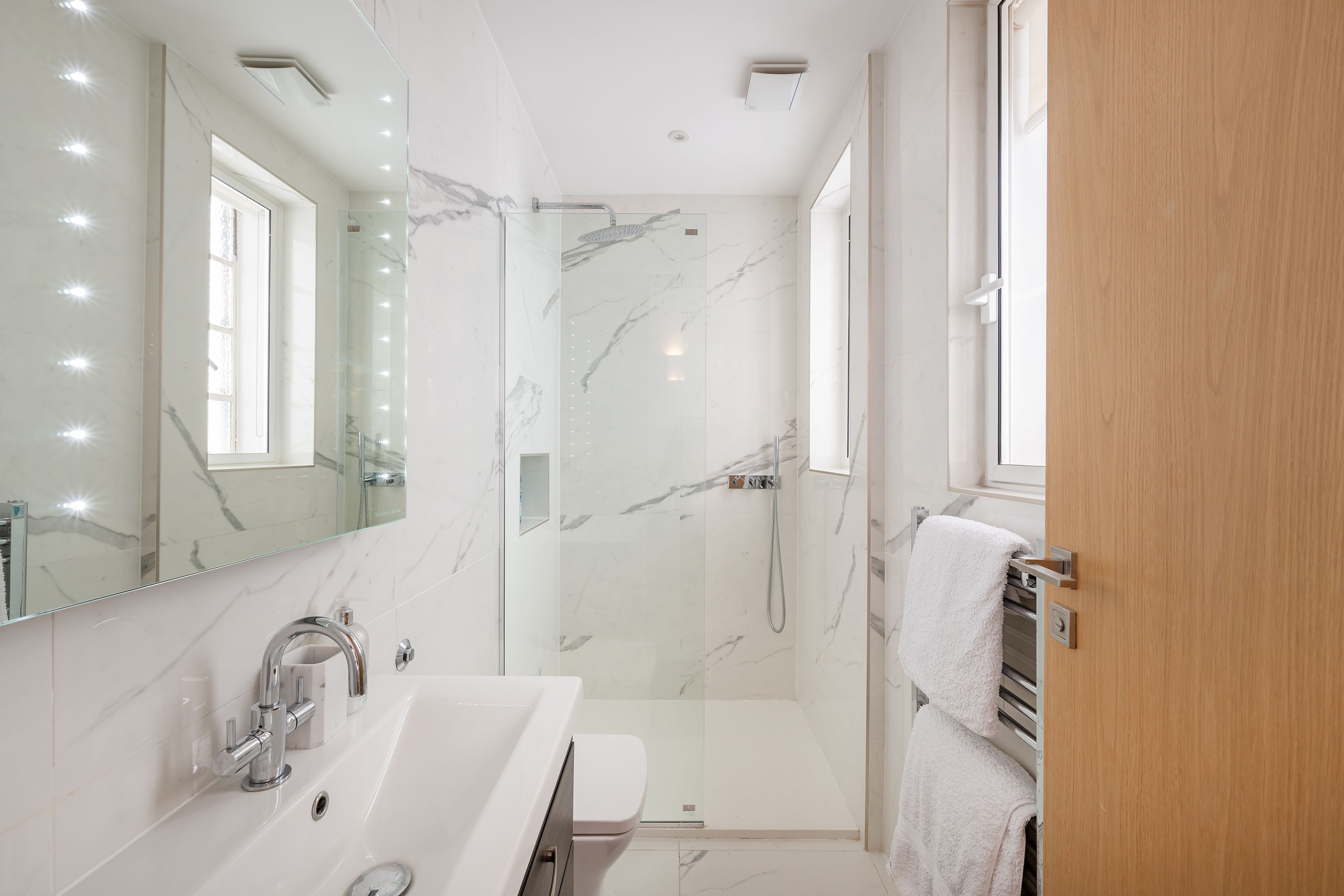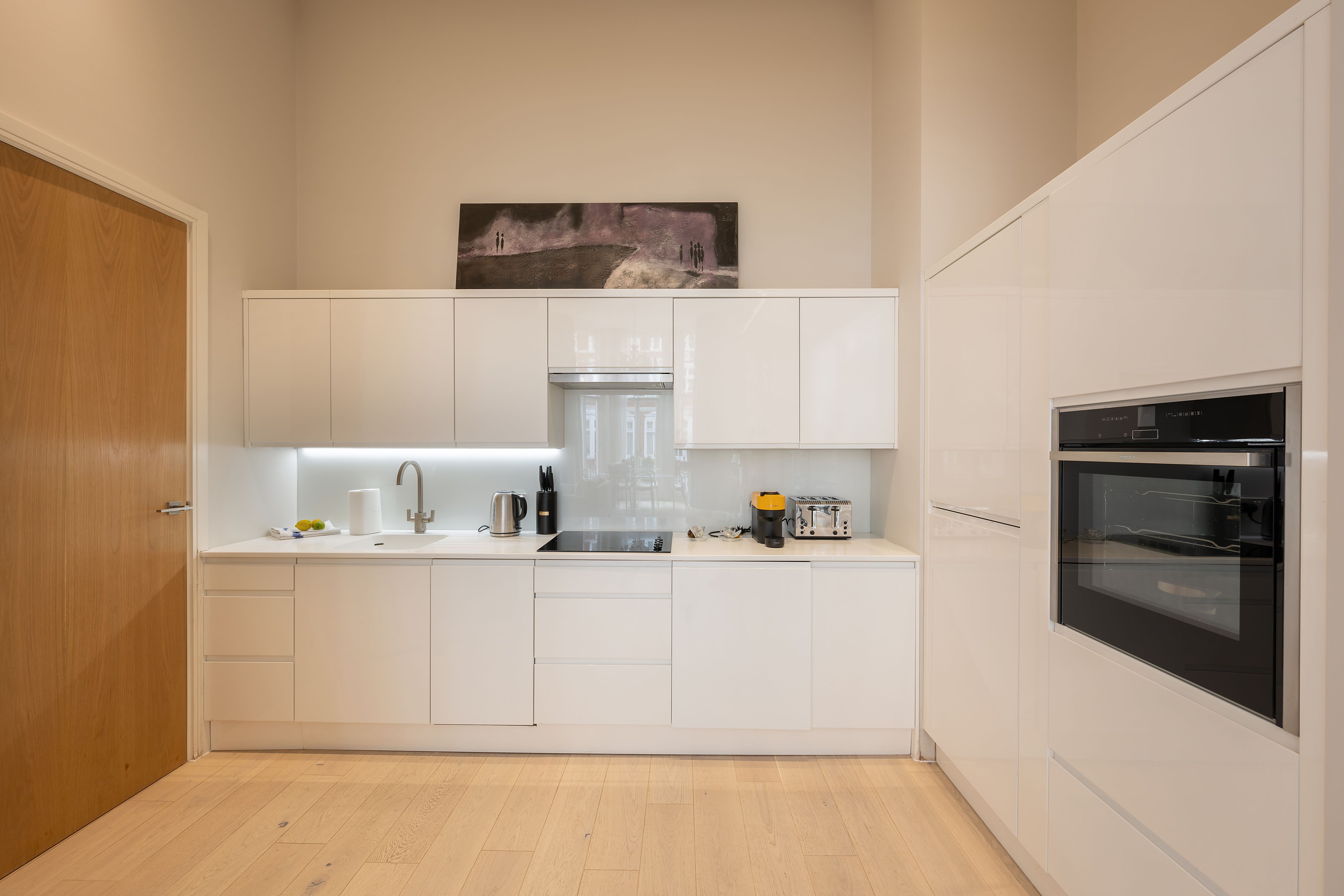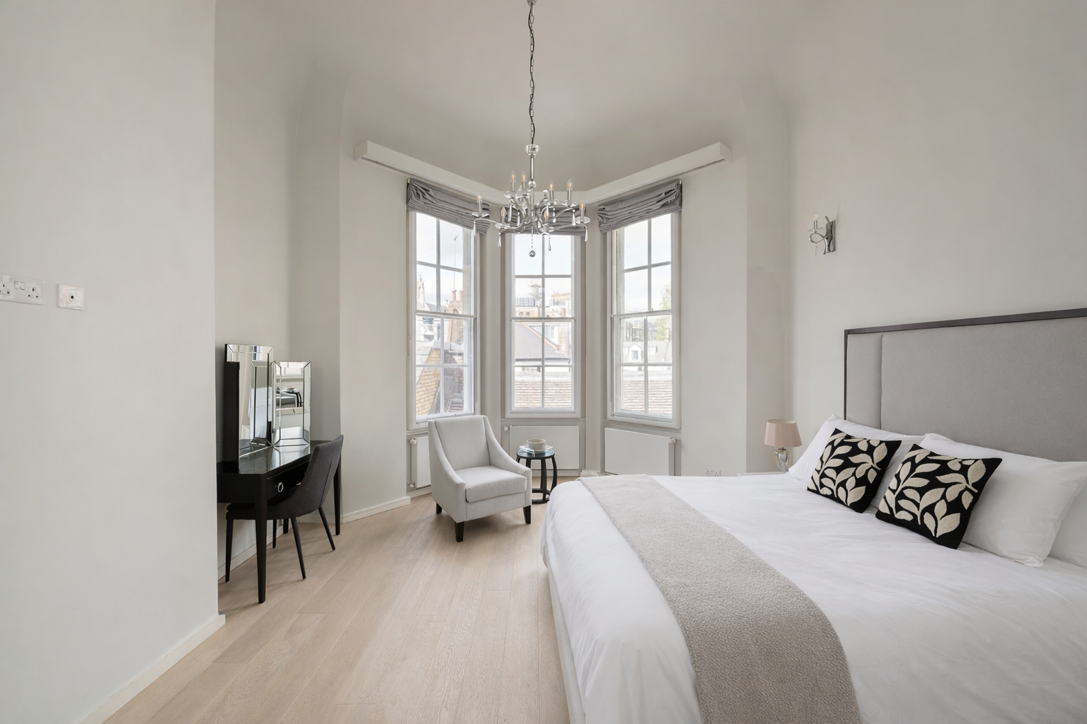 In the heart of Knightsbridge, this apartment is the epitome of elegance. Sky-high ceilings, expansive windows, sparkling crystal chandeliers – the details here perfectly embody the prestigious locale. There's room for everyone to enjoy themselves in the living area, while the two en-suite bedrooms also ensure privacy. The cherry on top is the small but sweet balcony, where you can linger with a glass of wine and admire the neighbourhood's red-brick buildings. Ready to explore? Harrods is a five-minute stroll away, Hyde Park is walkable in ten, and South Kensington's museums are just fifteen minutes on foot.