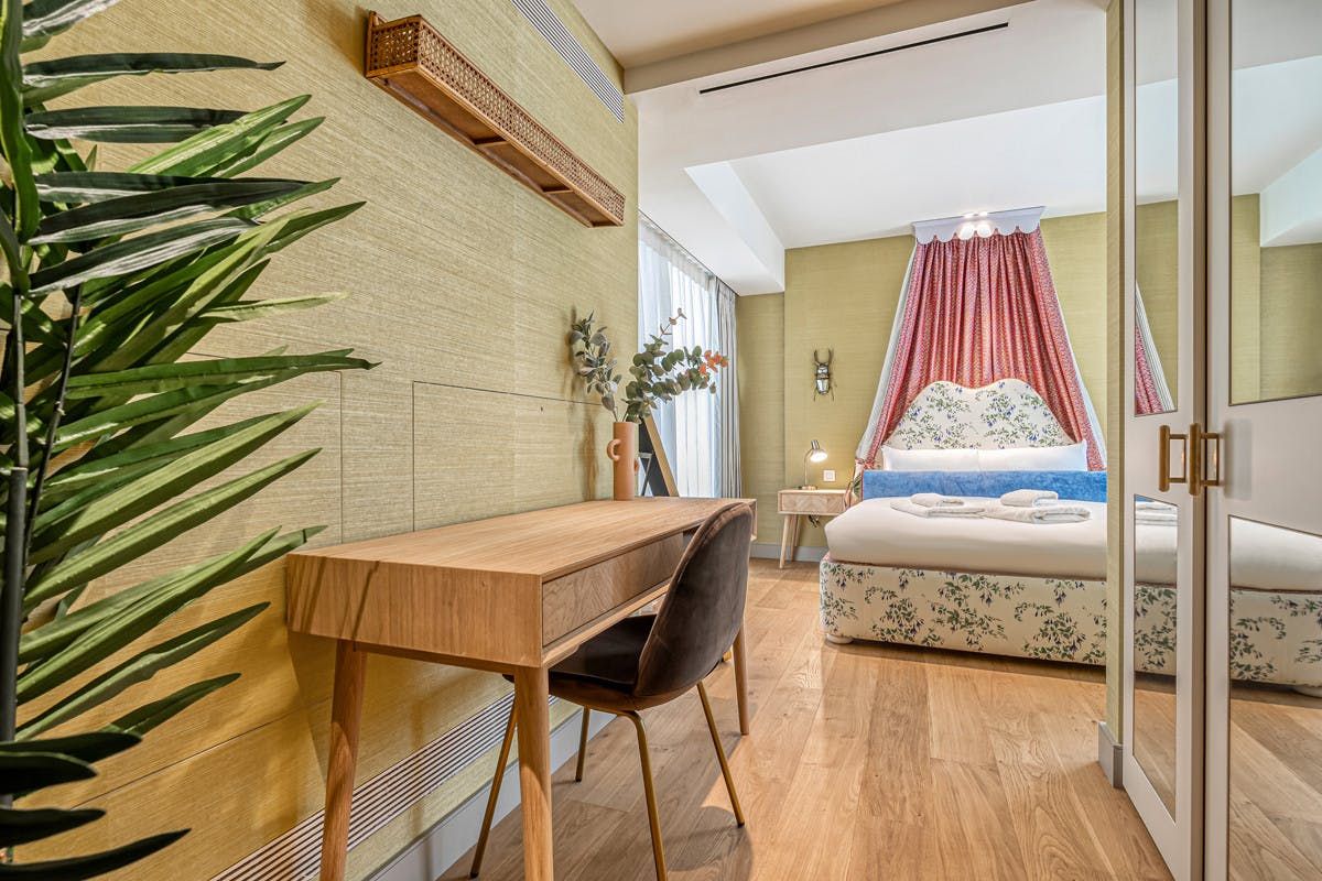 Home truths: *At full occupancy, two guests will be sleeping on the sofa bed in the living area. *The outdoor space is somewhat overlooked by the nearby buildings. There's a chance you might see a neighbour or two on their balconies, so it doesn't feel completely private. *Given the home's central spot, expect to hear some street noise throughout your stay. *There's a dedicated desk space here if you need to catch up on work during your stay. *You'll have access to the on-site courtyard and Indian restaurant here. They're shared with the building's other residents. *While this home is private, please note that the communal areas of this building are under CCTV for security reasons.*Please note that this home is equipped with a sensor that monitors smoke, decibel levels, and occupancy. It's camera-free and doesn't record conversations or store personal data.