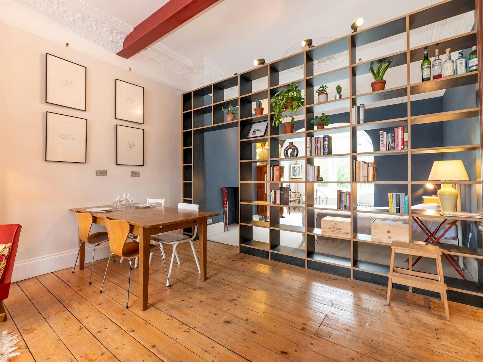Located in North Kensington, this studio apartment is a twenty-minute walk from iconic Notting Hill and Portobello Road. And for reaching the rest of the capital, just hop on the Tube – Ladbroke Grove station is a fifteen-minute stroll away. We love the period features here – especially the ceiling roses and ornate cornicing. With a lounge area and dining table, this place is bigger than your average London studio. Whether you’re in town for work or pleasure, we think this place a great option for a couple or solo traveller seeking a characterful base in a convenient location.