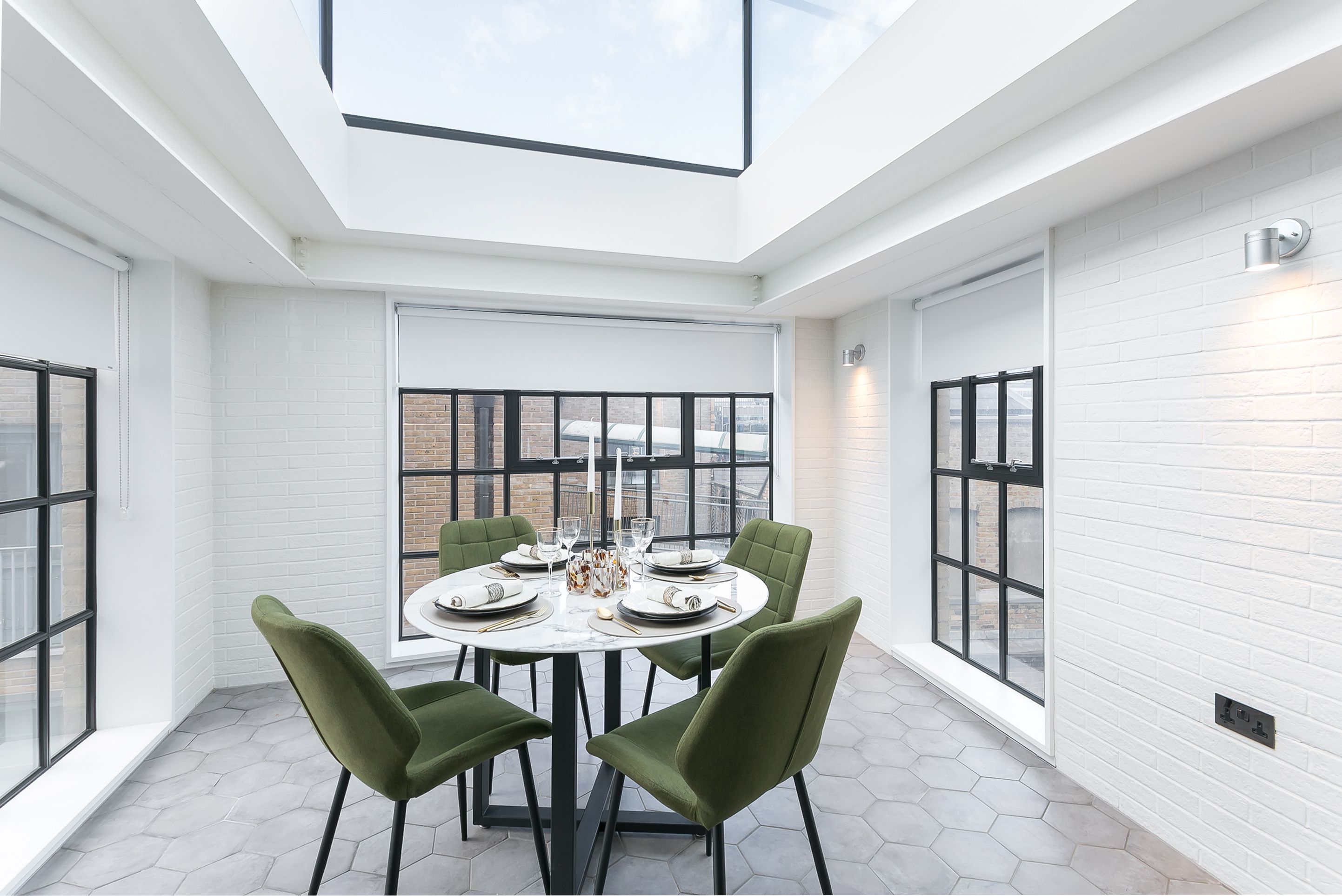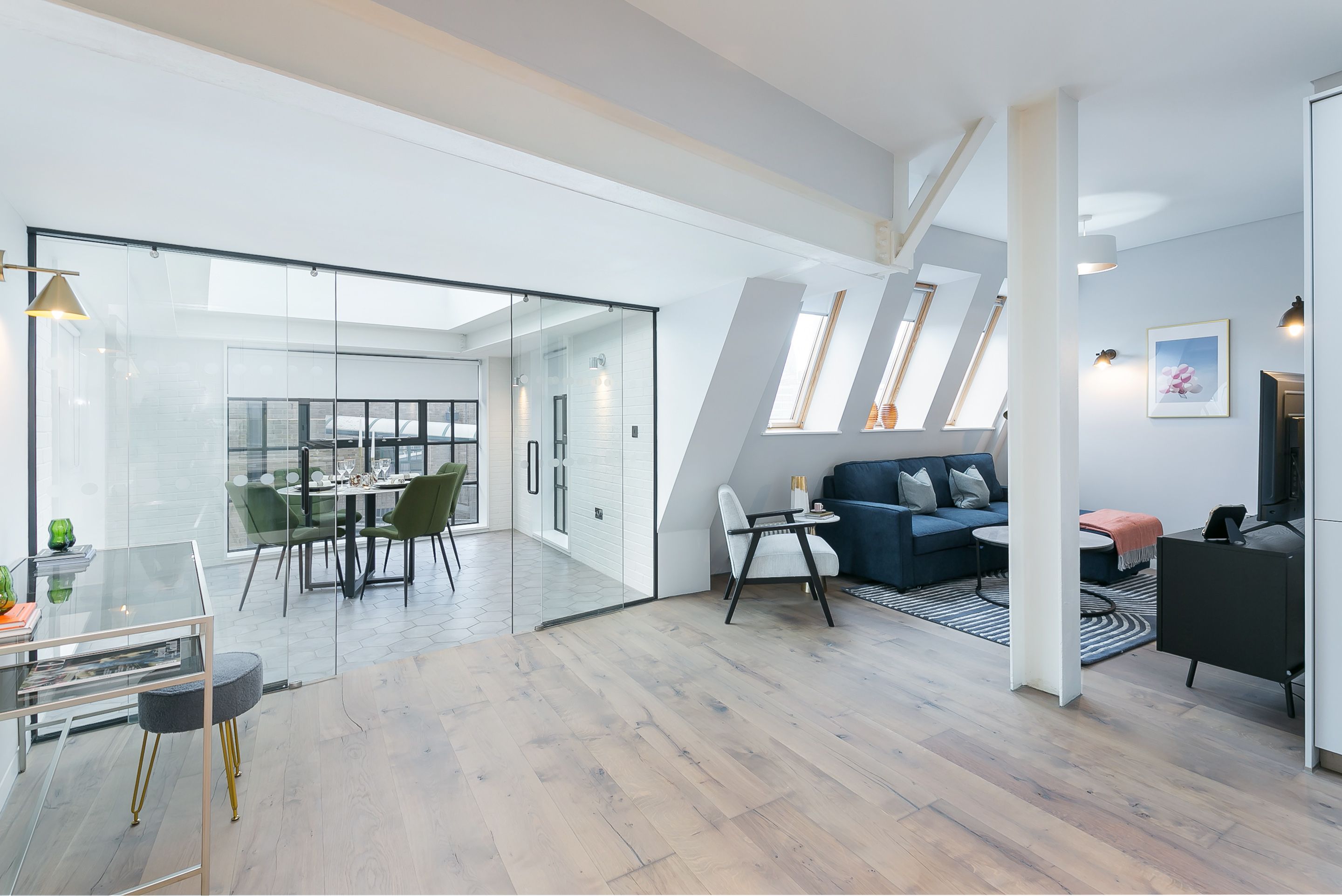 You'll be surprised by how roomy this apartment is, especially considering the central London location. The open-plan living area is the stylish centrepiece of the home, and we especially love the private dining area with its industrial-style windows and large skylight. Making meals is a breeze in the large kitchen, and there's a dedicated desk – handy if you're using this pad for remote working. Step out of your door and you're in the heart of London Bridge, just a short walk from the Globe, Borough Market, and Tate Modern, so you're certainly not short of entertainment during your stay.