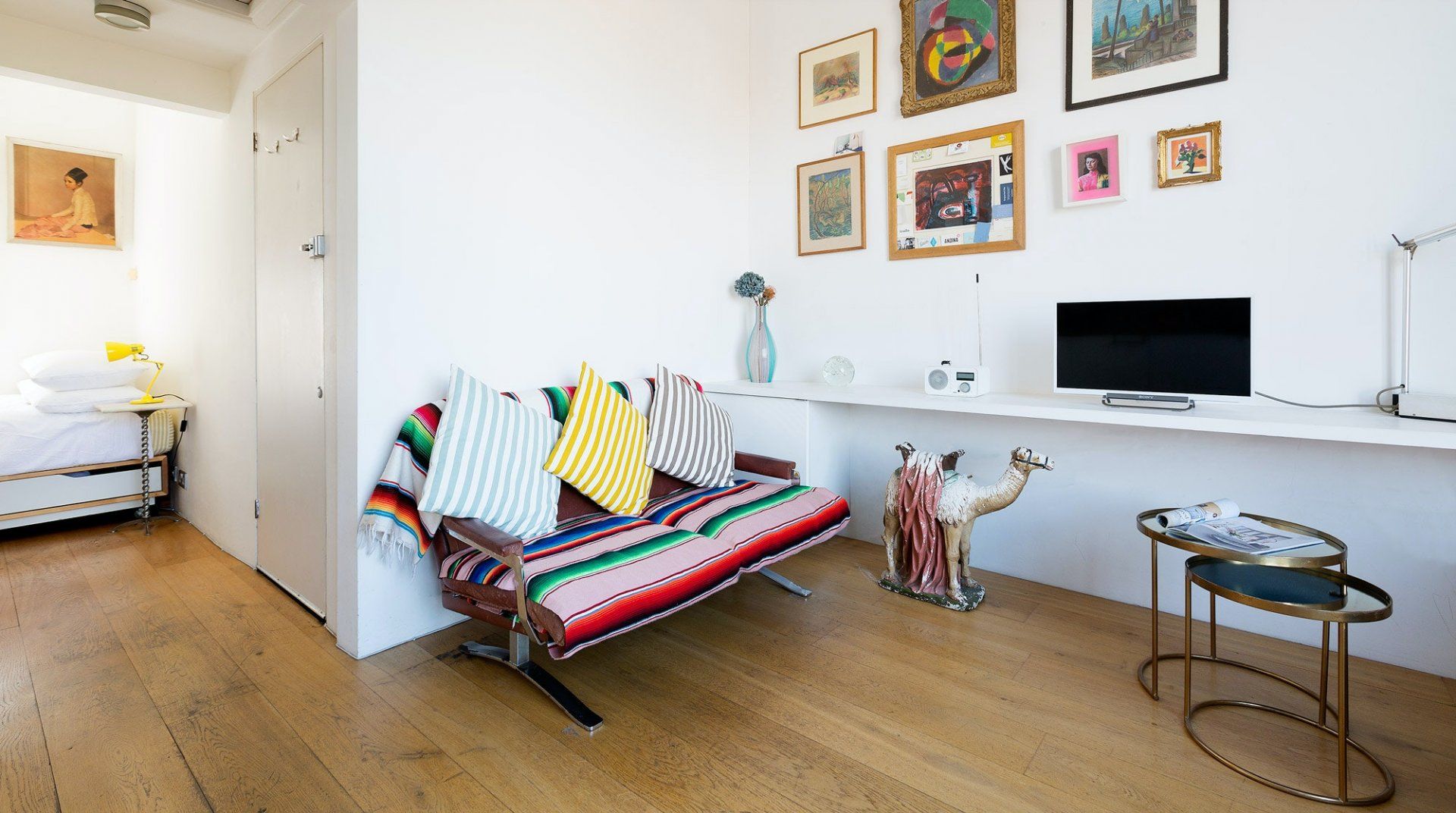 *This is a studio with no door separating the living area from the sleeping area, but the bed is tucked away in the back of the flat
