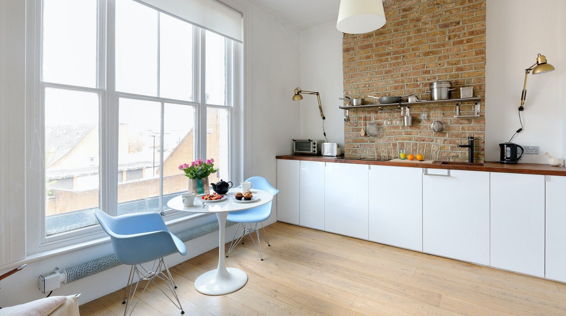 This soulful studio is calm, charming and cosily romantic. It's set in a Victorian building and you can see some of that period character in the high ceilings, exposed brick and oak flooring. Parrot cushions and colourful throws give it a quirky personality, while the furniture is simple yet stylish. You'll love how friendly and knowledgeable host Gabrielle is, plus the way natural light pours in through large windows. We like how the bed is tucked away from the living area, so there's a nice sense of separation between where you relax and where you sleep. The snug size does mean there's no washing machine or dishwasher, but neither's an issue if you're not staying too long, and as Islington is known for its buzzing restaurant and gastropub scene, we doubt you'd be getting up to much cooking. Bustling Upper Street is about a ten-minute stroll – home to an array of cosy cafes, independent shops and delicious eateries – and public transport links here are top-notch, with three different stations less than ten minutes away.