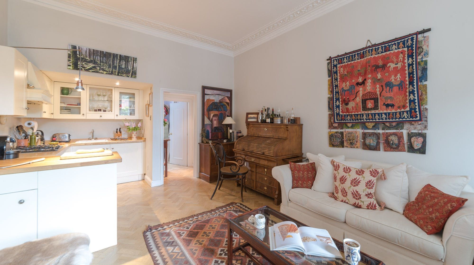 Step inside to be instantly charmed by the carefully decorated interior, filled with comfy furnishings and elegant touches. We love the unique art and period pieces to be found all over the apartment – a testament to the hosts’ taste and passion for design.