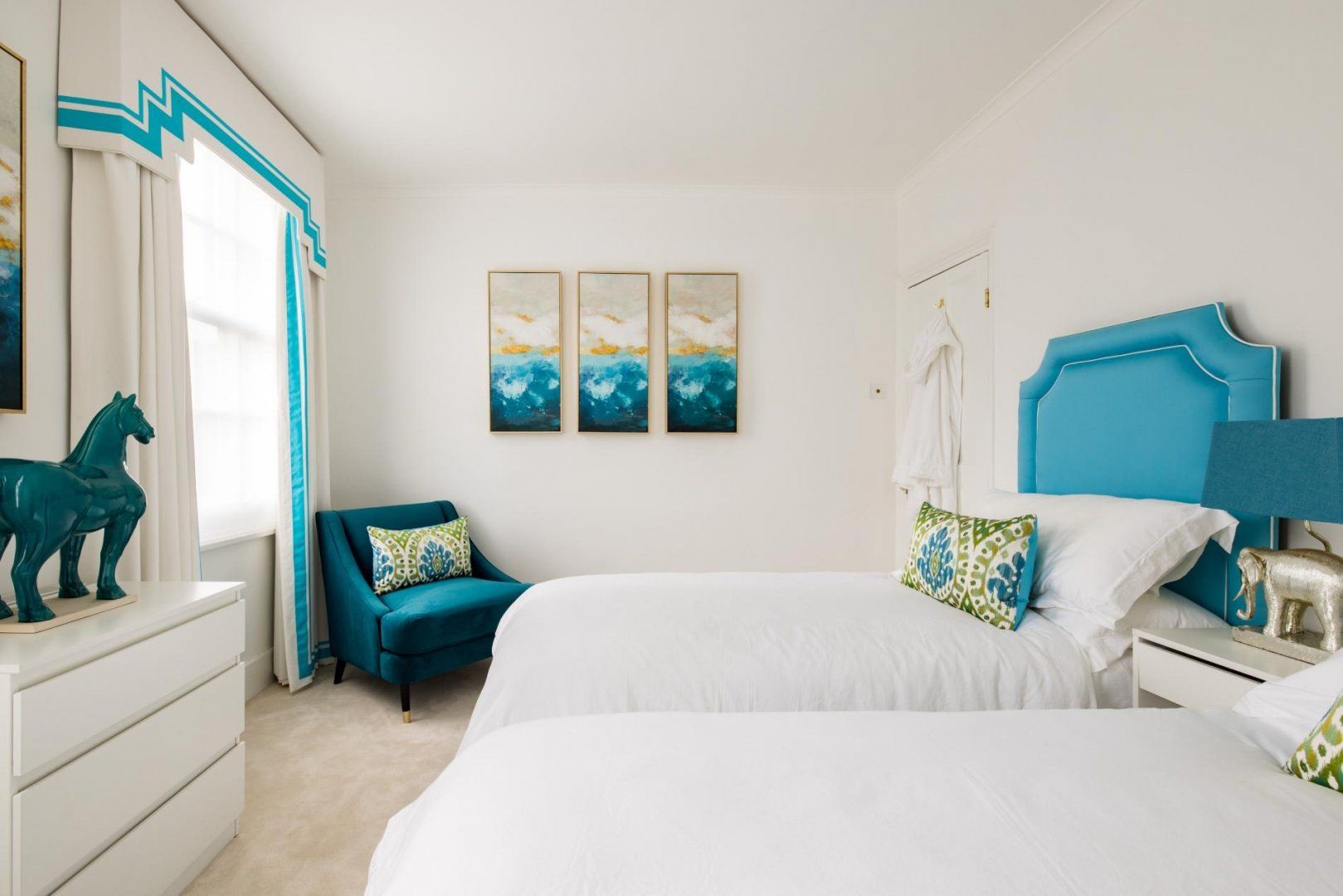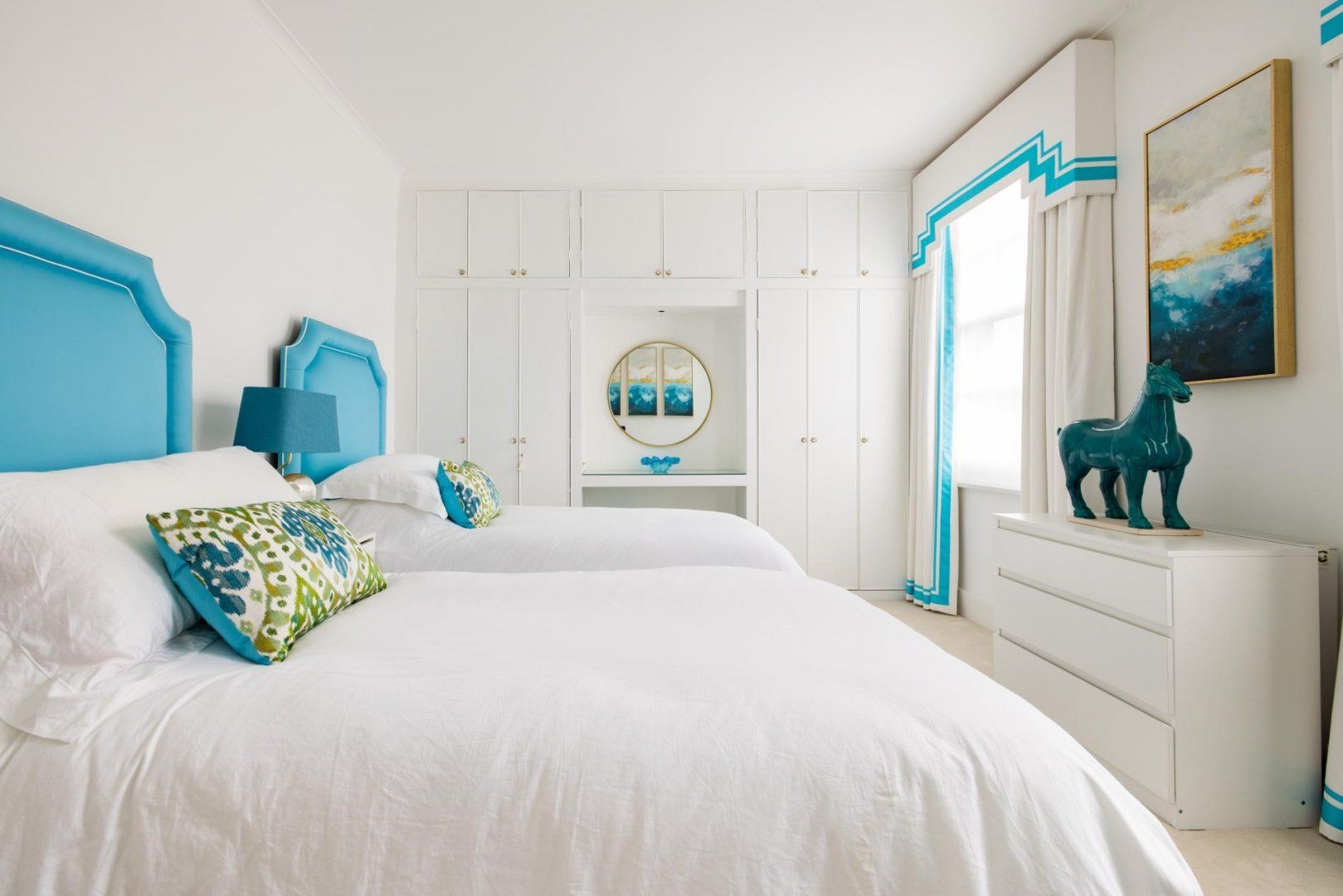 If the office falls apart without you there, then you'll find the dedicated office invaluable if you need to fire off a few emails, while a quiet moment is just a closed door away in any of the four bedrooms, decorated in electric blues and zingy pinks.