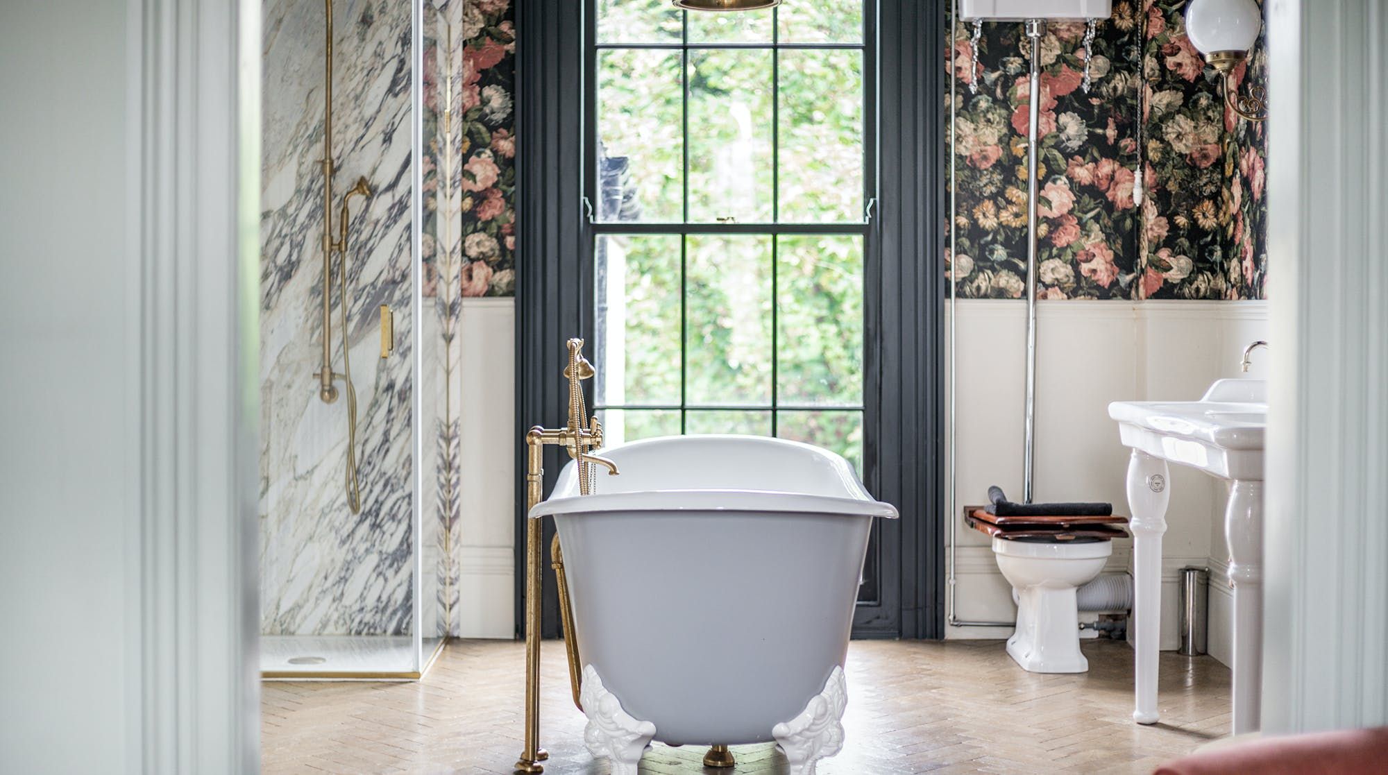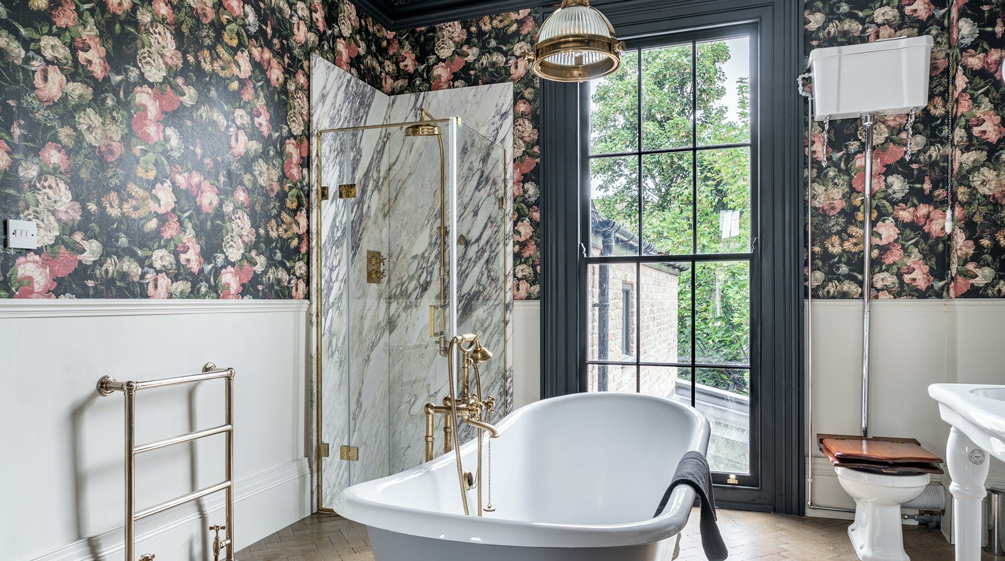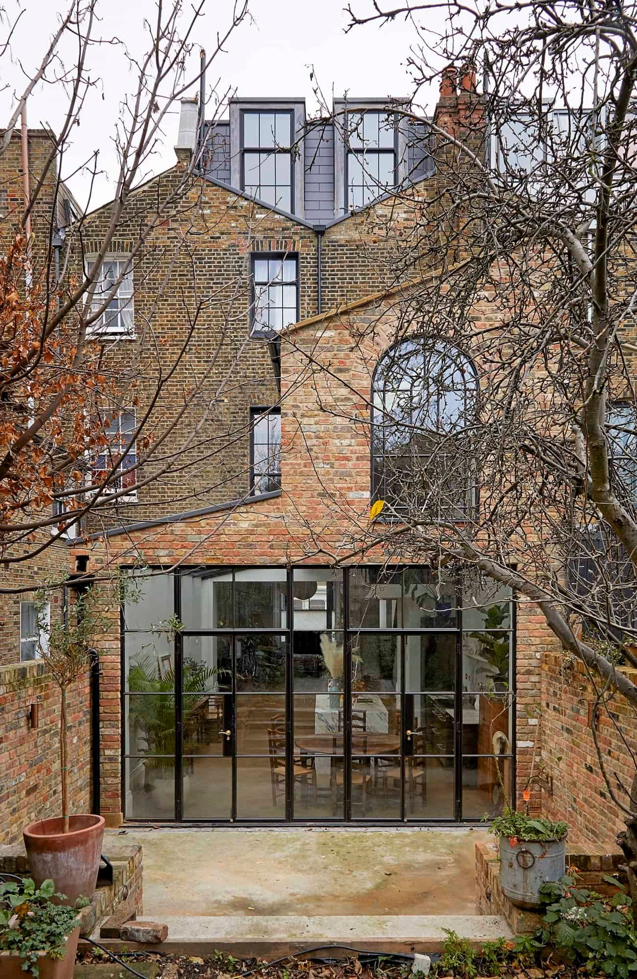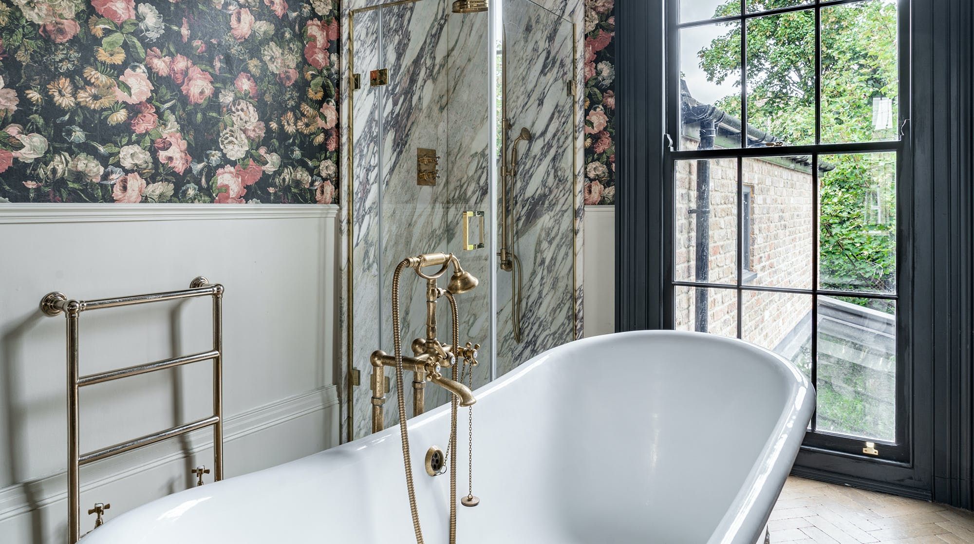 The kitchen is just as striking, thanks to the large windows, the flurry of house plants and handsome marble surfaces. So striking in fact, that we crowned it 'kitchen of the year' on Instagram. As well as letting in copious amounts of natural light, the French door also leads out to a charming garden space with some seating for warm evenings.