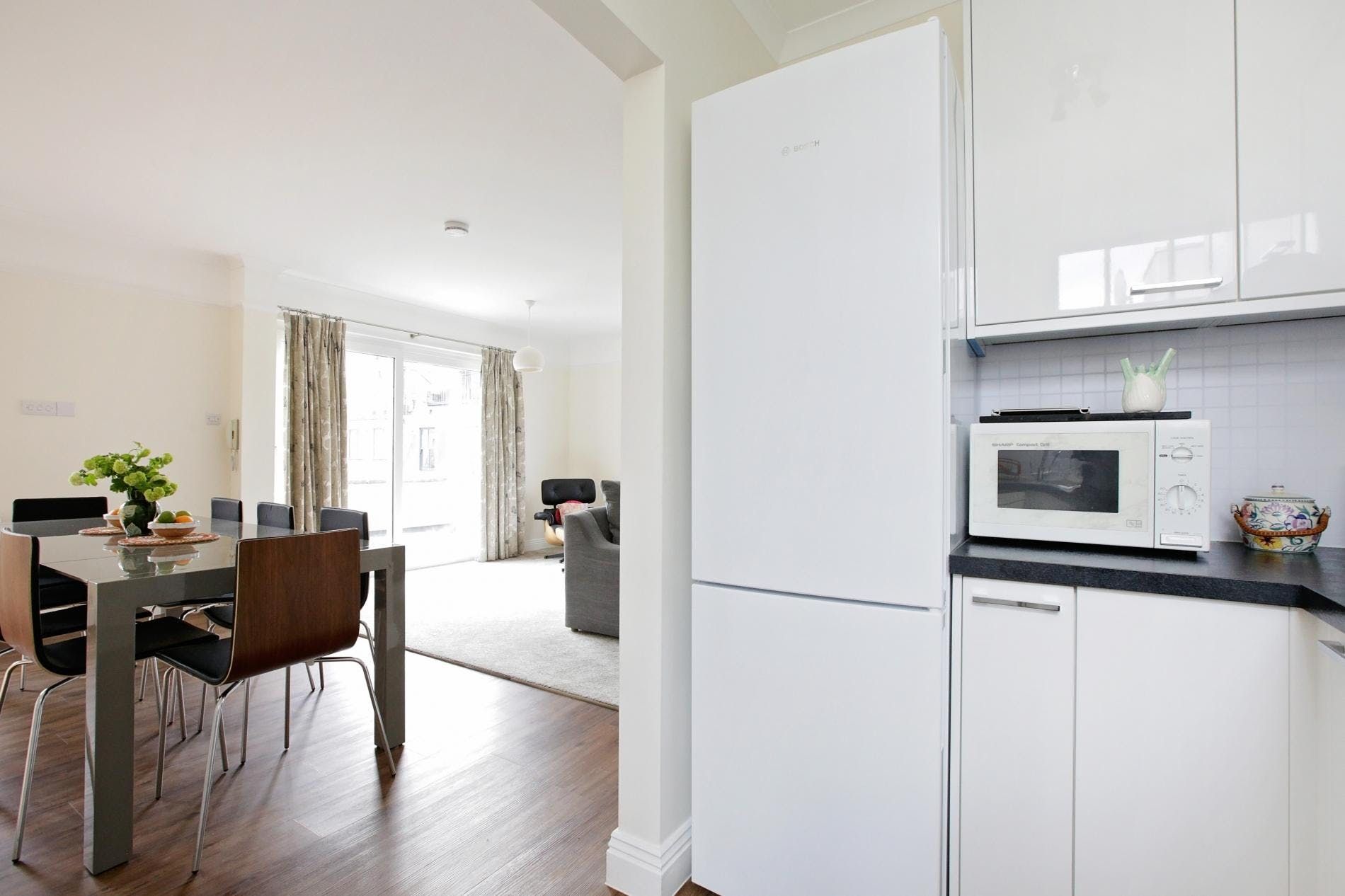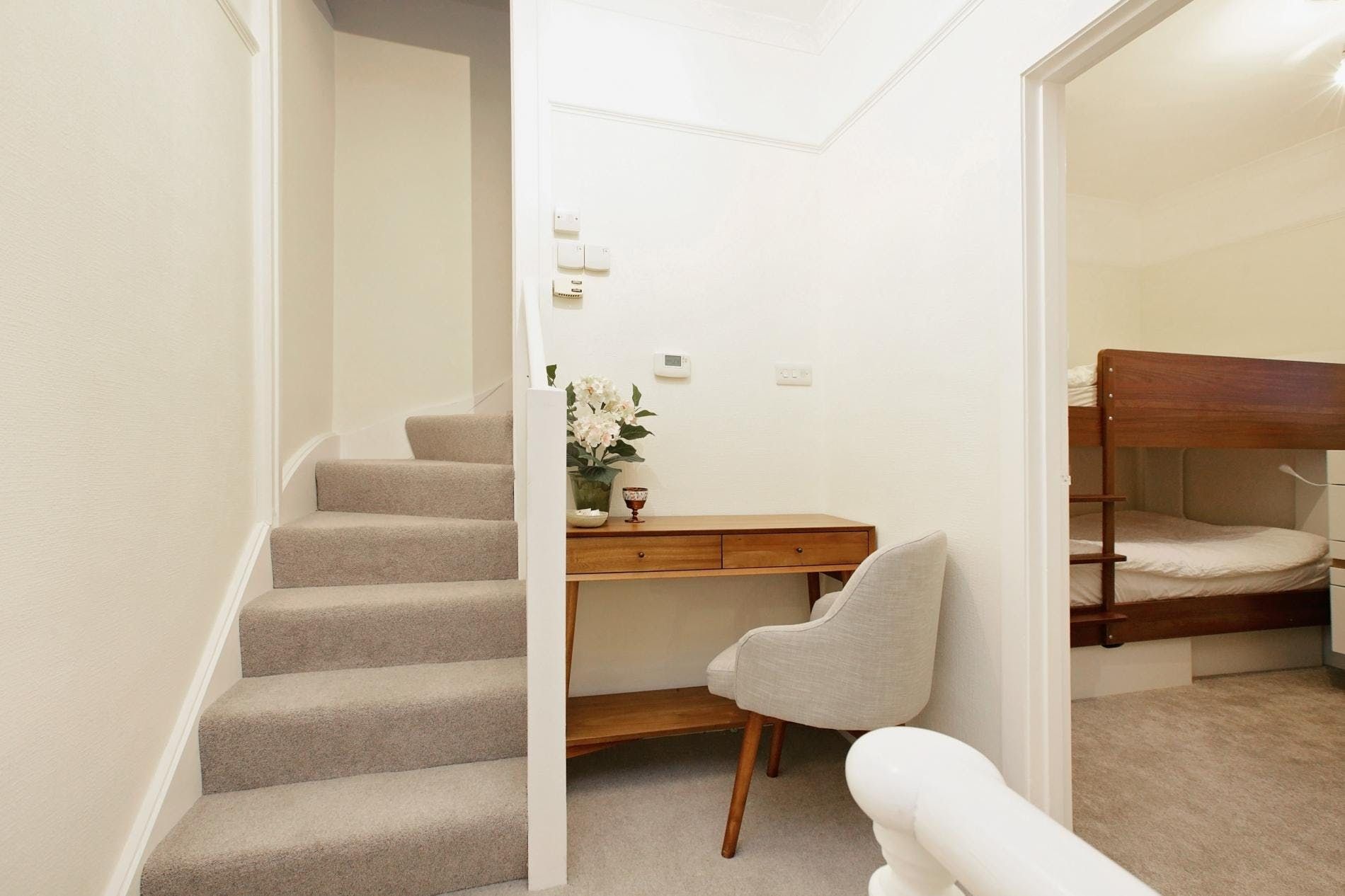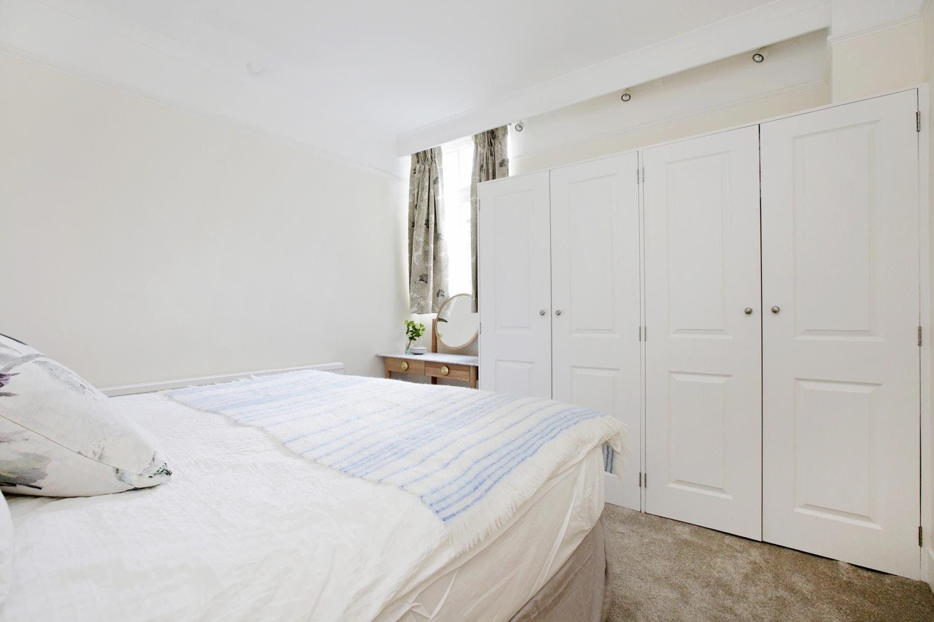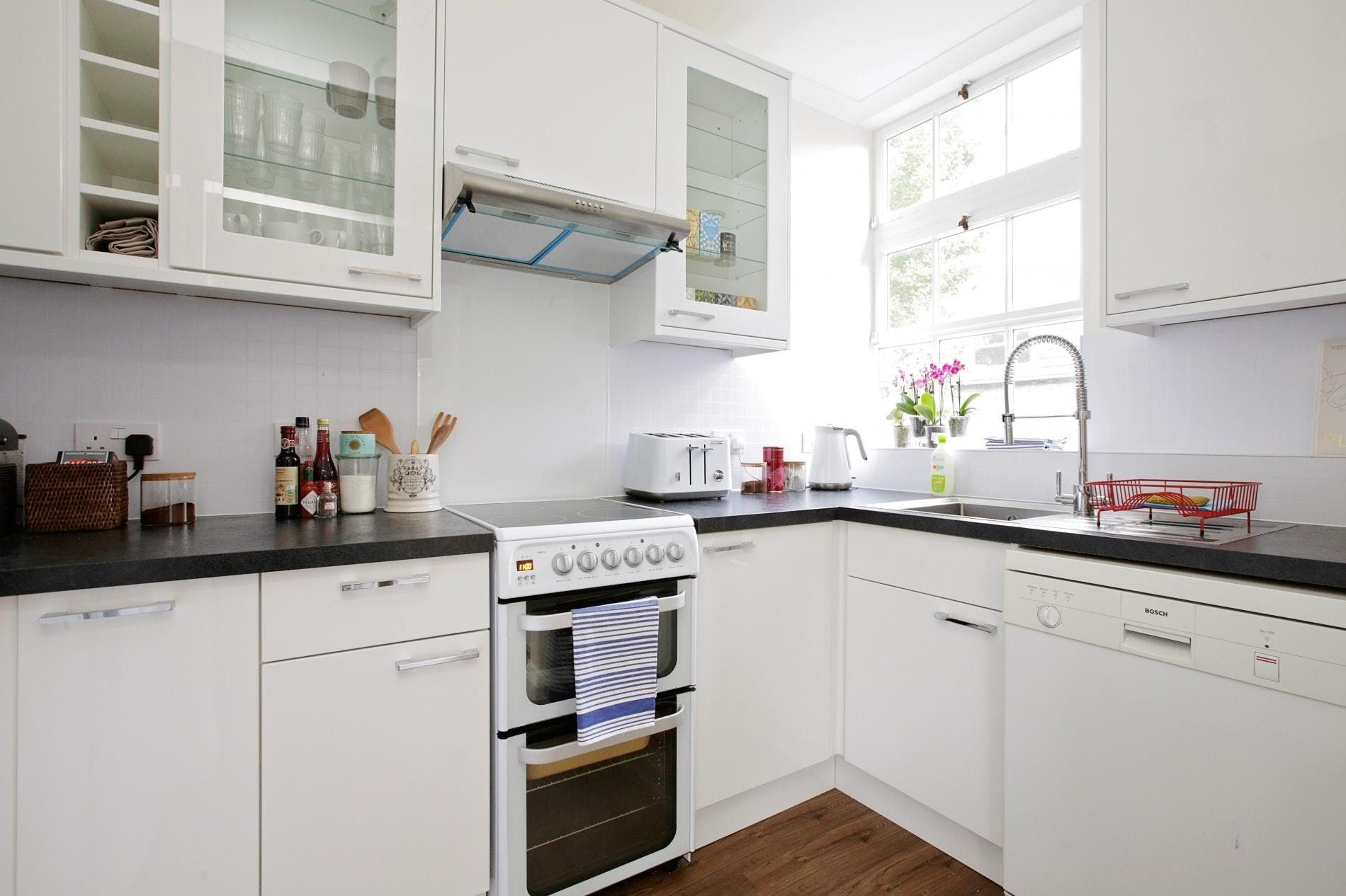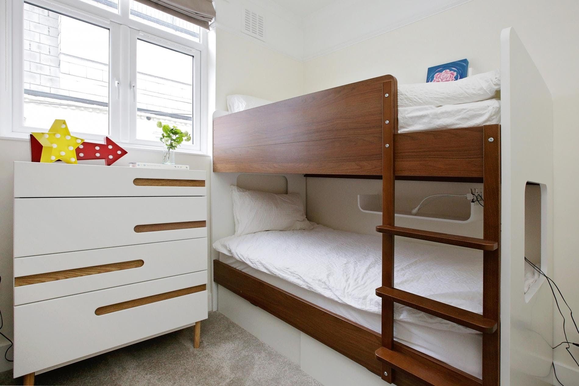 Down a cutesy little mews street, this family-sized home puts you within easy walking distance of Hyde Park and the boutiques and restaurants of stylish Kensington. Despite its central location, the atmosphere is quiet. The kitchen has everything you need for self-catering, plus some extra touches like spices and sauces and a huge, squashy sofa in the living room invites you to relax. The bedroom with two sets of bunk beds (four bunks) may feel a little squished, but it’s got a kids’ sleepover vibe for little ones. The bonus is a wrap-around (unfurnished) balcony looking out over the pretty mews street below.