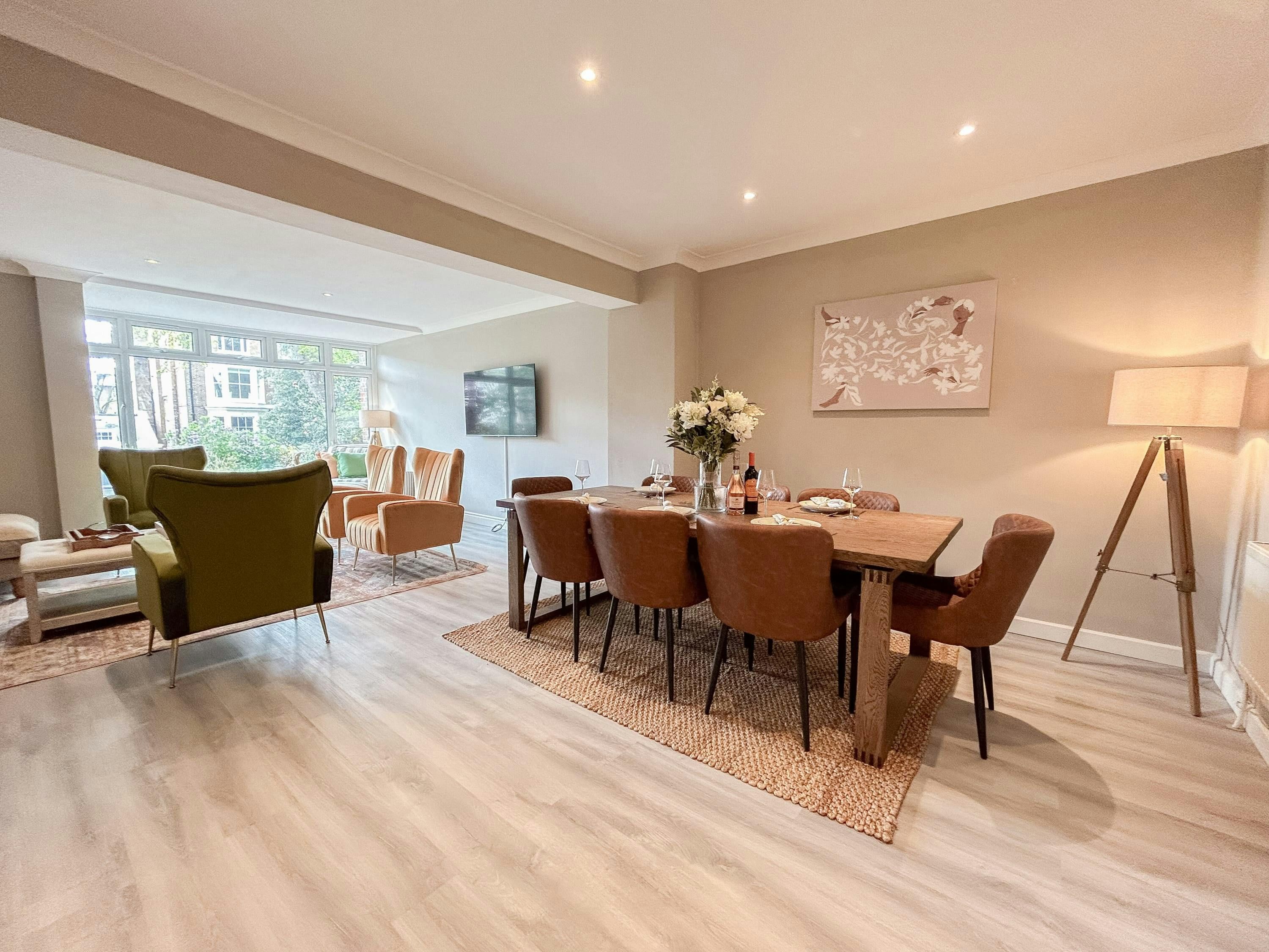 Located in a tranquil neighbourhood moments from Holland Park, this home sets the tone for a refreshing city stay. You can stroll to the local shops, restaurants and cafes as well as the nearest tube station – Barons Court is just a short walk away. Free parking is available and you’ll have access to a private garden – a rare treat in this part of London. Inside, the rooms are well suited to families and groups looking for space to stretch out and socialise. You’ll find the large open-plan living room works perfectly for cosy movie nights or creative work sessions.