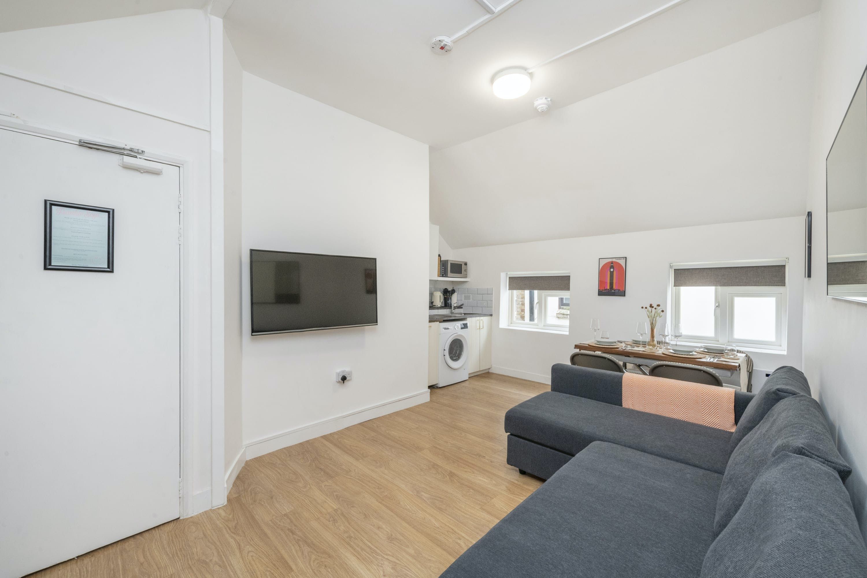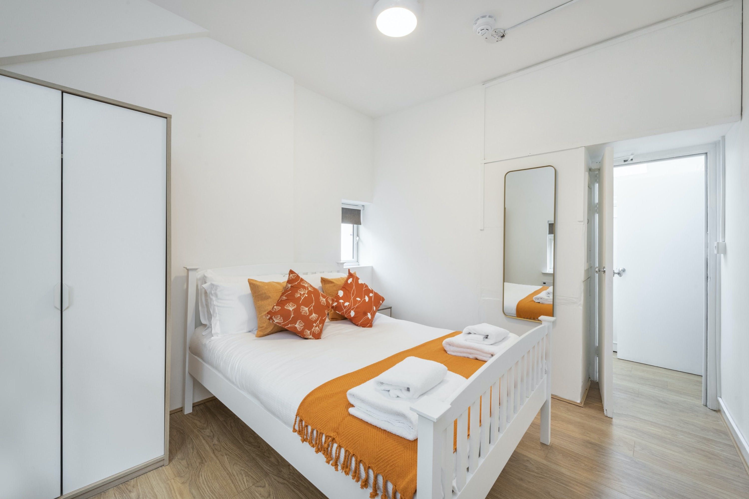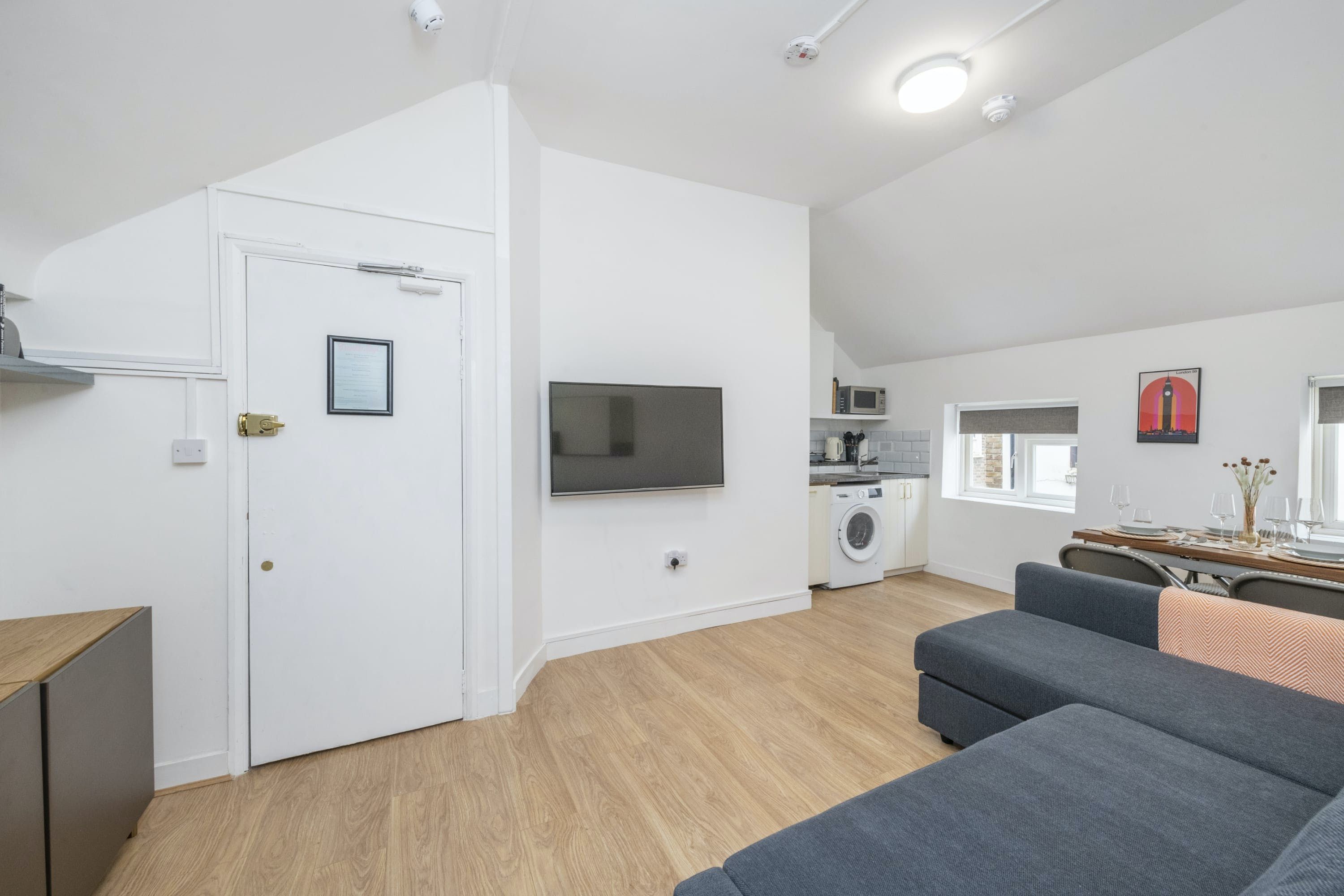 *The entrance to this home is shared with the building's other residents. There are two other apartments in this mews. *Guests three and four would be on a sofa bed in the living room – if you're looking for a home with ample space for socialising, we'd recommend this home for two guests only. *You won't find an oven or hob here – though there is a microwave. We think the kitchen is better suited to prepping lighter bites than large meals. *Given the home's central spot, expect to hear some noise throughout your stay. *There's a Tesco and Lidl nearby.