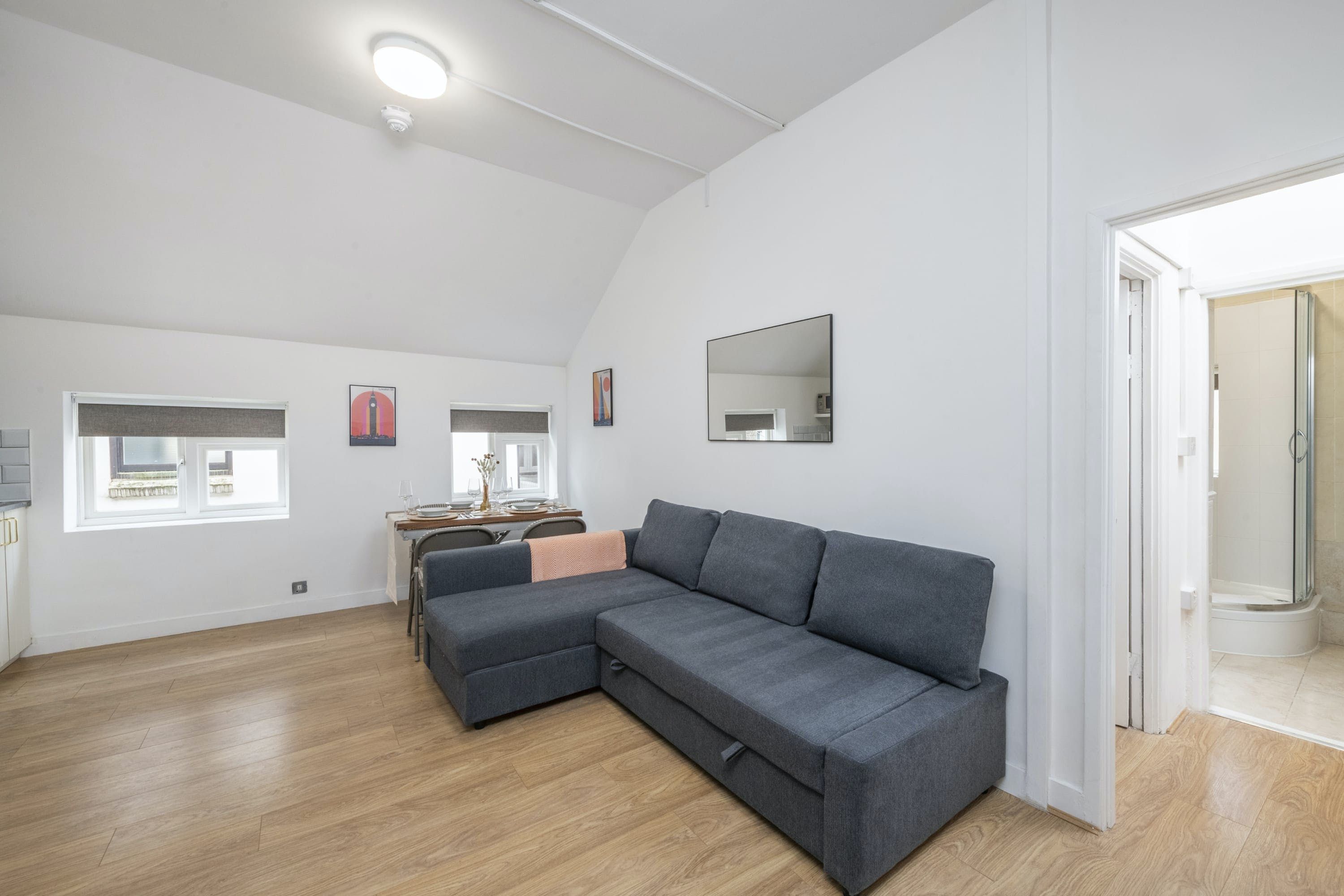 Get a bit of glitz in desirable Fitzrovia, just over a ten-minute walk from Oxford Circus and Oxford Street. It's around the same distance to the University College London Hospitals, while the theatres of the West End, Regent's Park, Trafalgar Square and the British Museum are within walking distance too. Of course, plenty of eateries are also on your doorstep, which is handy, as this home has a kitchenette with no hob or oven, but there's a microwave for preparing lighter bites. At full capacity, two people will be sleeping on a sofa bed, and while this place doesn’t necessarily have a homely feel, it makes for a comfortable stay in a fantastic location.