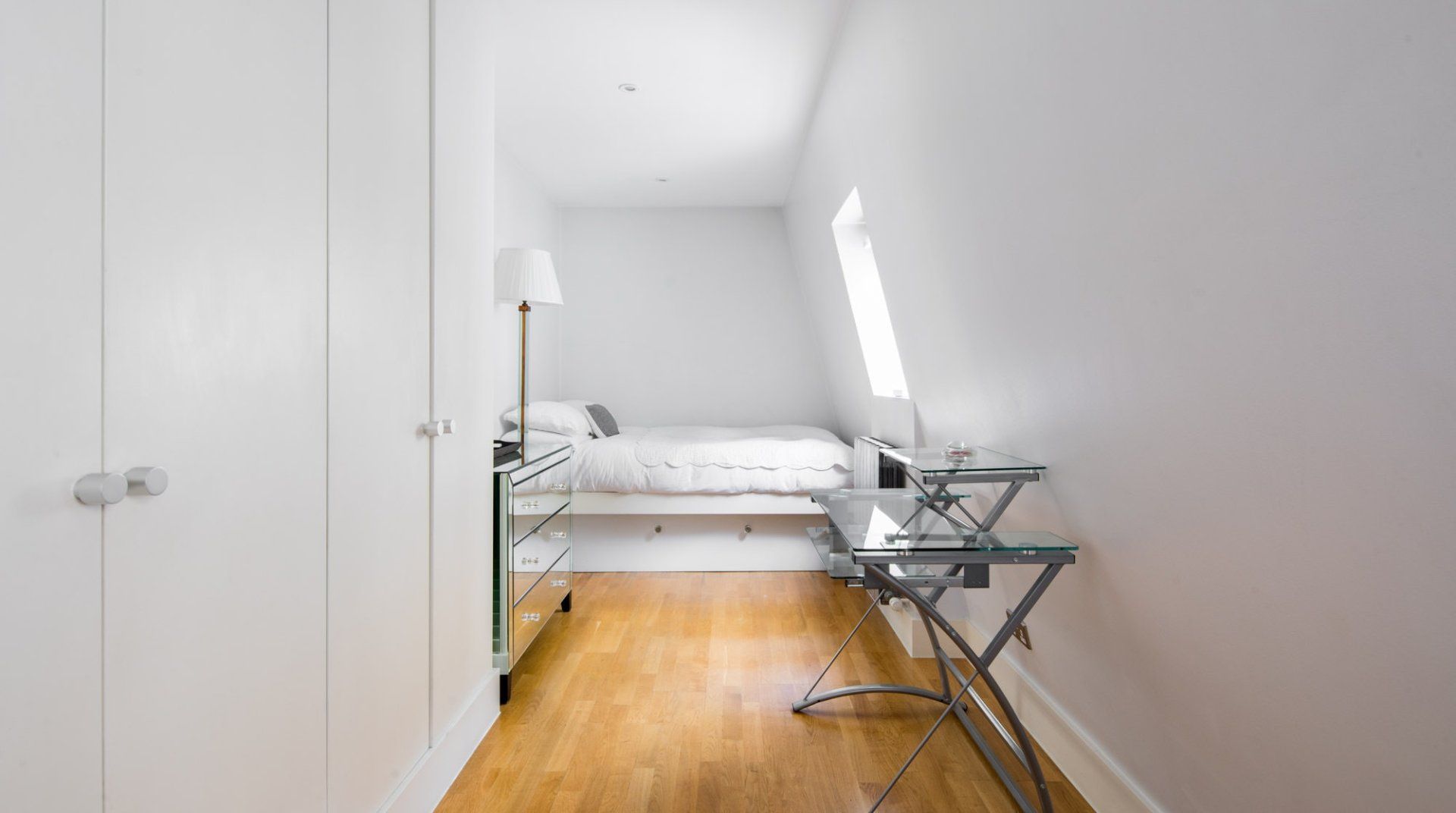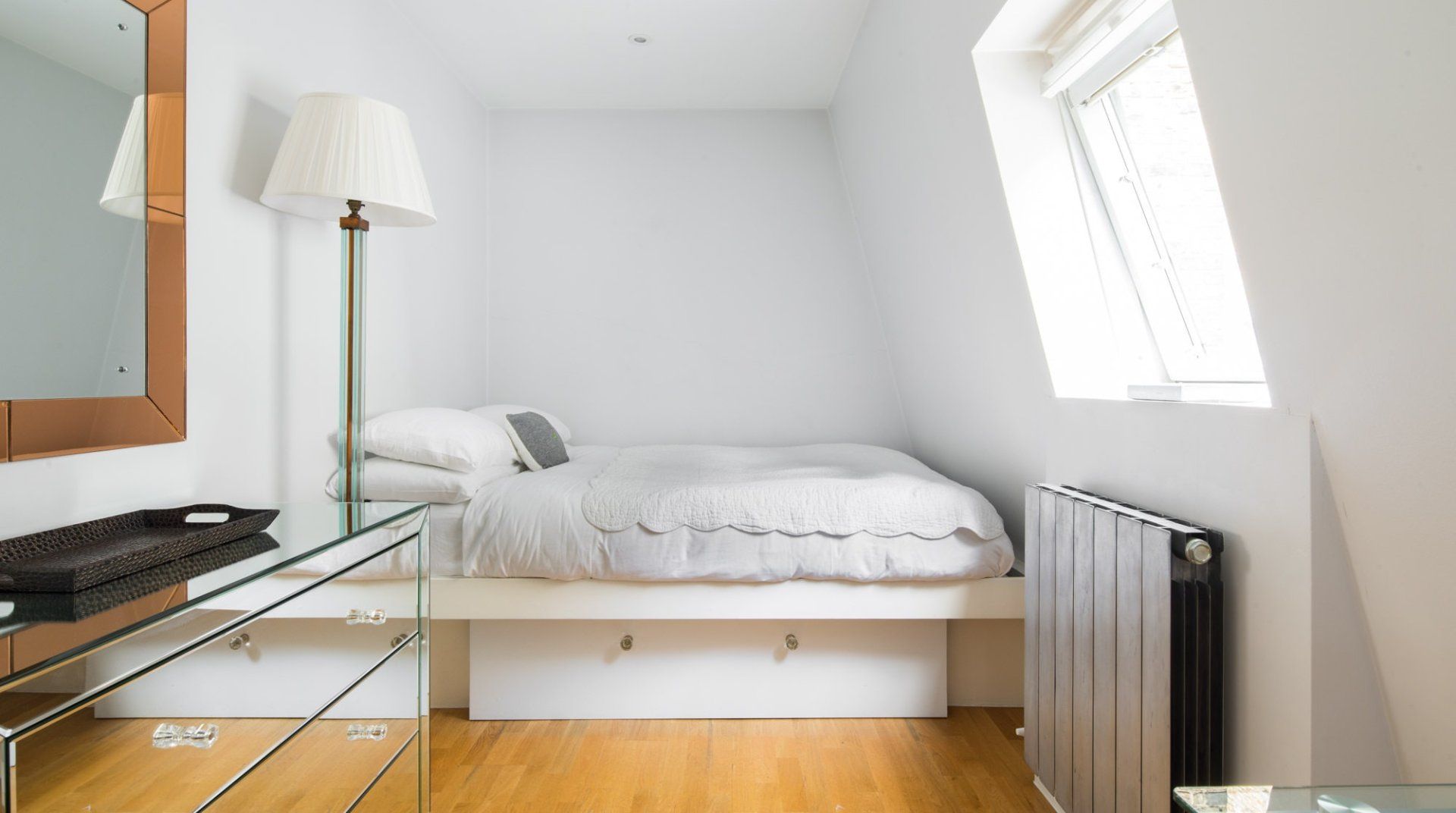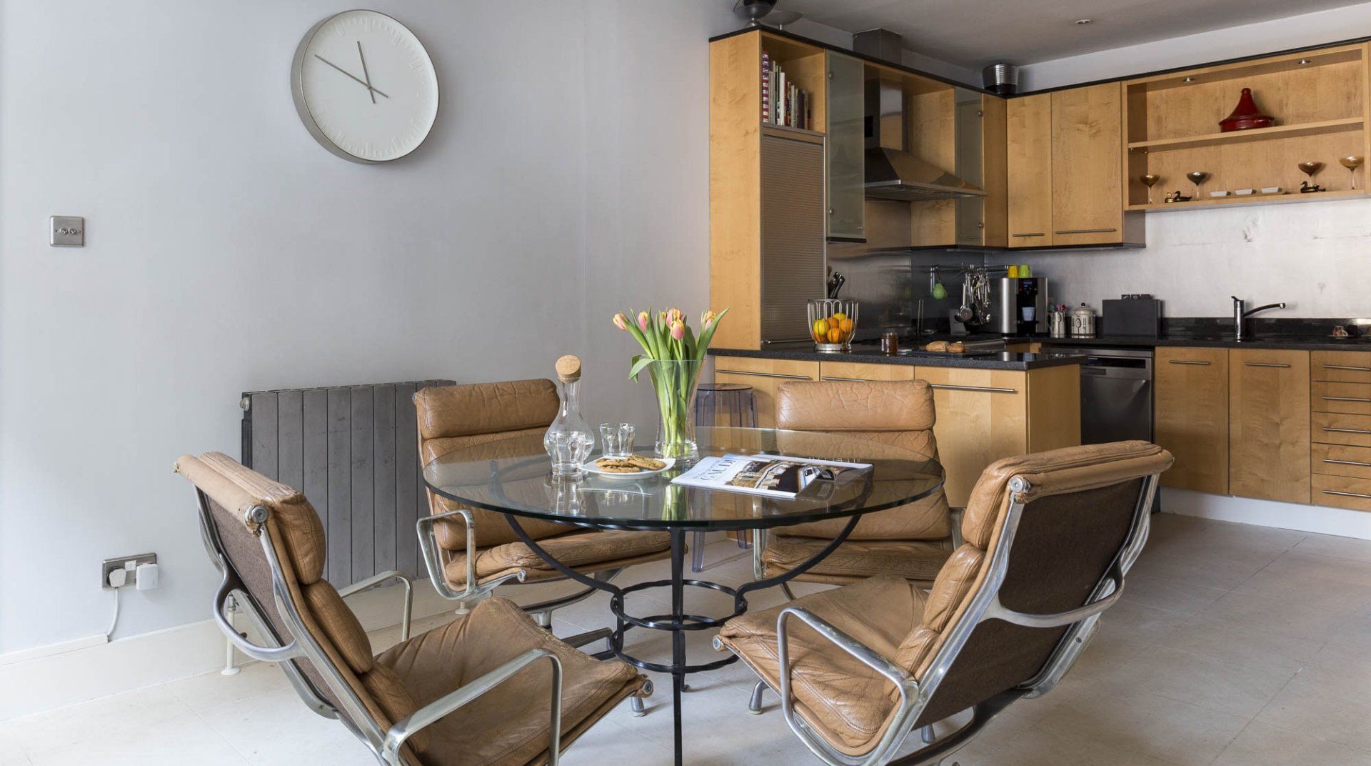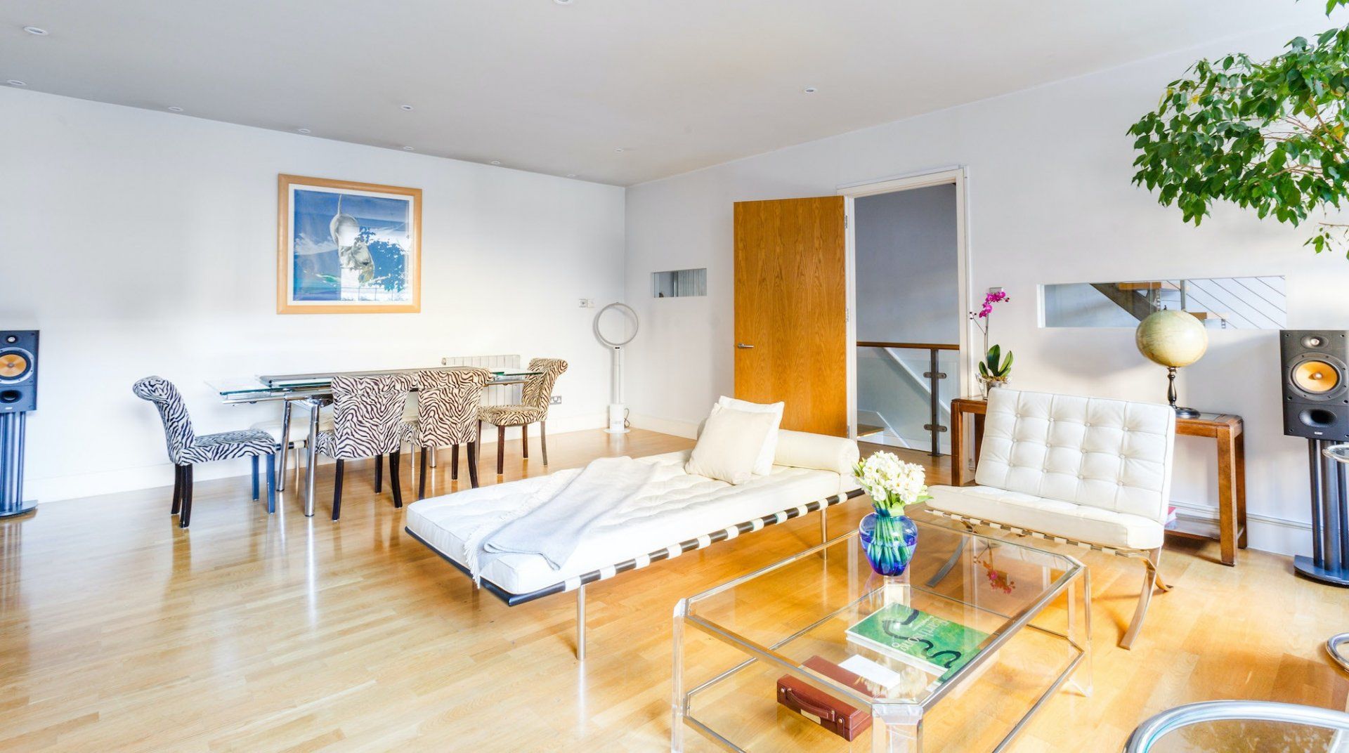 Marked by striking navy frontage, this three-floor mews house is located in villagey Marylebone, between Baker Street and Bond Street Stations. Inside, each storey has its own flavour: the sofa-lined lounge and its hulking houseplant, the striking wood kitchen, and the secluded eaves bedrooms, squirrelled away upstairs. Most impressive is the luxurious amount of space, achieved by an open-plan layout – it's no surprise this house was designed by a renound architect. The dine-in kitchen was made for relaxing meals as four modern transparent chairs surround the glass dining table. Though here you're right in the thick of the chichi shops and trendy restaurants of Marylebone, so you'll probably opt to eat out most nights. Besides, Regent’s Park, Oxford Street and the famous bar and dining scene of Soho are all within sauntering distance too.