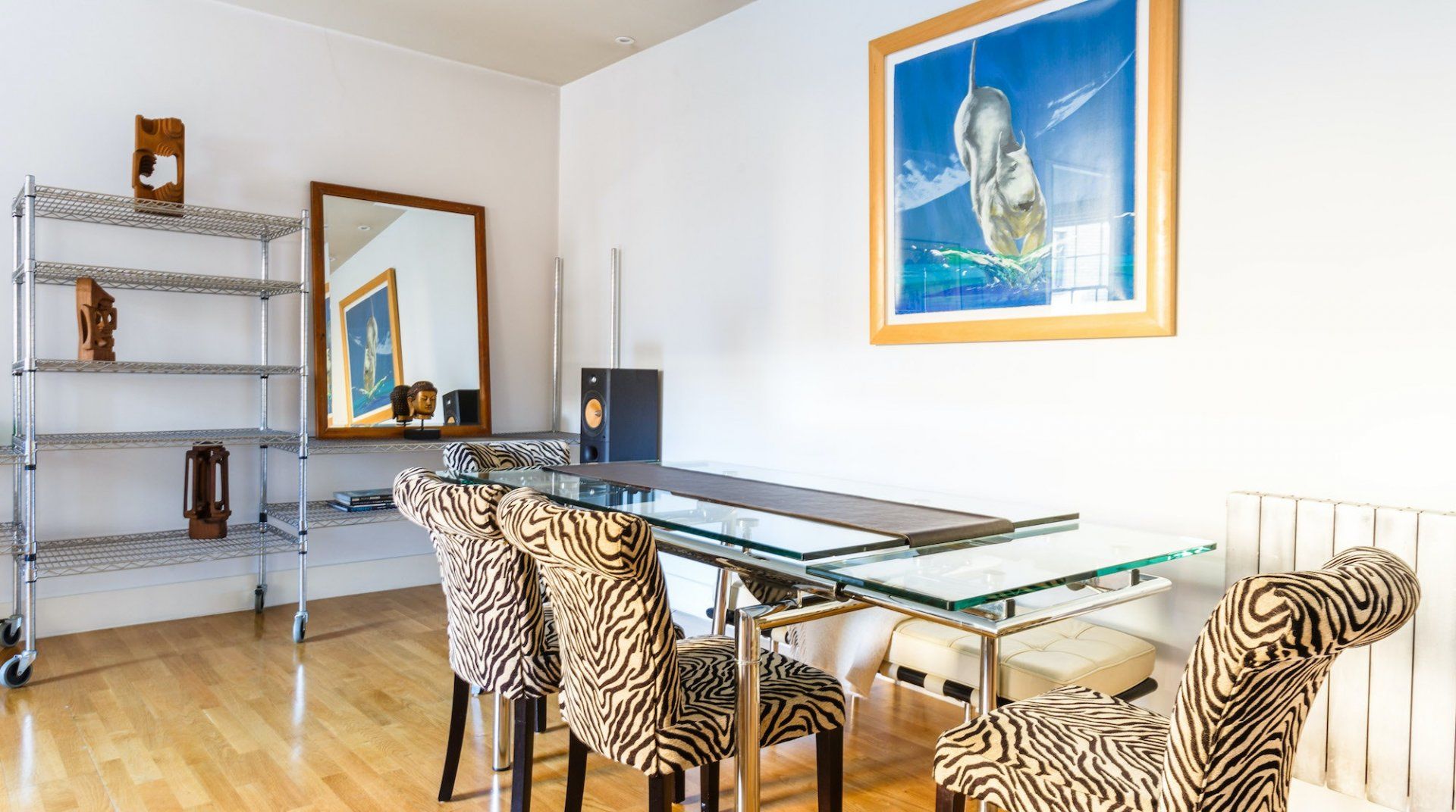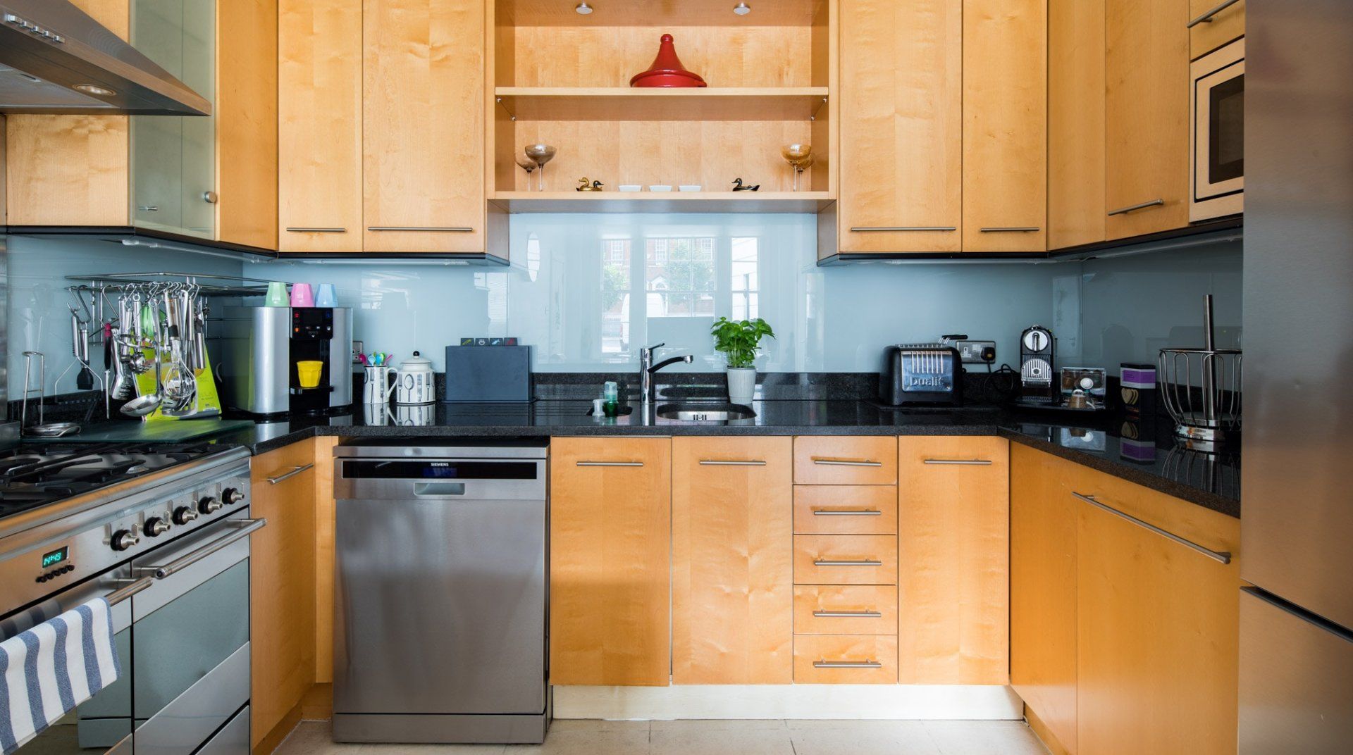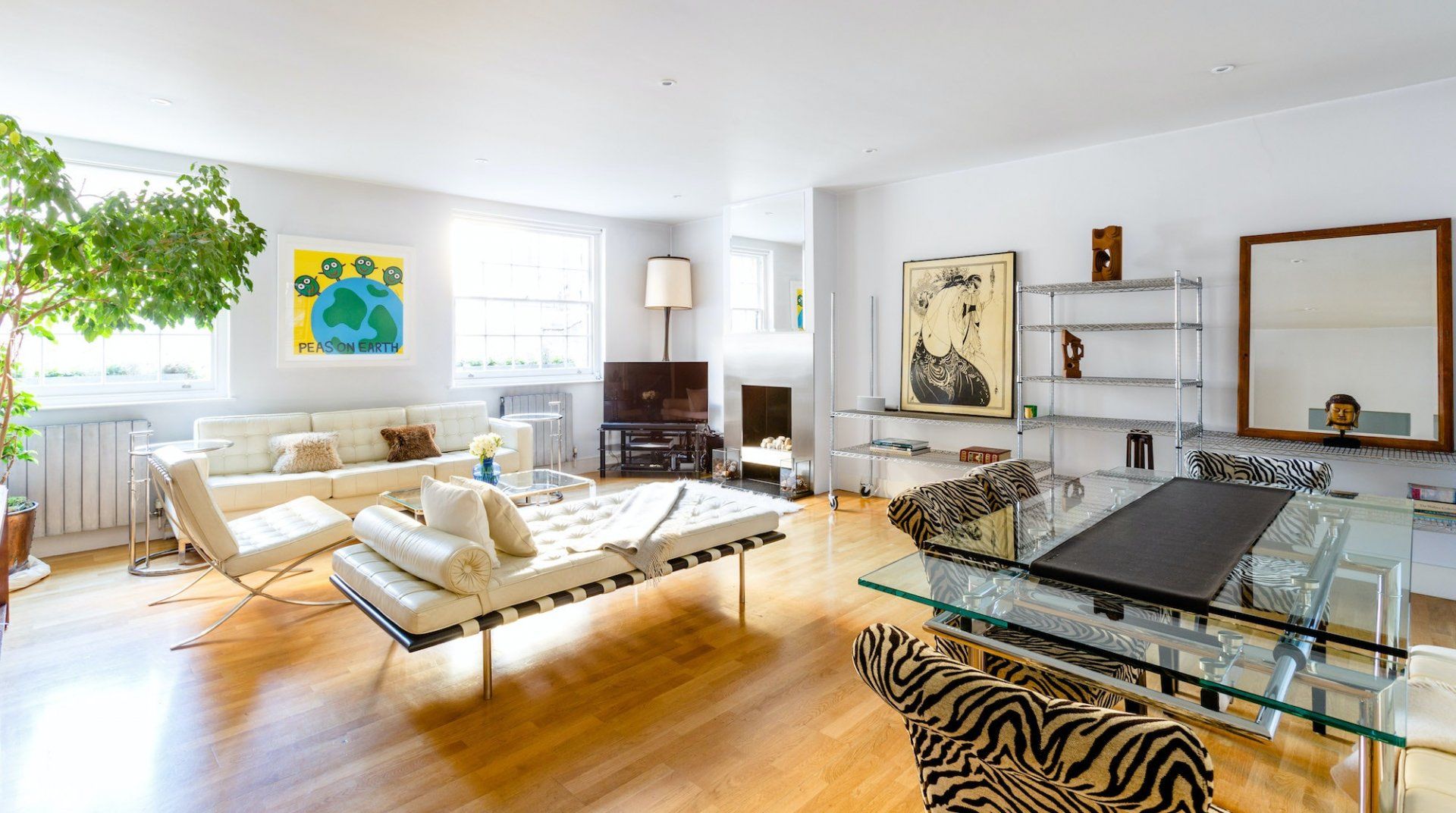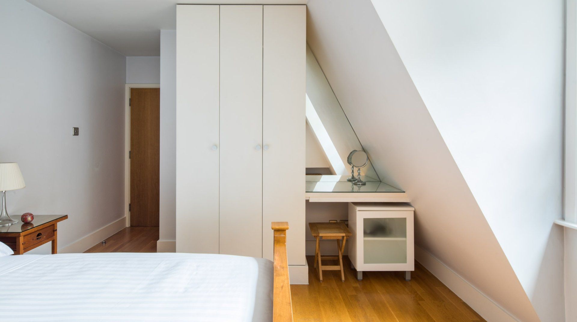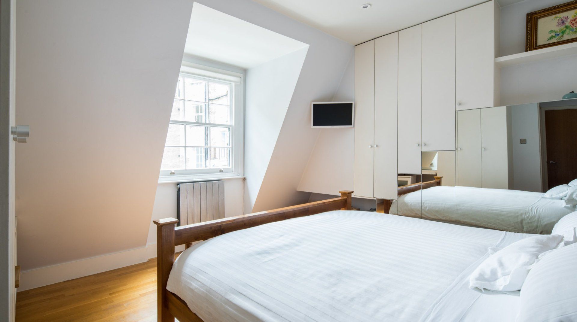 Marked by striking navy frontage, this three-floor mews house is located in villagey Marylebone, between Baker Street and Bond Street Stations. Inside, each storey has its own flavour: the sofa-lined lounge and its hulking houseplant, the striking wood kitchen, and the secluded eaves bedrooms, squirrelled away upstairs. Most impressive is the luxurious amount of space, achieved by an open-plan layout – it's no surprise this house was designed by a renound architect. The dine-in kitchen was made for relaxing meals as four modern transparent chairs surround the glass dining table. Though here you're right in the thick of the chichi shops and trendy restaurants of Marylebone, so you'll probably opt to eat out most nights. Besides, Regent’s Park, Oxford Street and the famous bar and dining scene of Soho are all within sauntering distance too.
