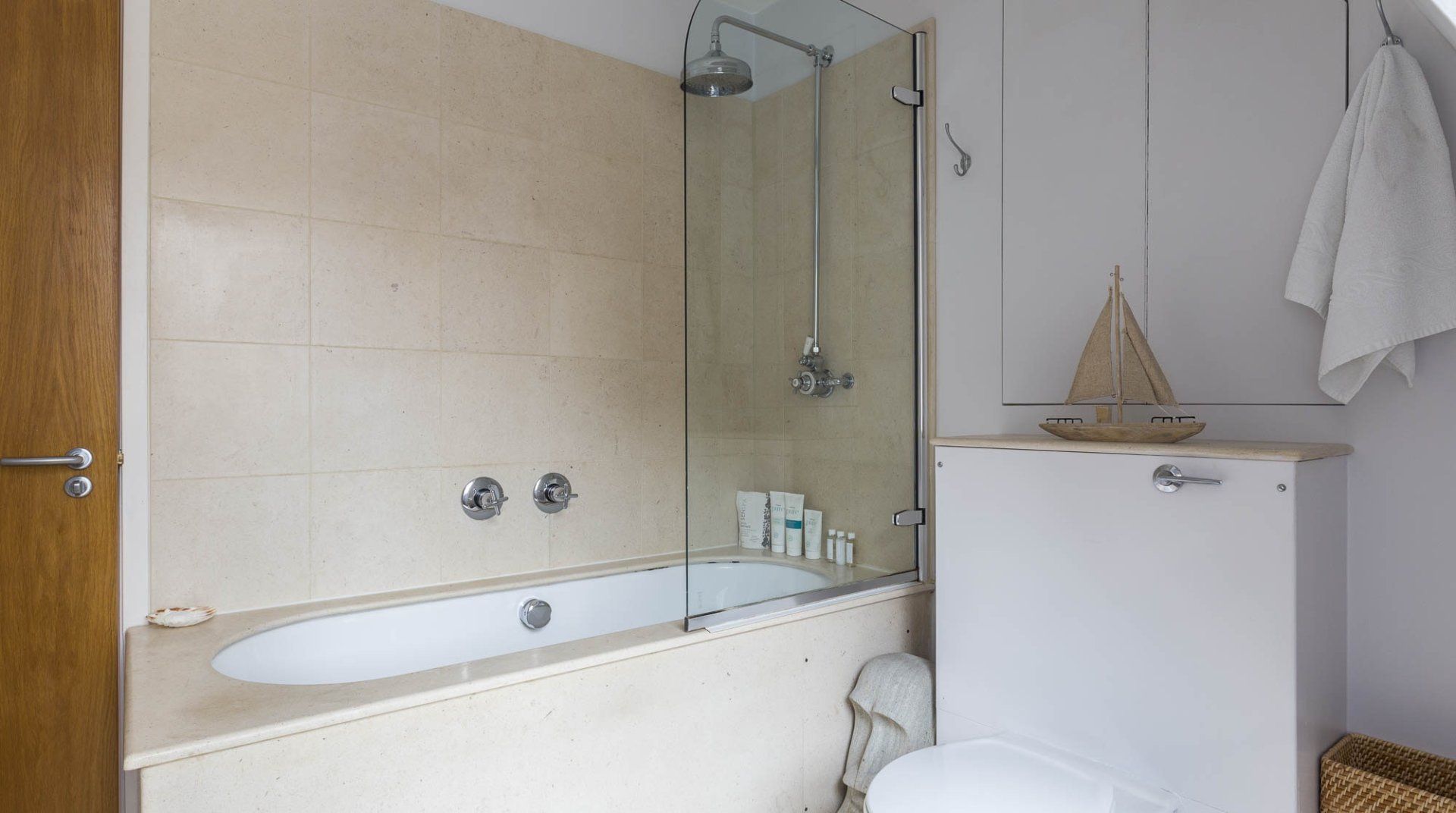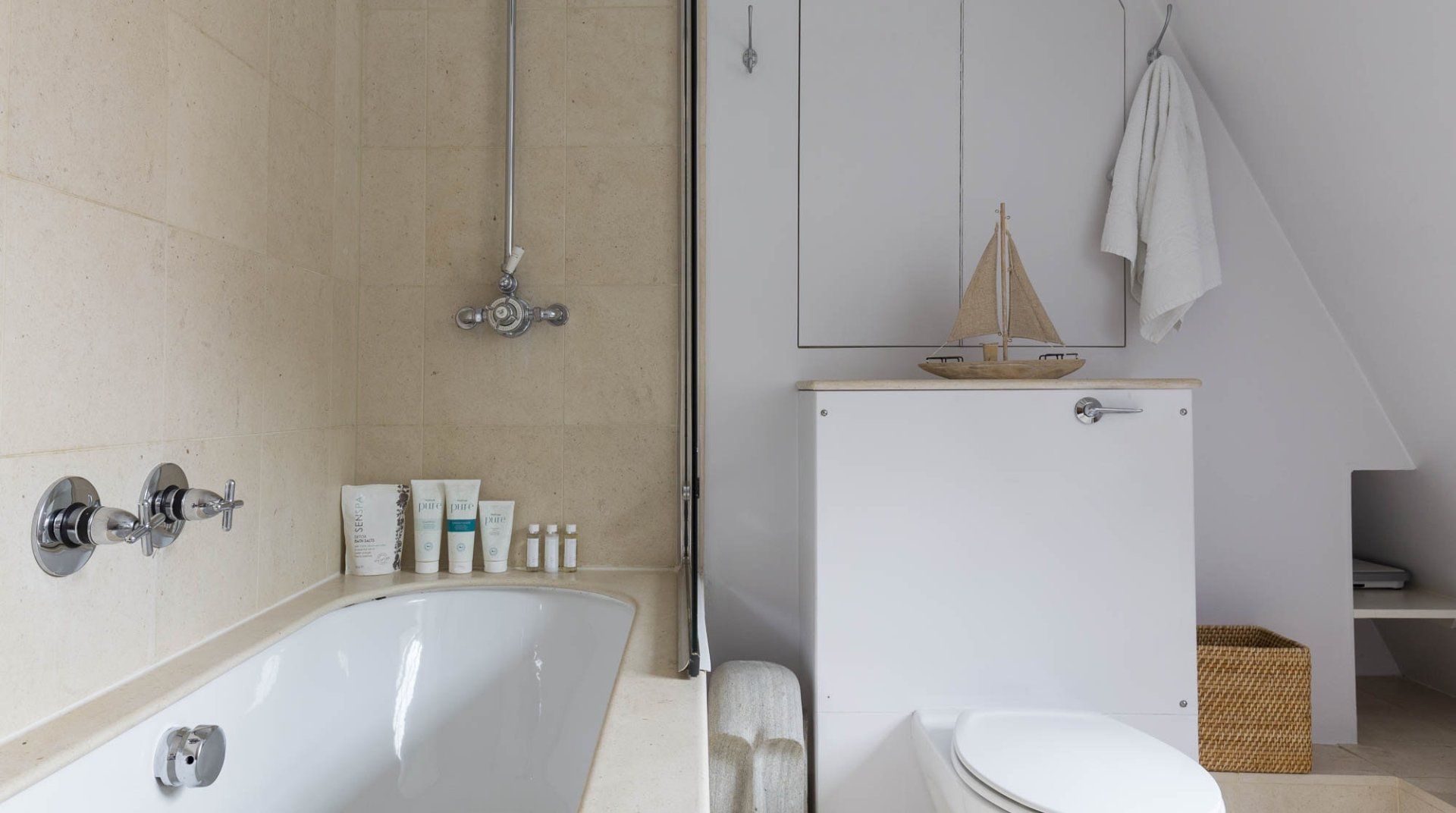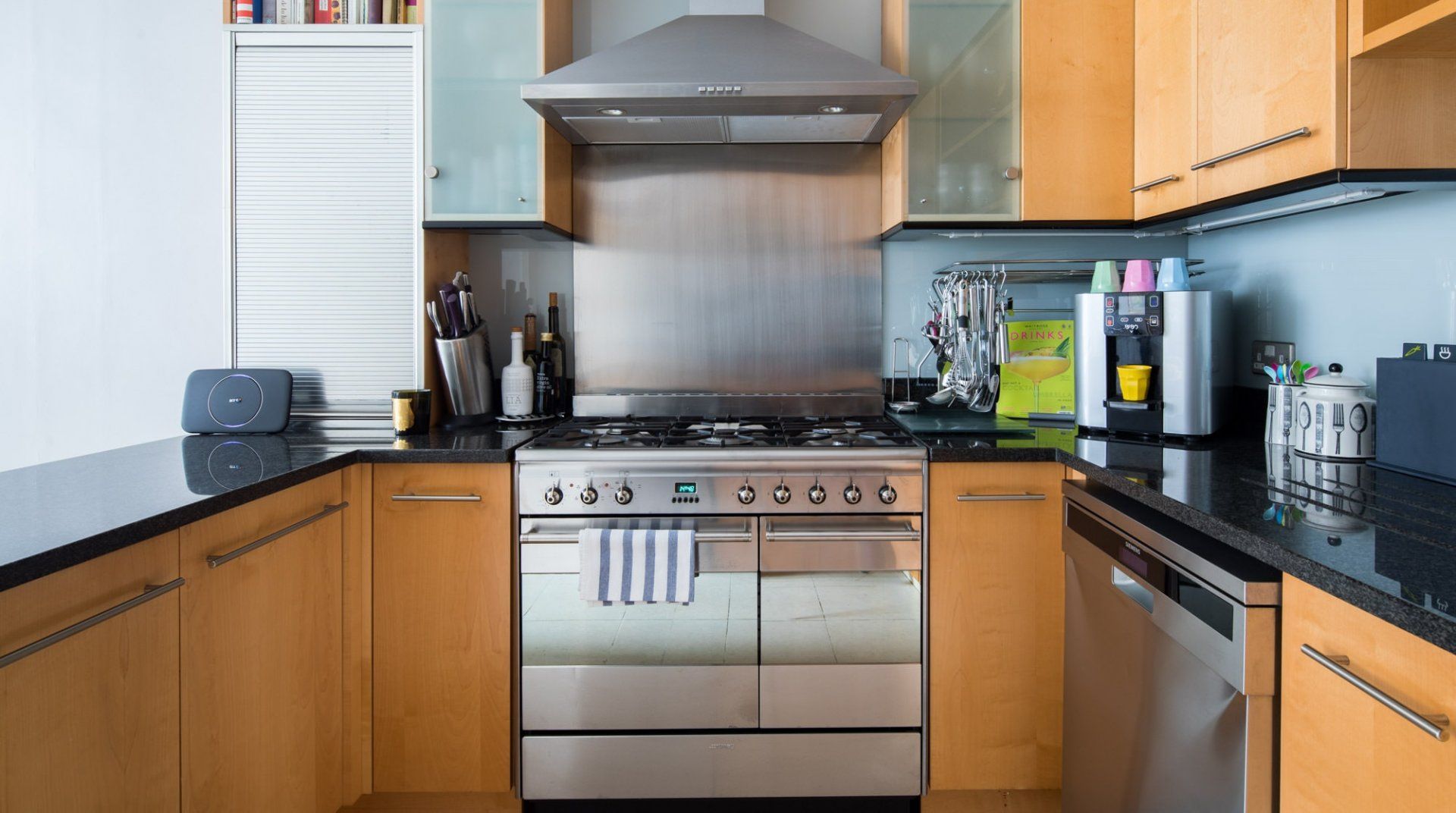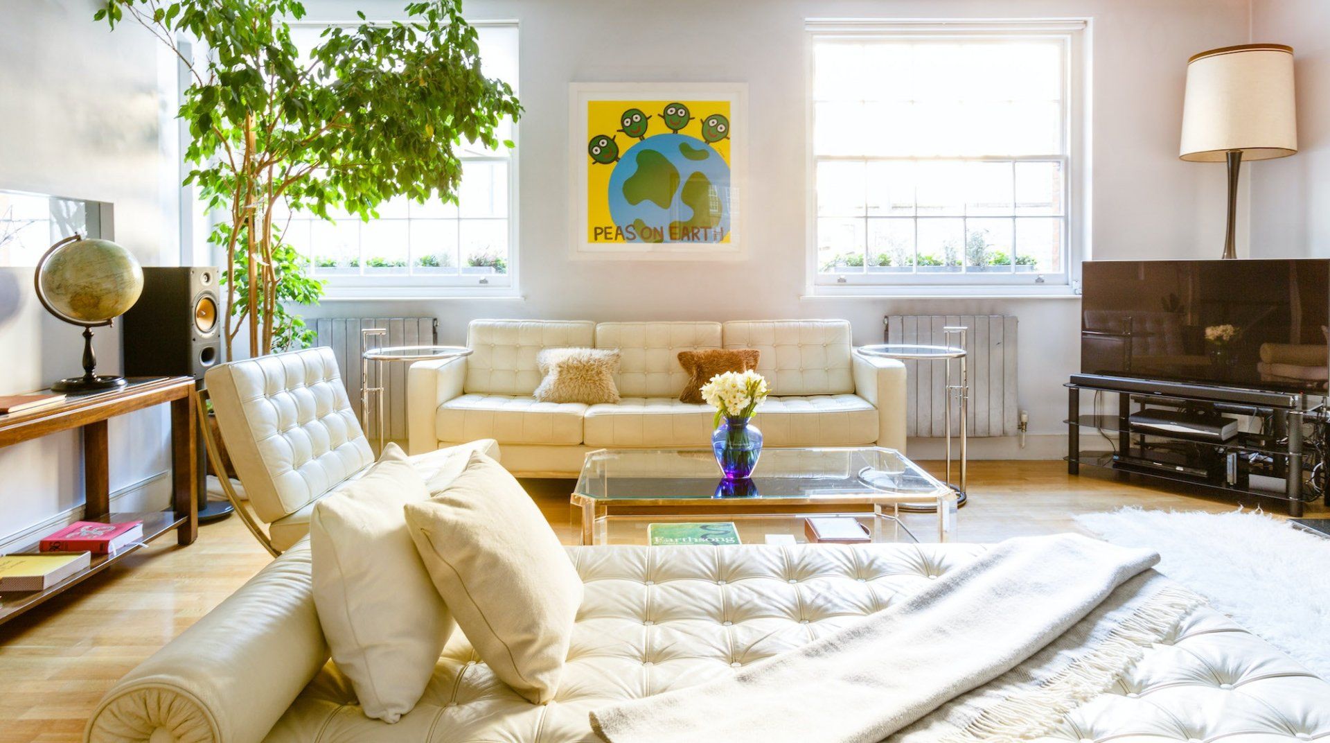 Marked by striking navy frontage, this three-floor mews house is located in villagey Marylebone, between Baker Street and Bond Street Stations. Inside, each storey has its own flavour: the sofa-lined lounge and its hulking houseplant, the striking wood kitchen, and the secluded eaves bedrooms, squirrelled away upstairs. Most impressive is the luxurious amount of space, achieved by an open-plan layout – it's no surprise this house was designed by a renound architect. The dine-in kitchen was made for relaxing meals as four modern transparent chairs surround the glass dining table. Though here you're right in the thick of the chichi shops and trendy restaurants of Marylebone, so you'll probably opt to eat out most nights. Besides, Regent’s Park, Oxford Street and the famous bar and dining scene of Soho are all within sauntering distance too.