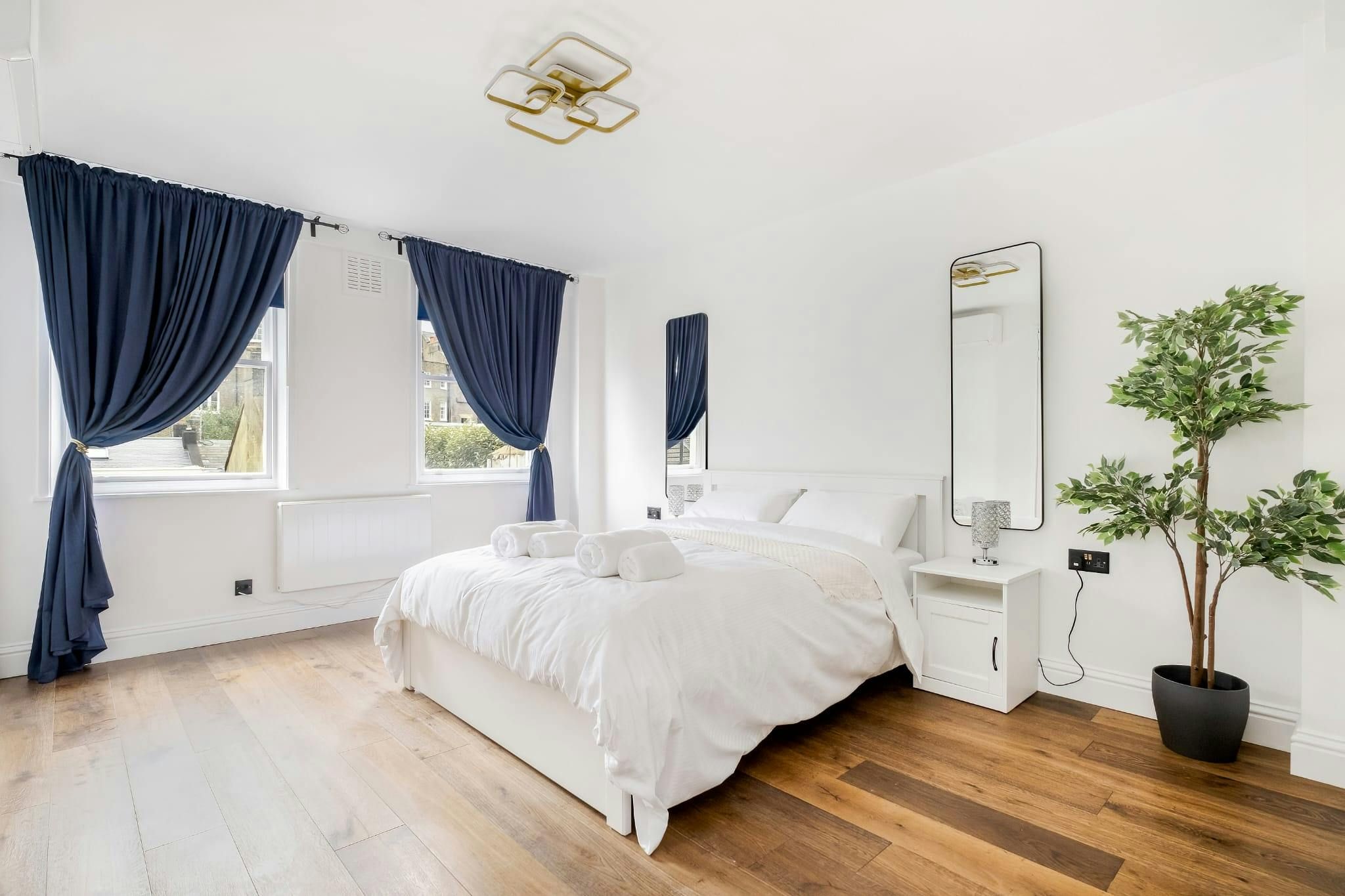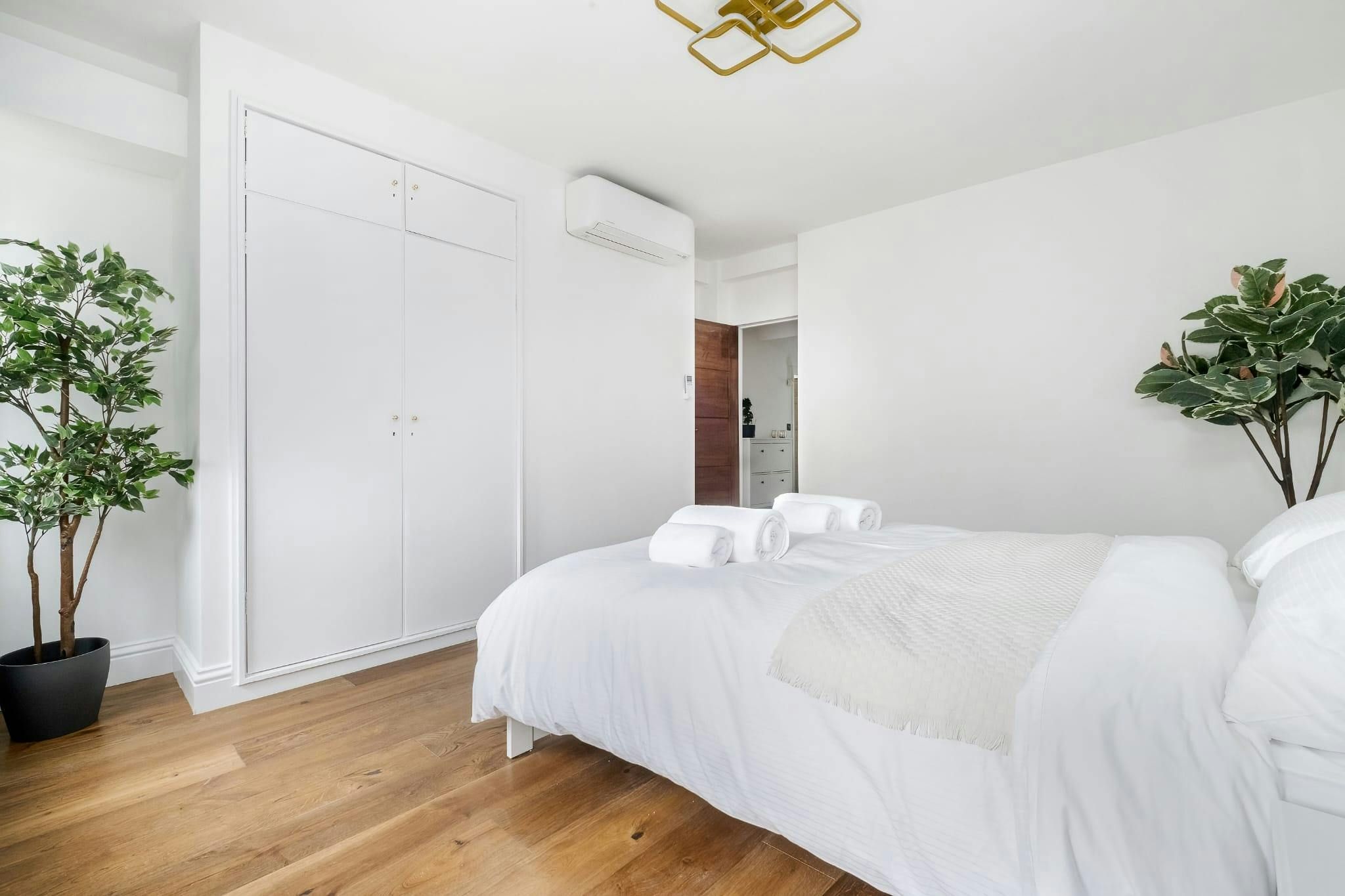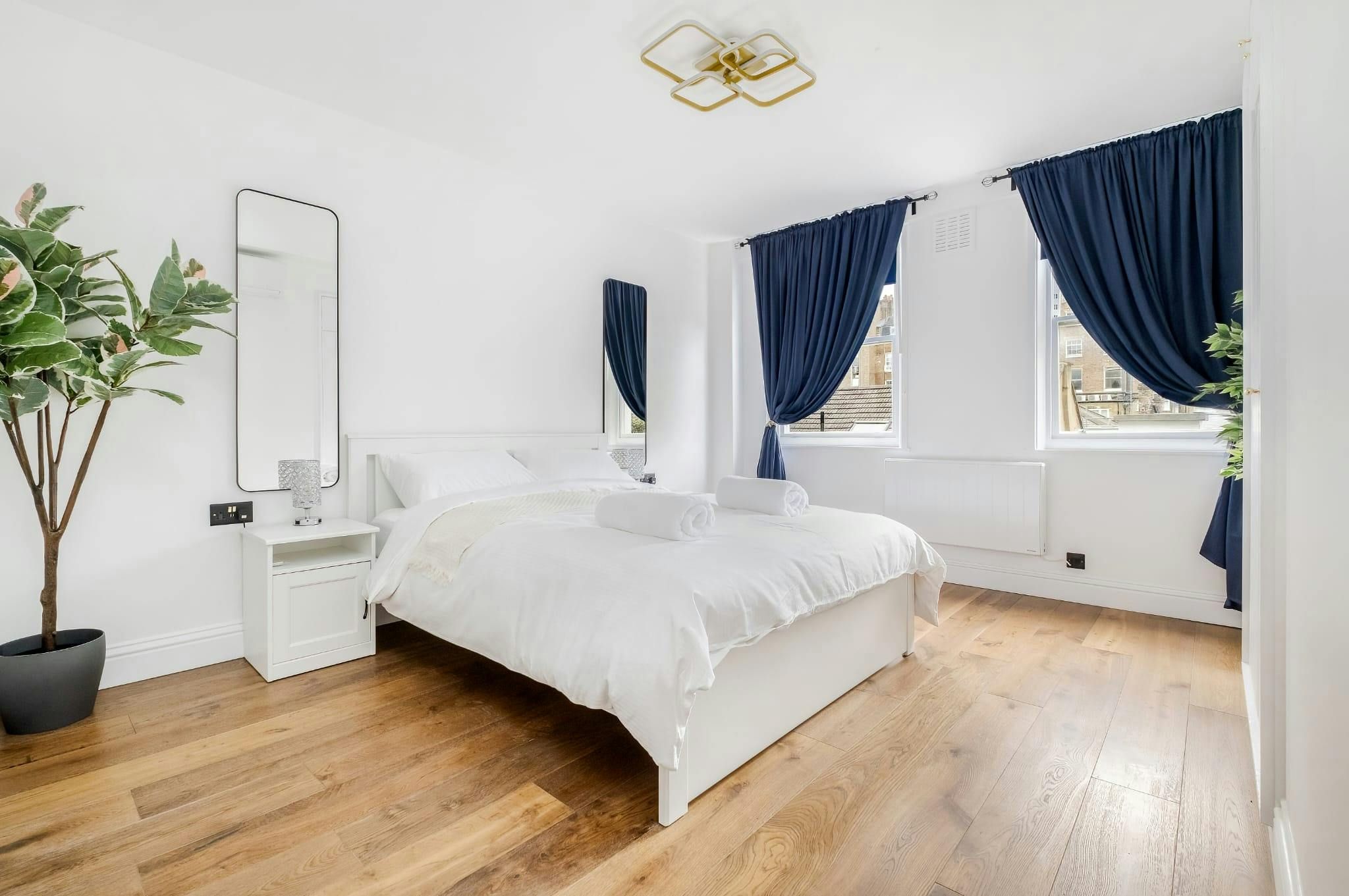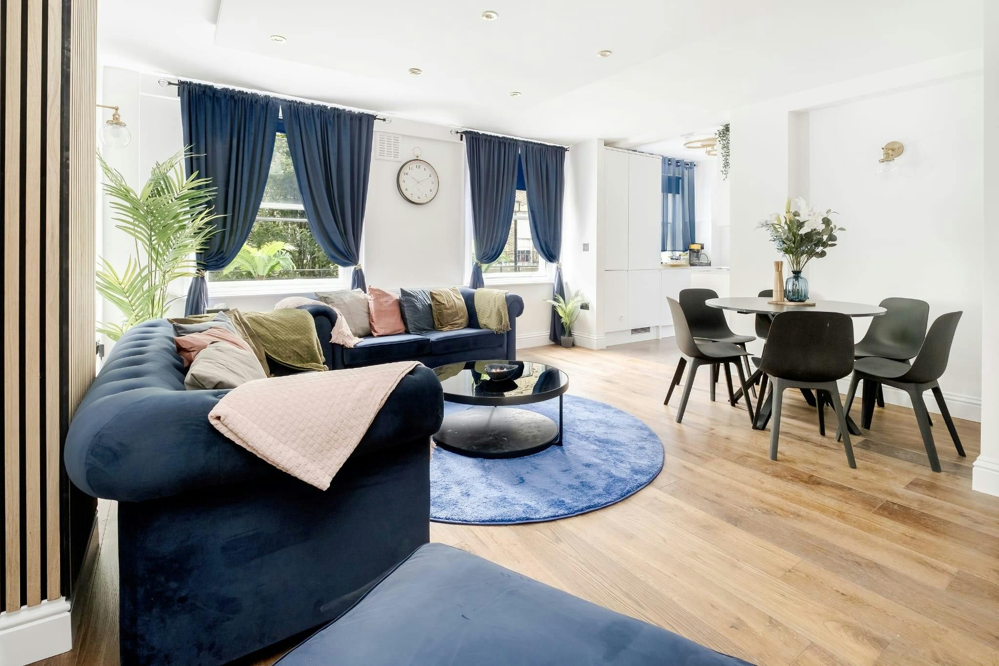 This modern apartment is a great base in London. It’s located in Marylebone Village, just a five-minute walk from Marylebone High Street and four minutes from pretty Regent’s Park. There are plenty of restaurants, cafes, and pubs nearby, and you’ll have four tube stations in the vicinity. The apartment is luxurious and chic, with high-end furnishings and a bright open-concept layout. Two guests can be accommodated on sofa beds in the living space.