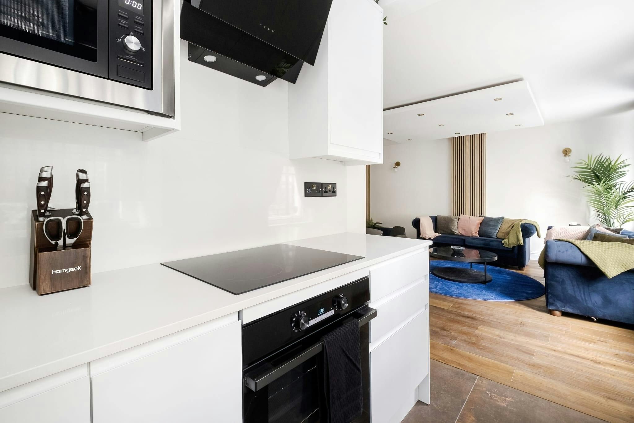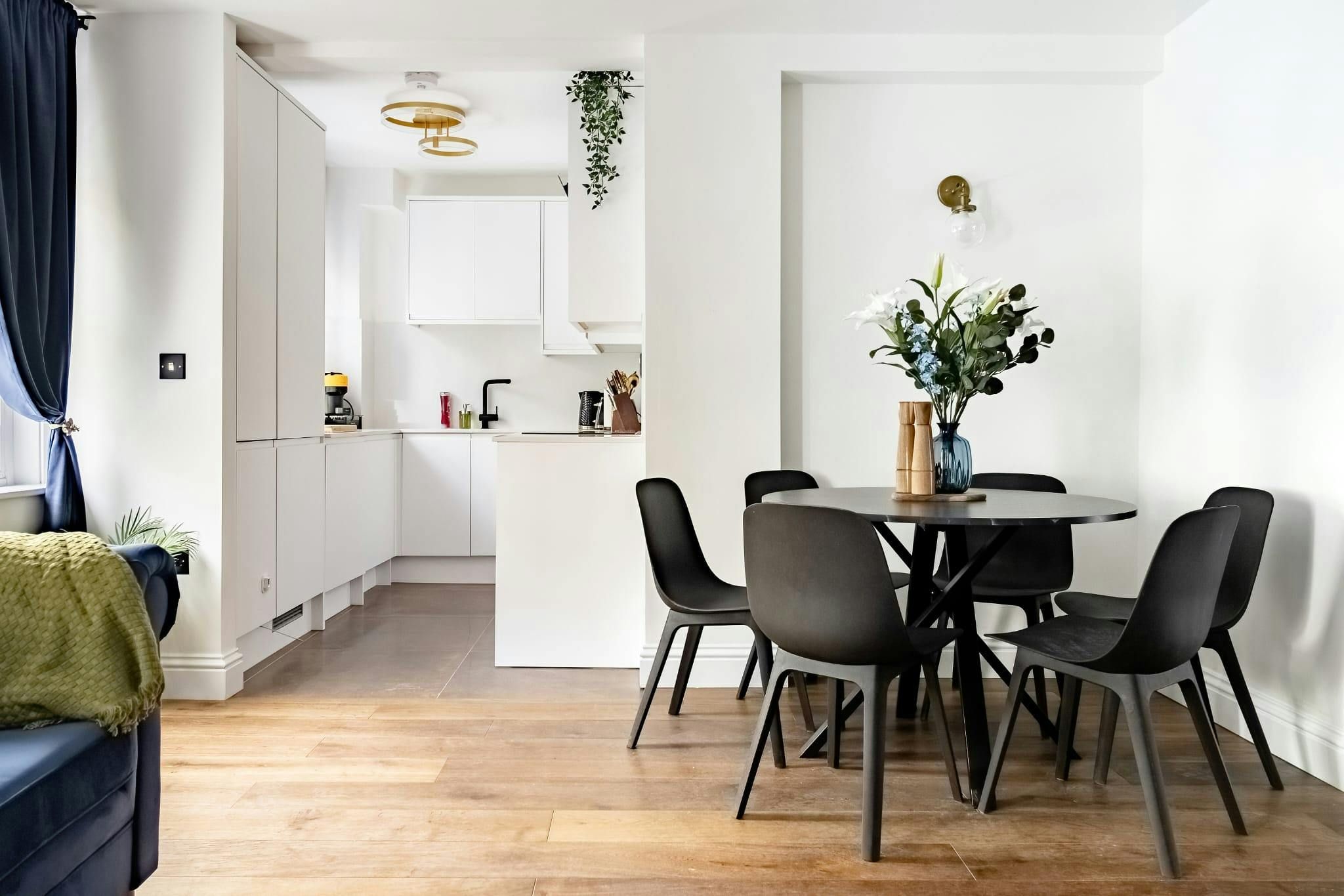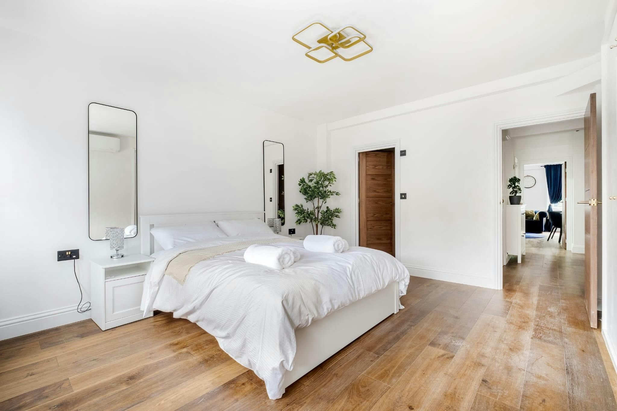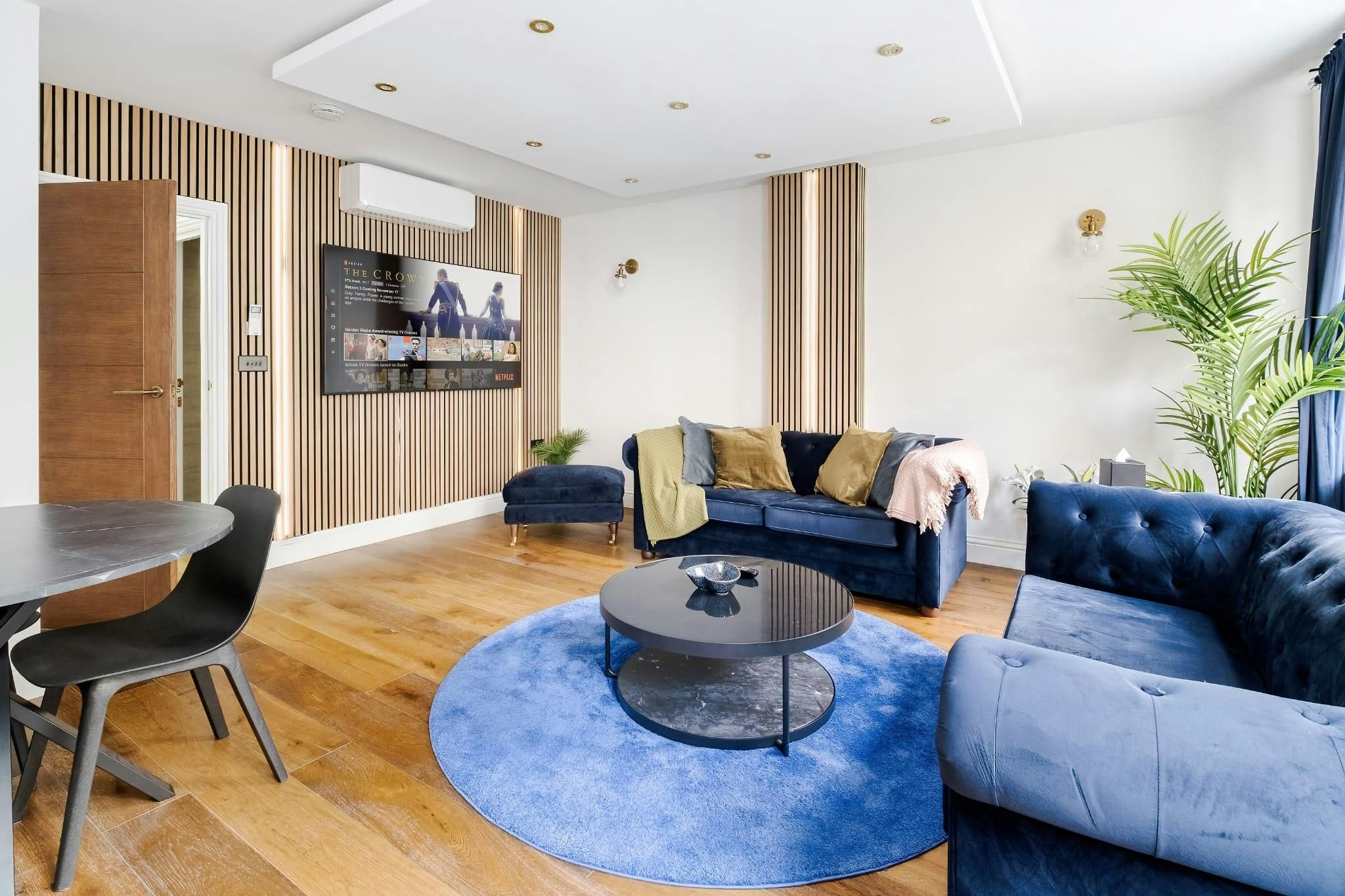 This modern apartment is a great base in London. It’s located in Marylebone Village, just a five-minute walk from Marylebone High Street and four minutes from pretty Regent’s Park. There are plenty of restaurants, cafes, and pubs nearby, and you’ll have four tube stations in the vicinity. The apartment is luxurious and chic, with high-end furnishings and a bright open-concept layout. Two guests can be accommodated on sofa beds in the living space.