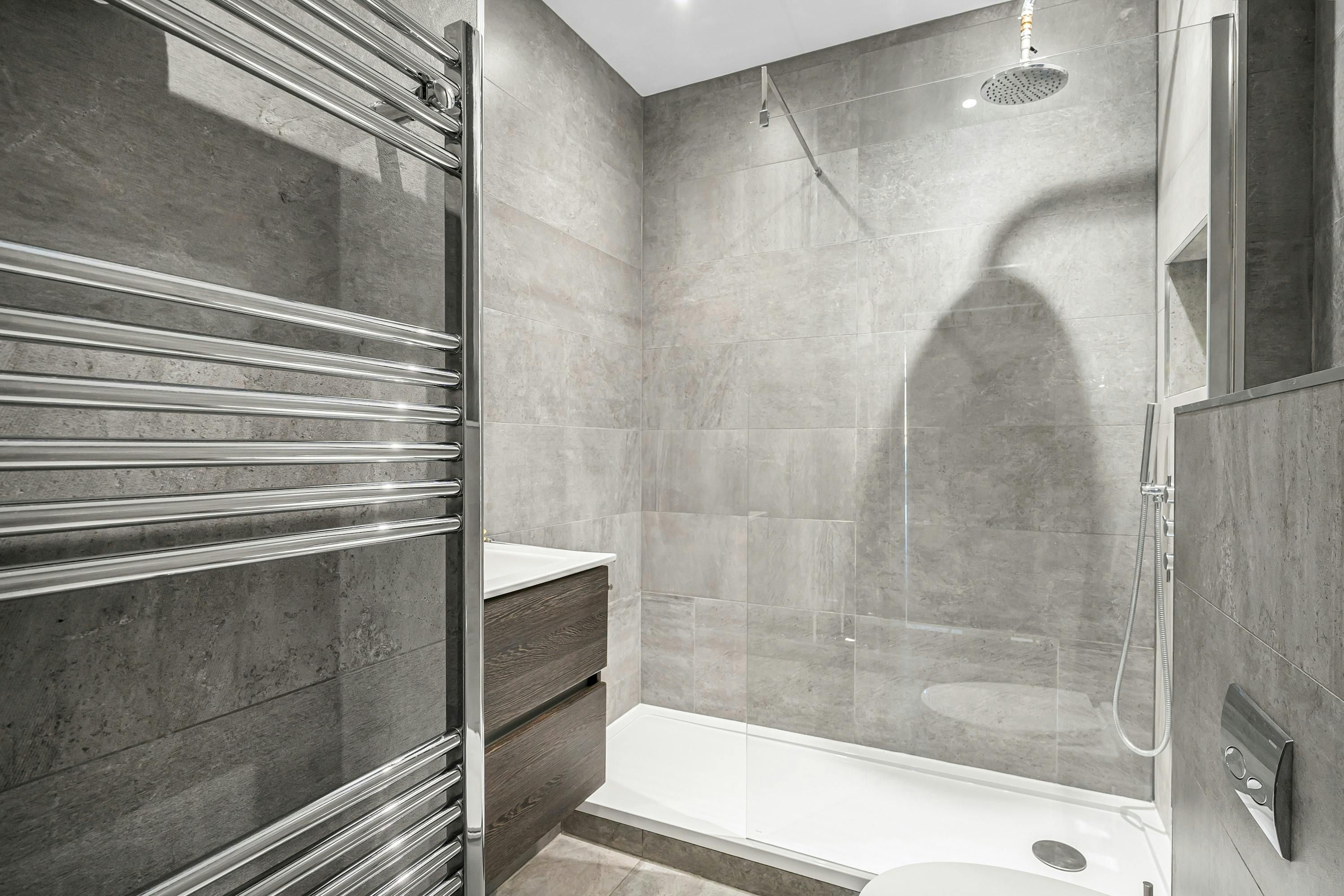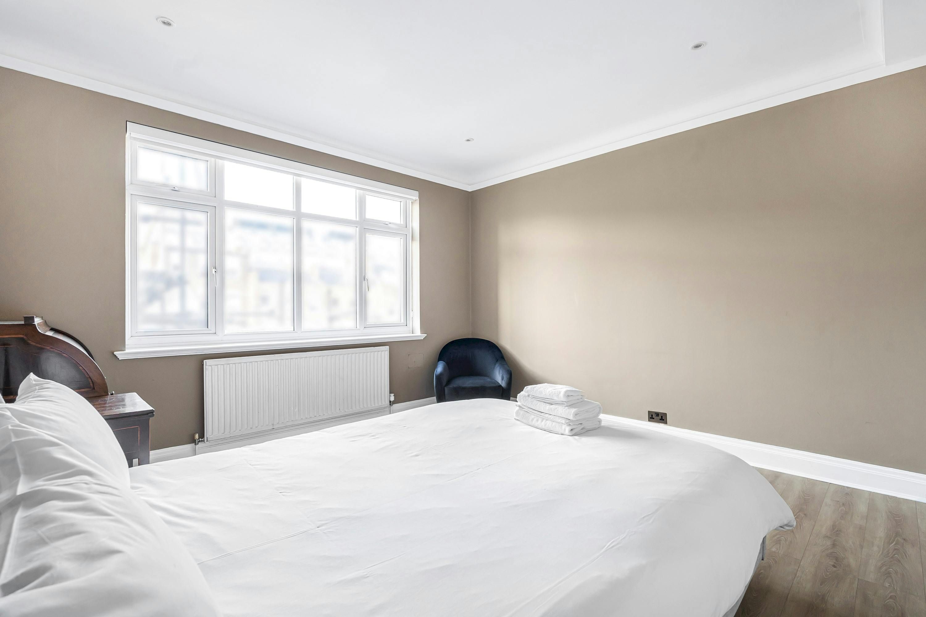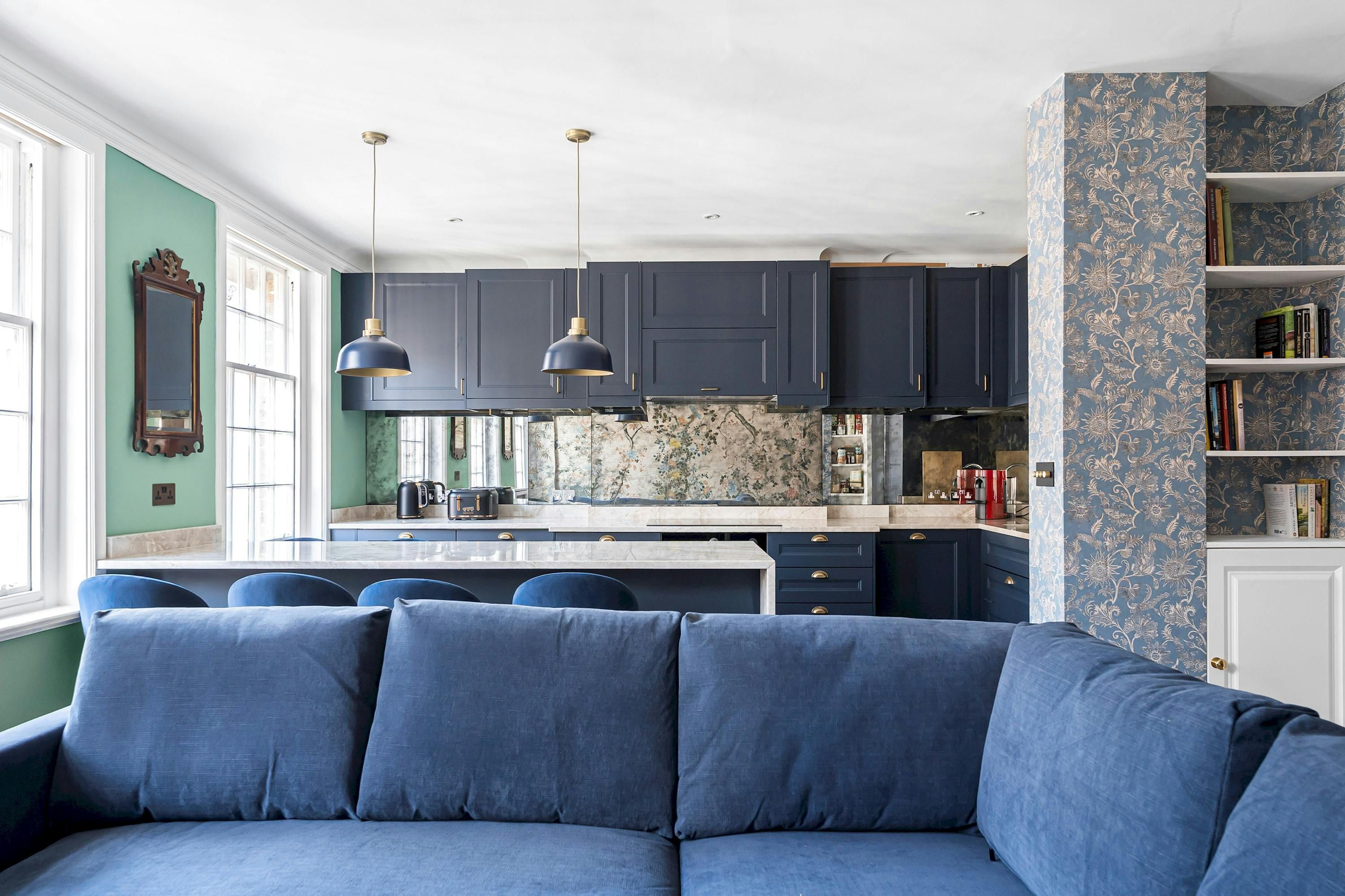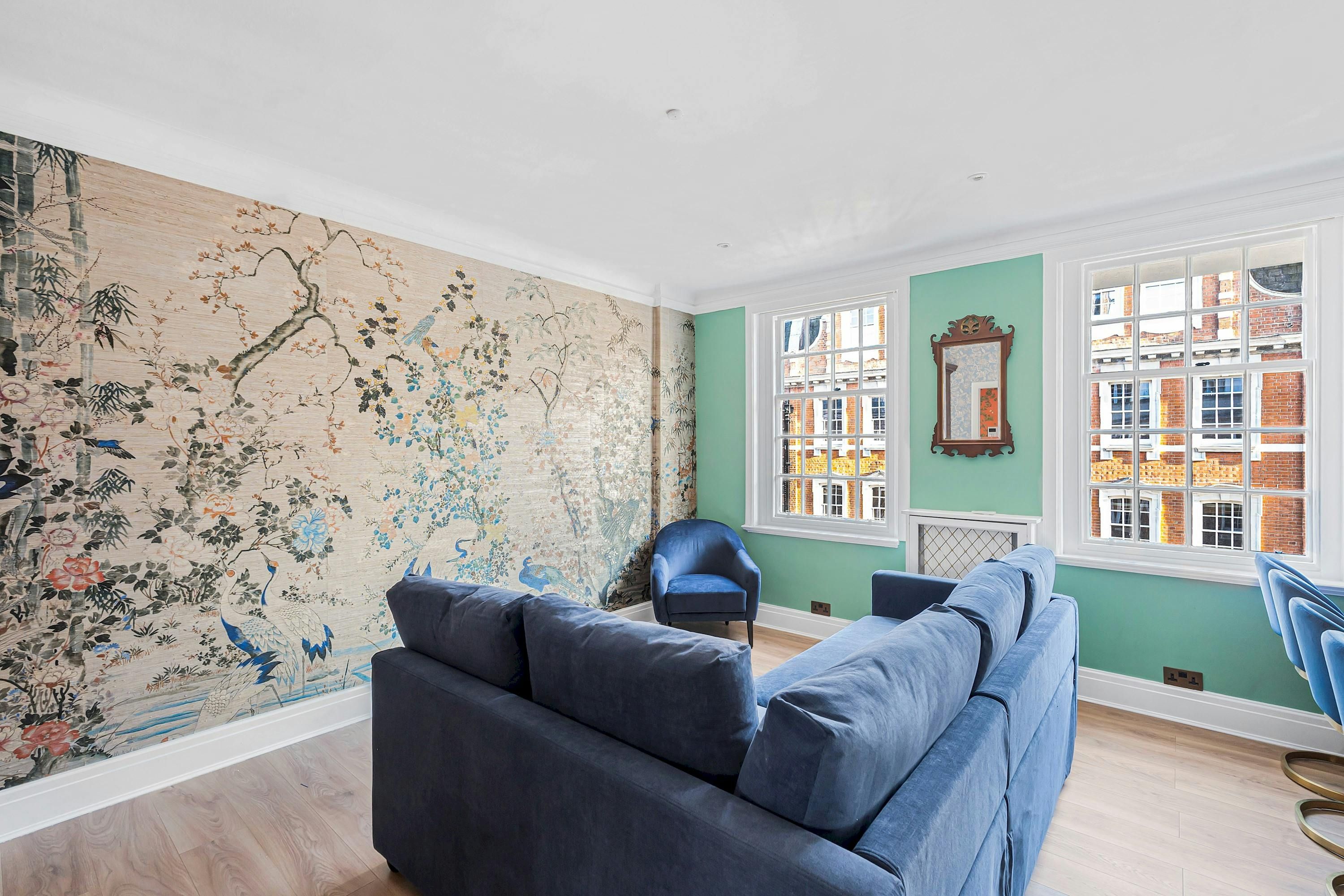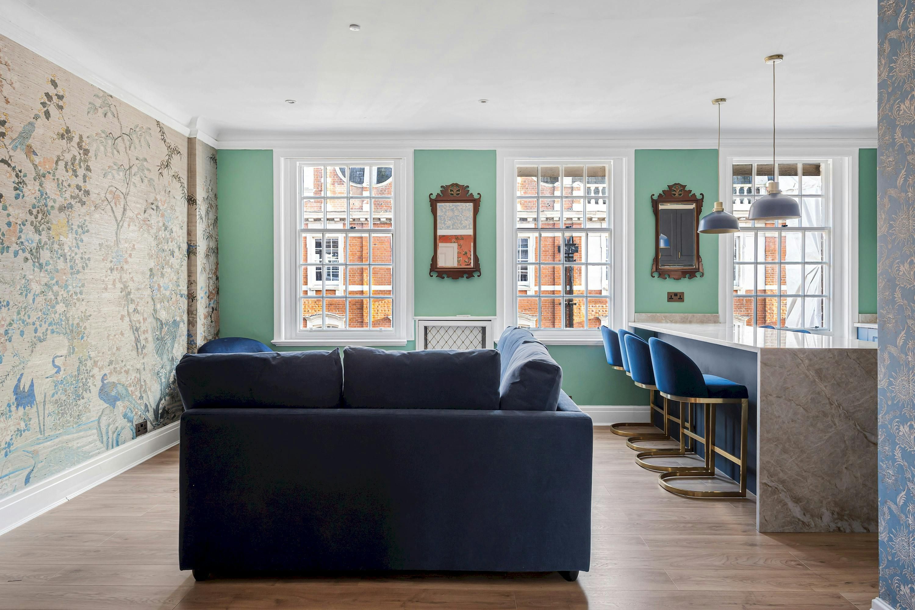 A Marylebone postcode will suit those seeking a central location close to London’s iconic cultural institutions, parks and shopping streets. This third-floor walk-up is elegant and comfortable, with a modern kitchen for whipping up meals and bar seats along the island for evening drinks. The hidden en-suite bathroom is a nice touch, too. From here, you can browse Marylebone’s boutiques, dine in Soho and visit Mayfair’s galleries, while Bond Street Underground station is a five-minute walk away for explorations further across the city.