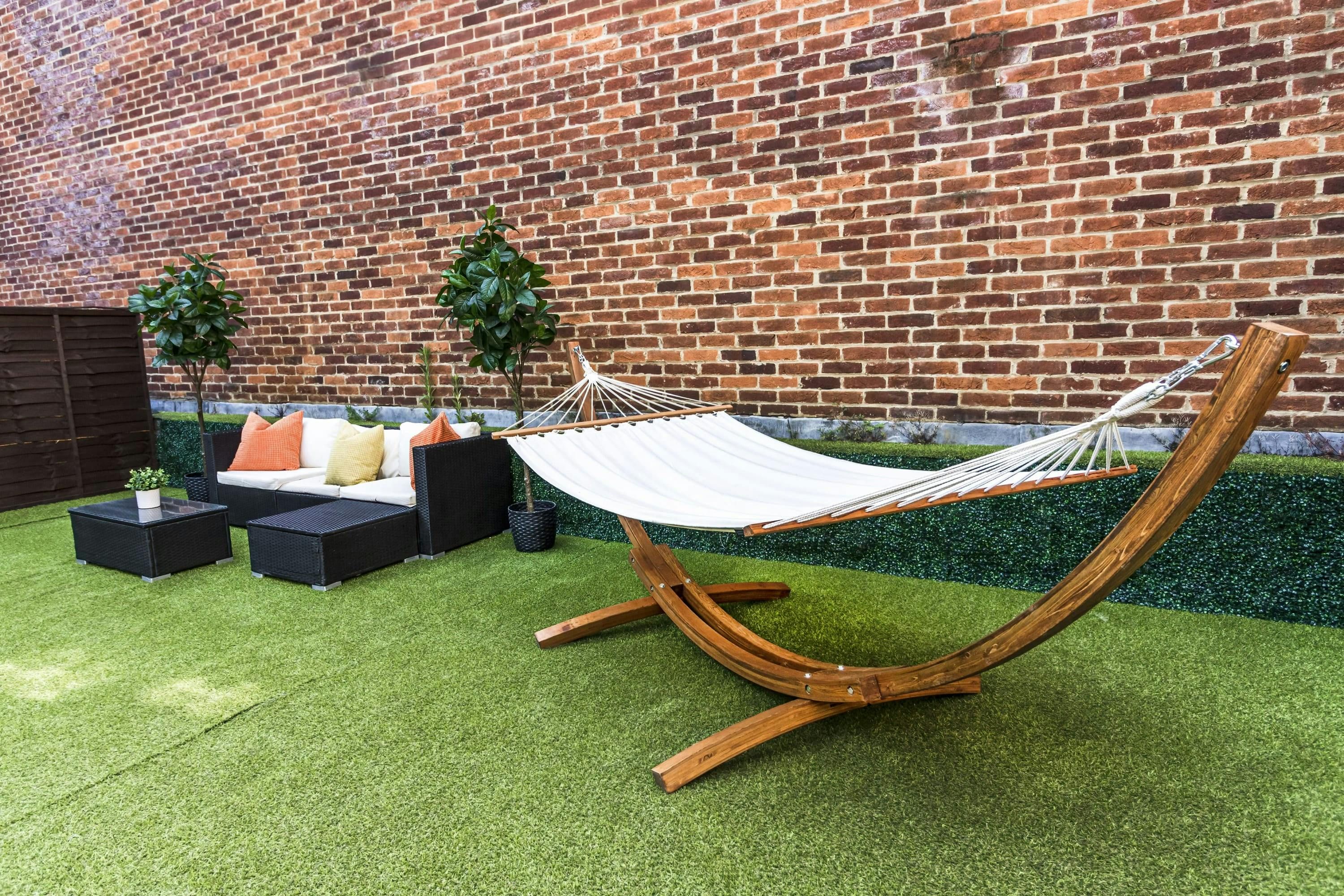 Minutes from Baker Street Station, this modern apartment offers groups of six easy access to the city. Though you'll be staying opposite the famous Regent's Park, this home's private garden is ideal for hammock snoozing as the barbecue sizzles. While two guests will be sleeping on a sofa bed in the open-concept living area, young families will appreciate the cot and high chair provided. Winning over sightseers and commuters, the central location puts Oxford Street just a short walk away.