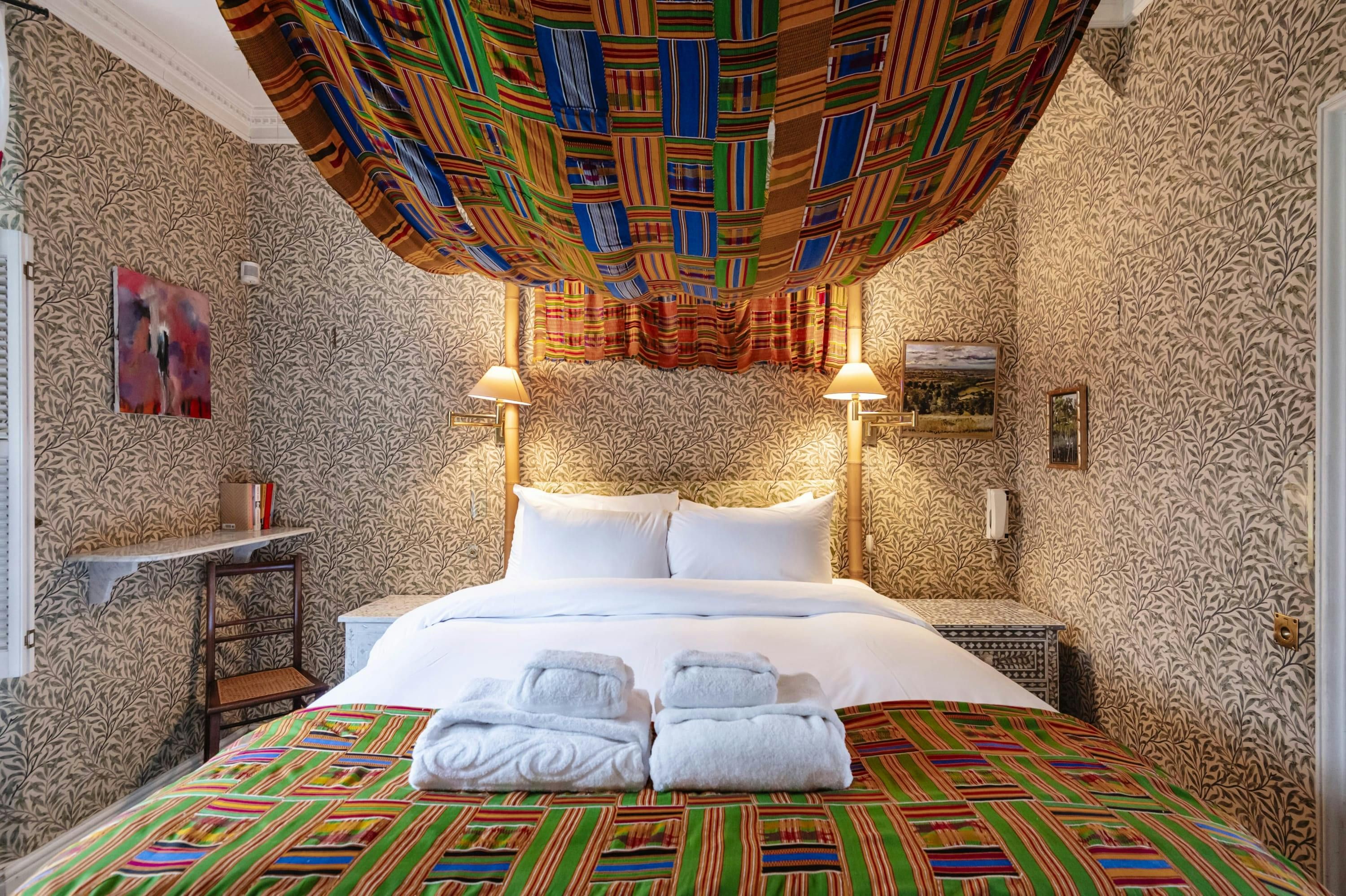 This eccentric and colourful home is a delightful choice of base in Kensington. The decor is quirky and charming, with curios in almost every corner. We love the skylight in particular, as well as the four-poster bed. The unusual layout means that there are lots of steep stairs to climb, and at full occupancy, one guest will be sleeping in a roped-off area in the living space, so it won’t suit everyone. There are plenty of eateries and shops nearby thanks to the proximity of Kensington High Street, and you’ll also be within walking distance of Hyde Park.