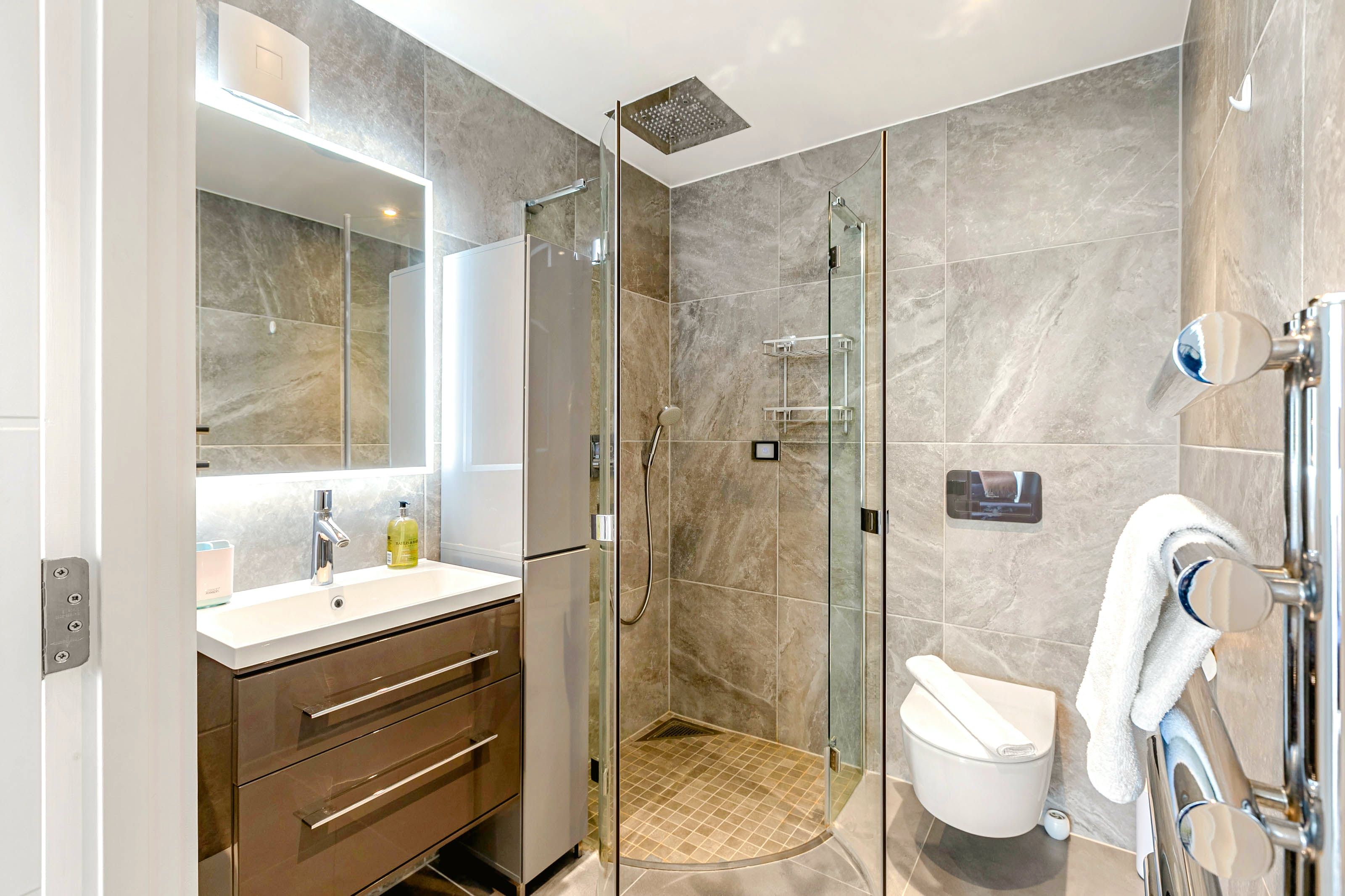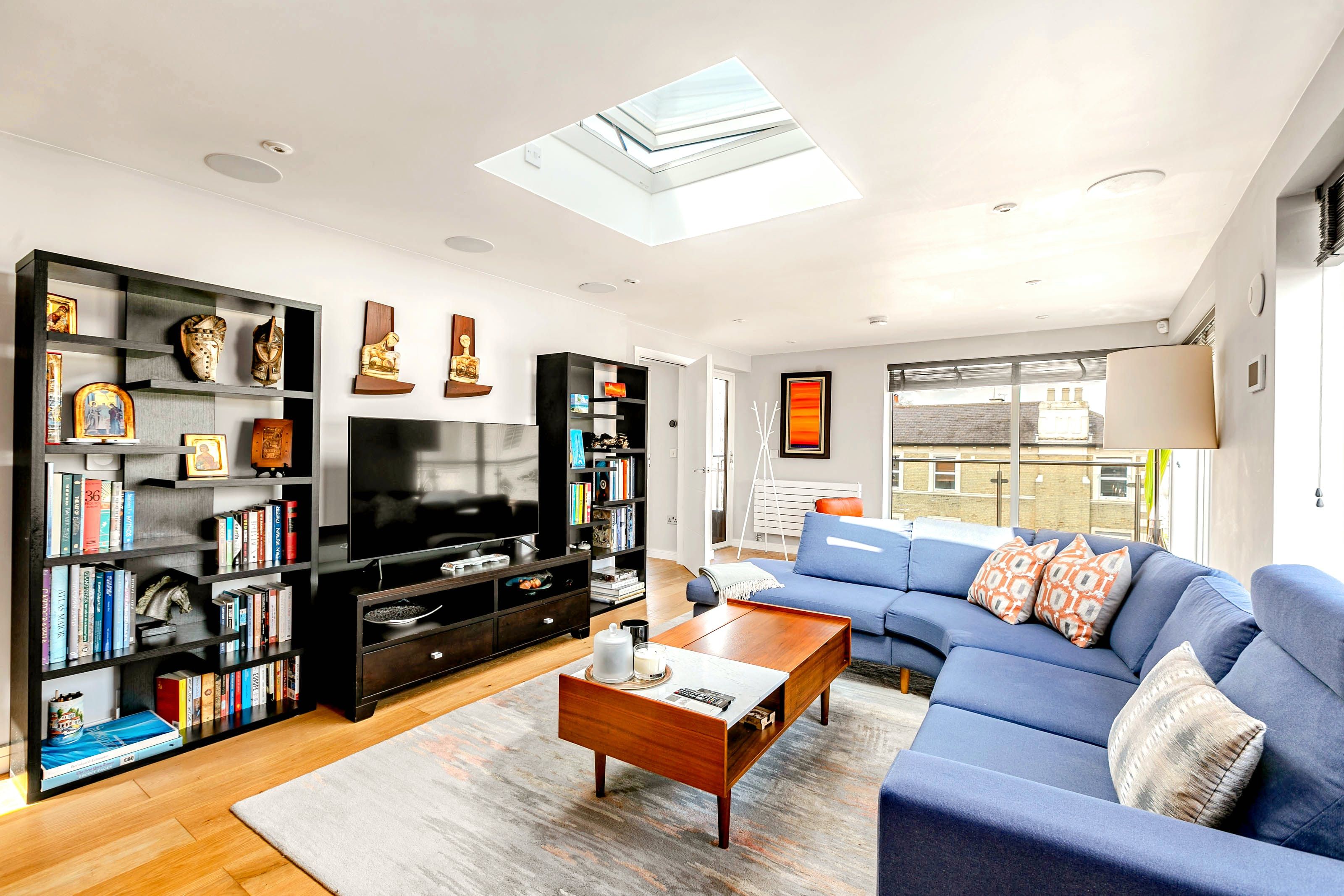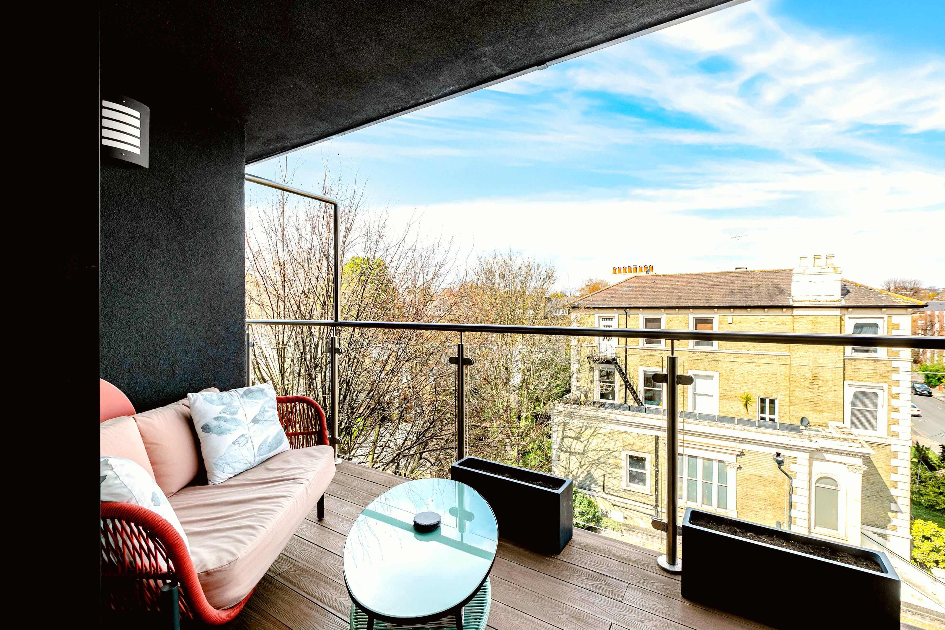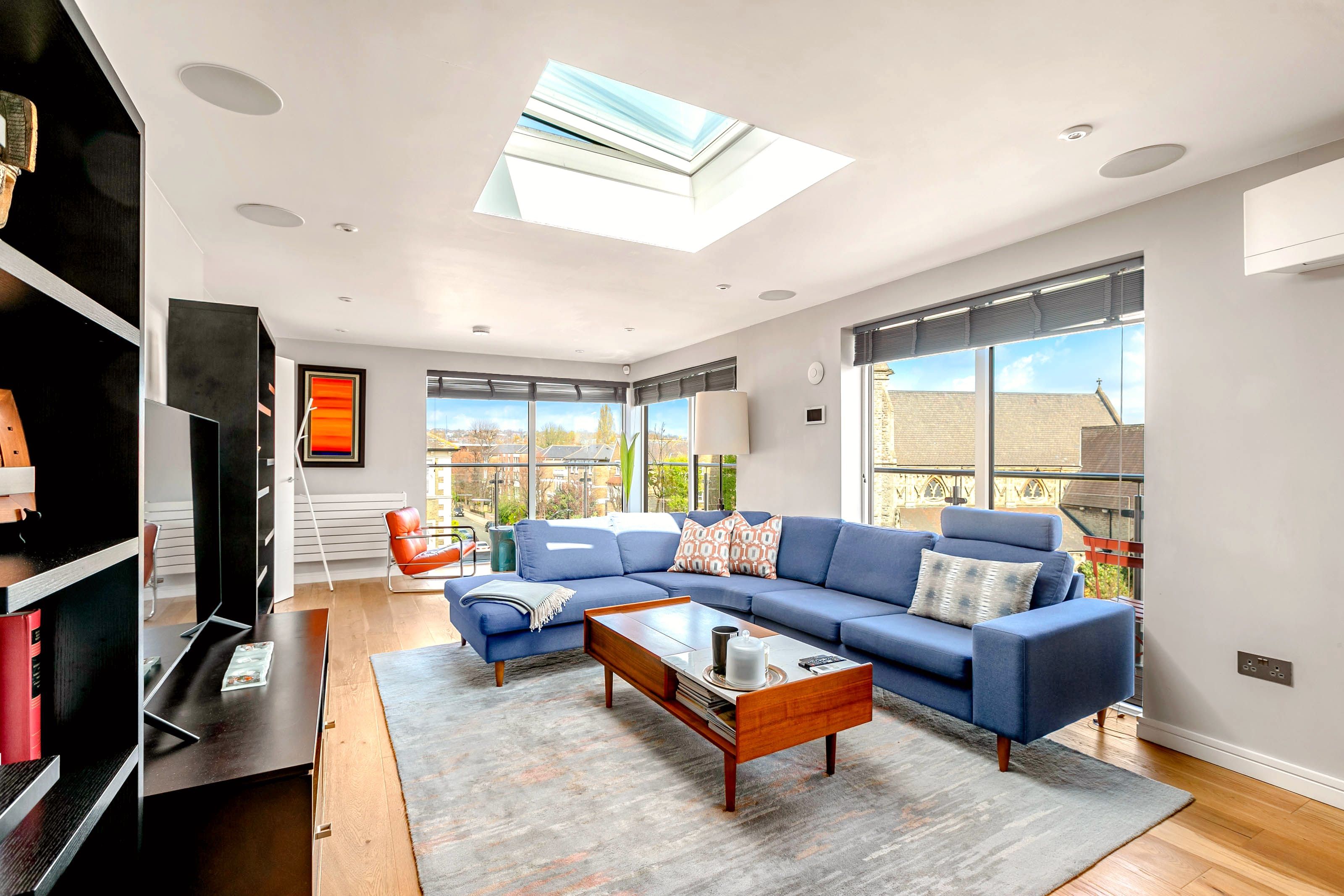 This penthouse apartment boasts an excellent location on Abbey Road, between Maida Vale and St John’s Wood. Wrap-around balconies and remote-controlled skylights ensure that this home is filled with natural light, and you can spend as much time as you like outside, enjoying the views. When you’re not out seeing the sights, you can unwind in the whirlpool bathtub or even catch up on work.