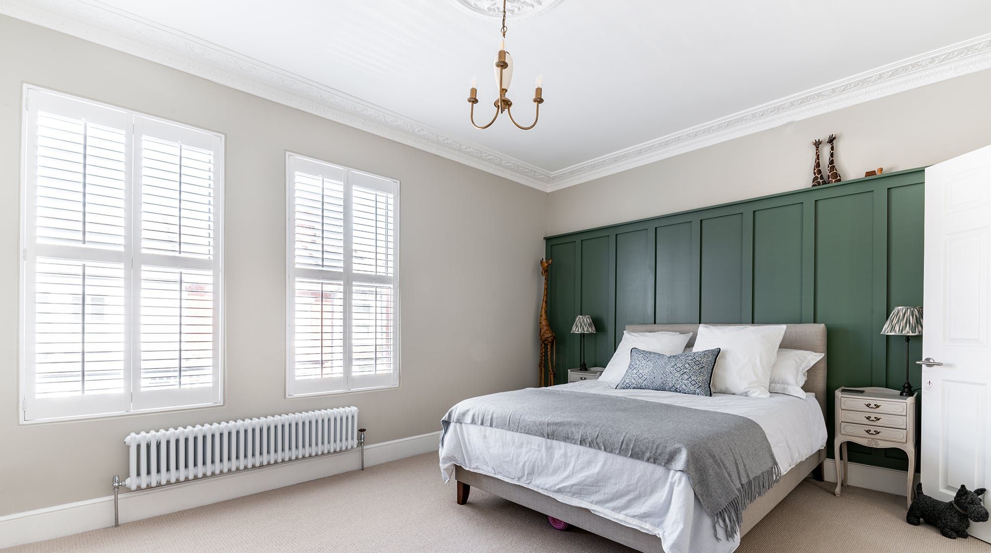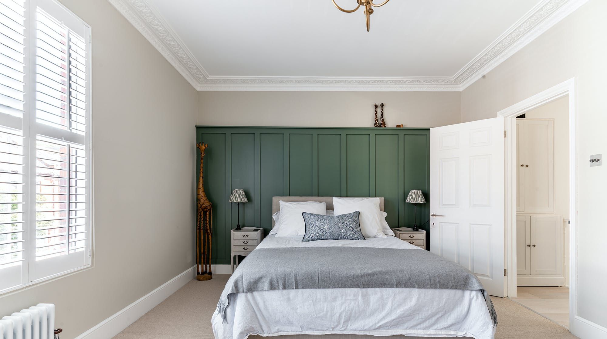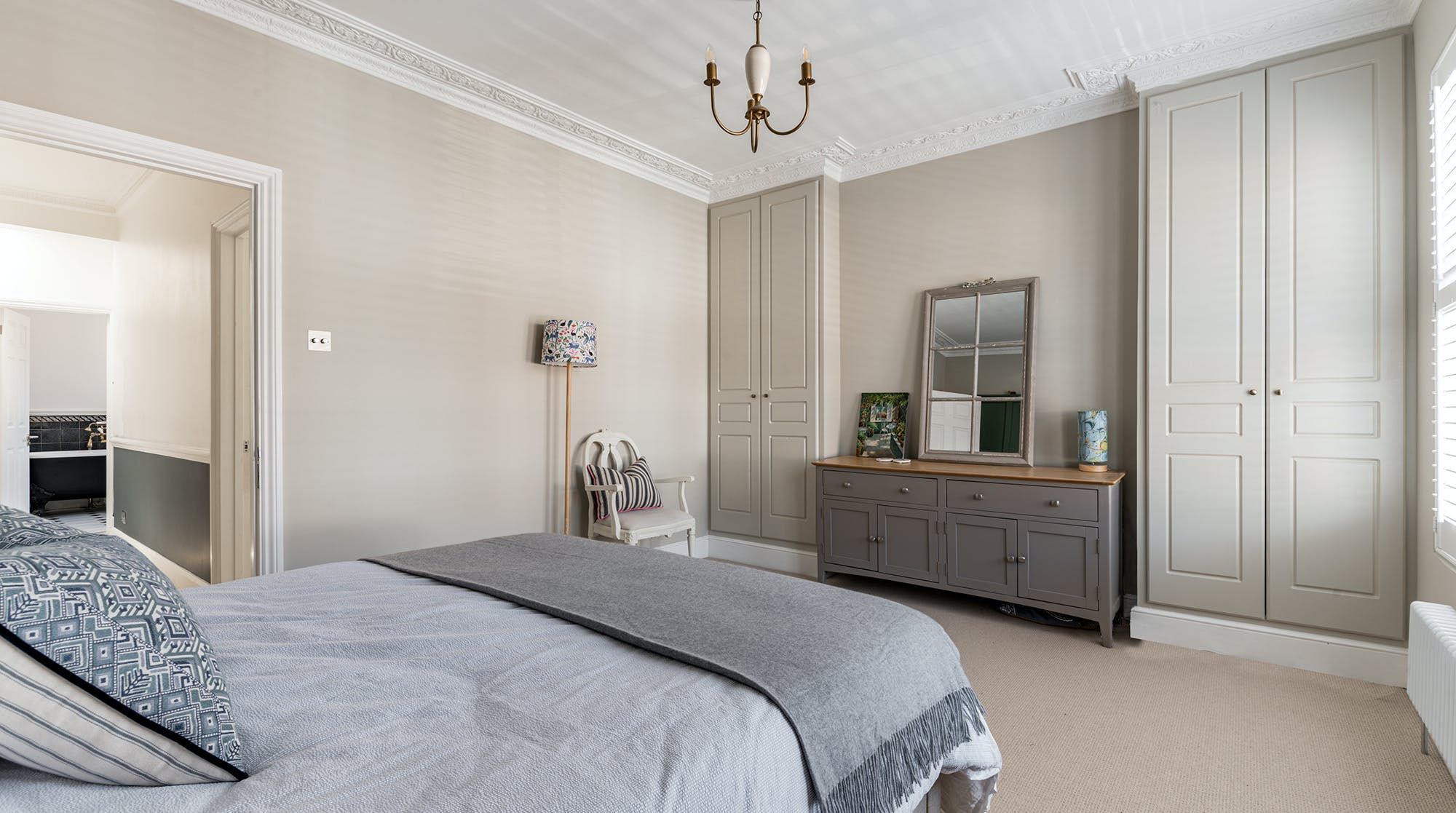 This family home is all substance and style in a trendy western suburb of London. First of all, we love the book-filled living room with ming vases and object d’art adding a personal feel to the forest-green dresser. Big windows bathe this place in natural light. There’s a desk in here (and another in the second bedroom) for those that need to work remotely, and a collection of wines on display for a post-work wind-down.