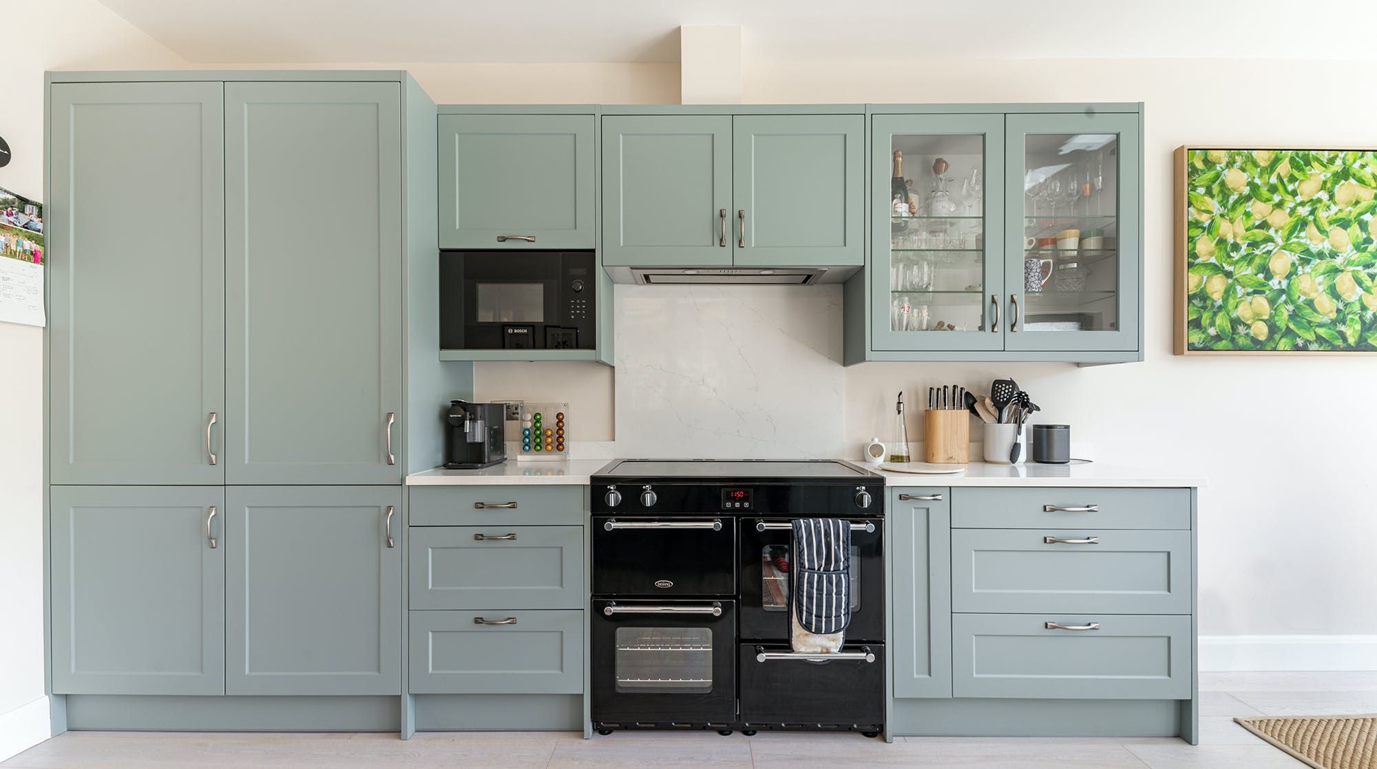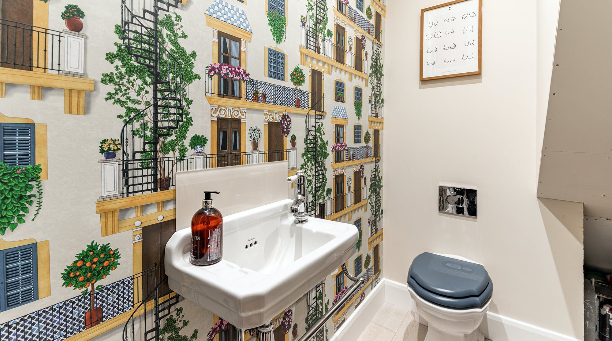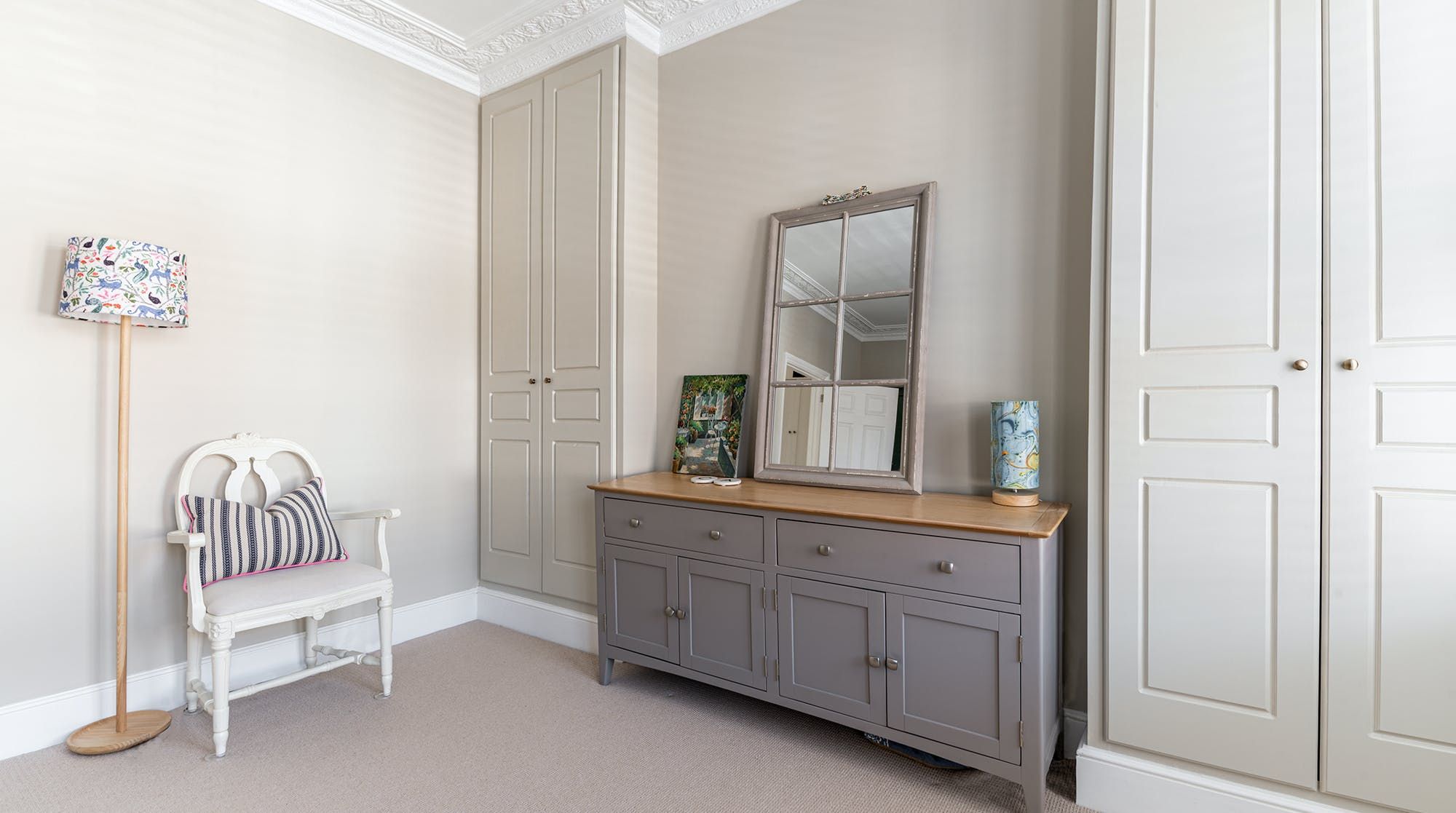 This family home is all substance and style in a trendy western suburb of London. First of all, we love the book-filled living room with ming vases and object d’art adding a personal feel to the forest-green dresser. Big windows bathe this place in natural light. There’s a desk in here (and another in the second bedroom) for those that need to work remotely, and a collection of wines on display for a post-work wind-down.