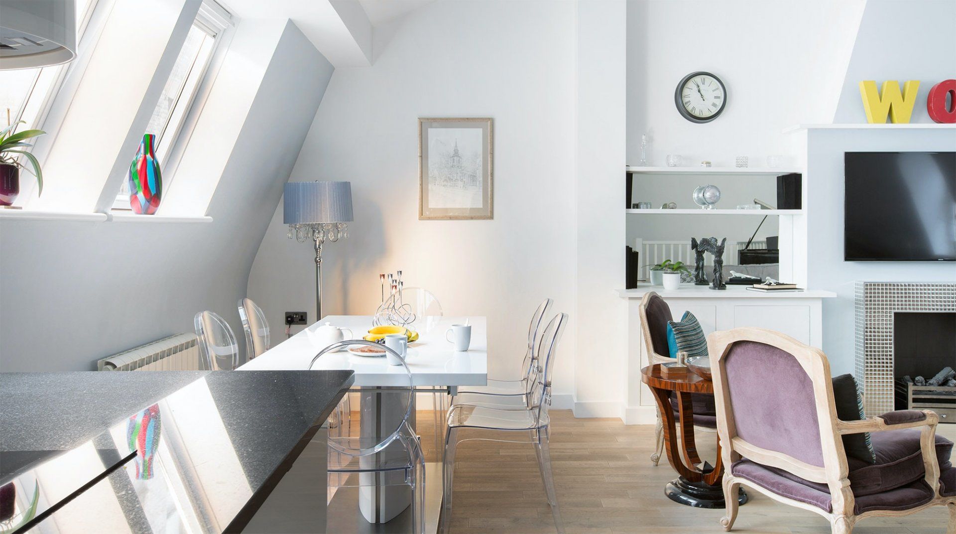This home is in a great location, it's in a gated courtyard, just off Hatton Garden in Clerkenwell, so there's easy access to the City and central London (the tube is a five-minute walk) but also an abundance of great cafes, restaurants and pubs on the doorstep. The living area is the big 'wow' of the home – it's on the top floor and feels large and light, and all the furniture is in great condition and very good quality. It's complete with a grand piano, a great entertainment selection (huge TV and Sonos speakers in the ceiling), fast wi-fi and immaculate bathrooms.