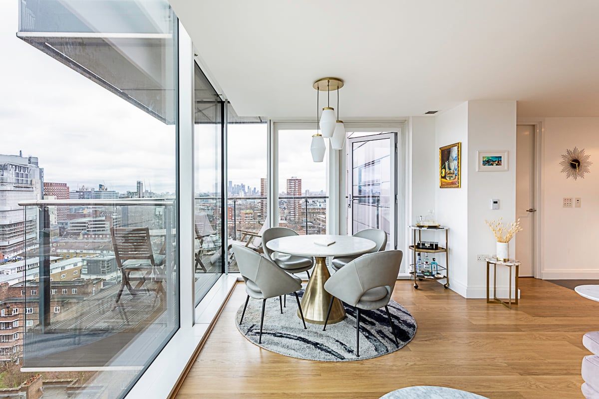 Sweeping views of London’s skyline steal the show at this Southwark apartment. Whether you’re sipping morning coffee on the balcony or winding down with evening drinks on the sofa, the city puts on a show. Perfect for friends or couples sharing, the two bedrooms sit at opposite ends of the apartment – and both come with en-suite bathrooms for that extra bit of privacy. When you’re ready to head out, Borough Market and London Bridge are just a stroll away. Or hop on the tube at Borough Station, only 200 metres down the road, to explore another corner of the city.