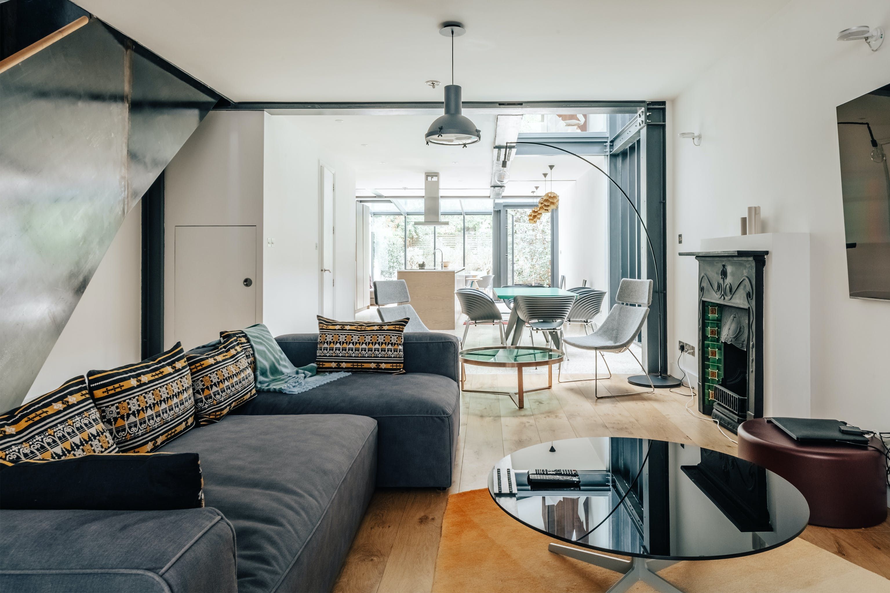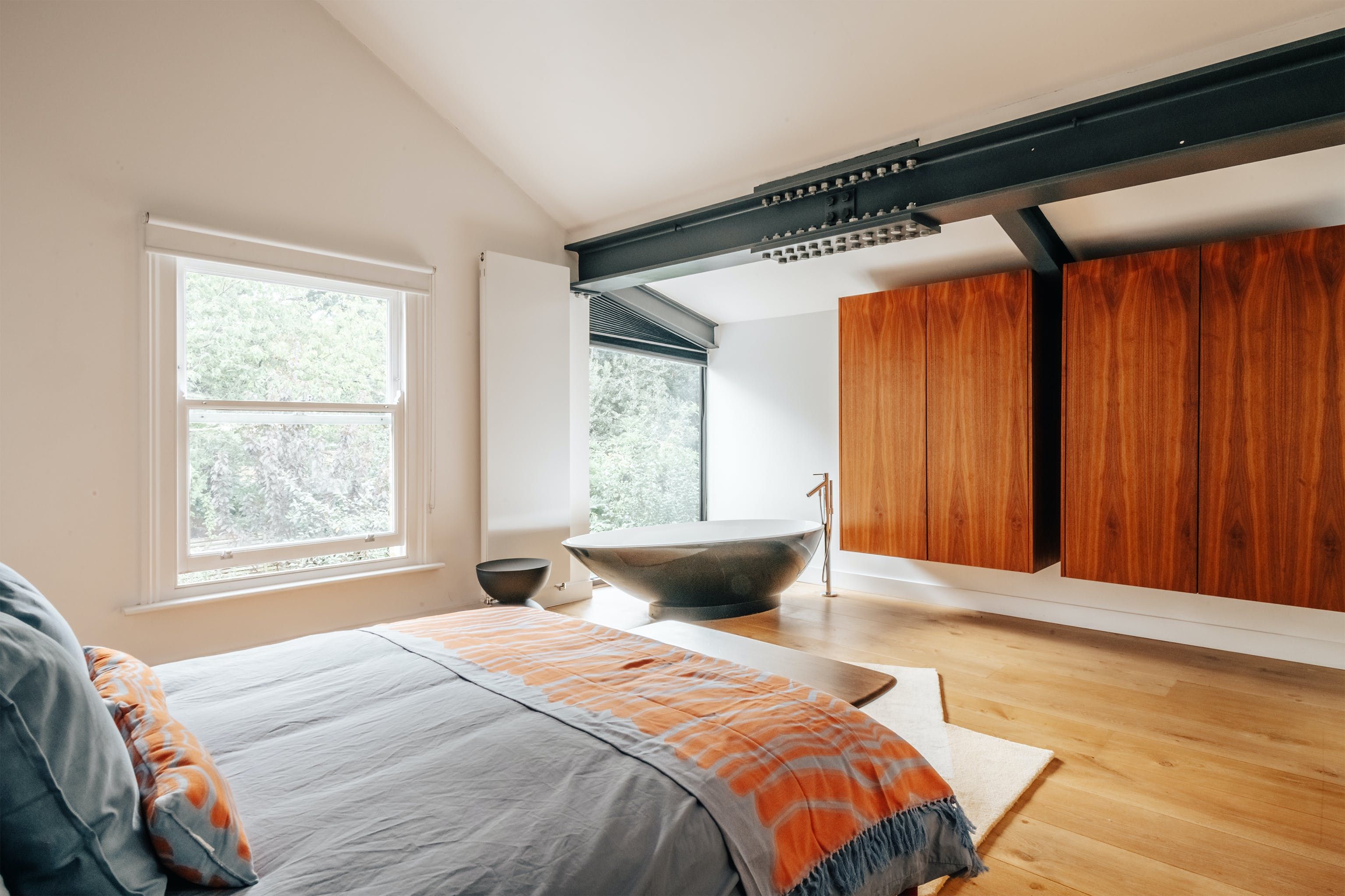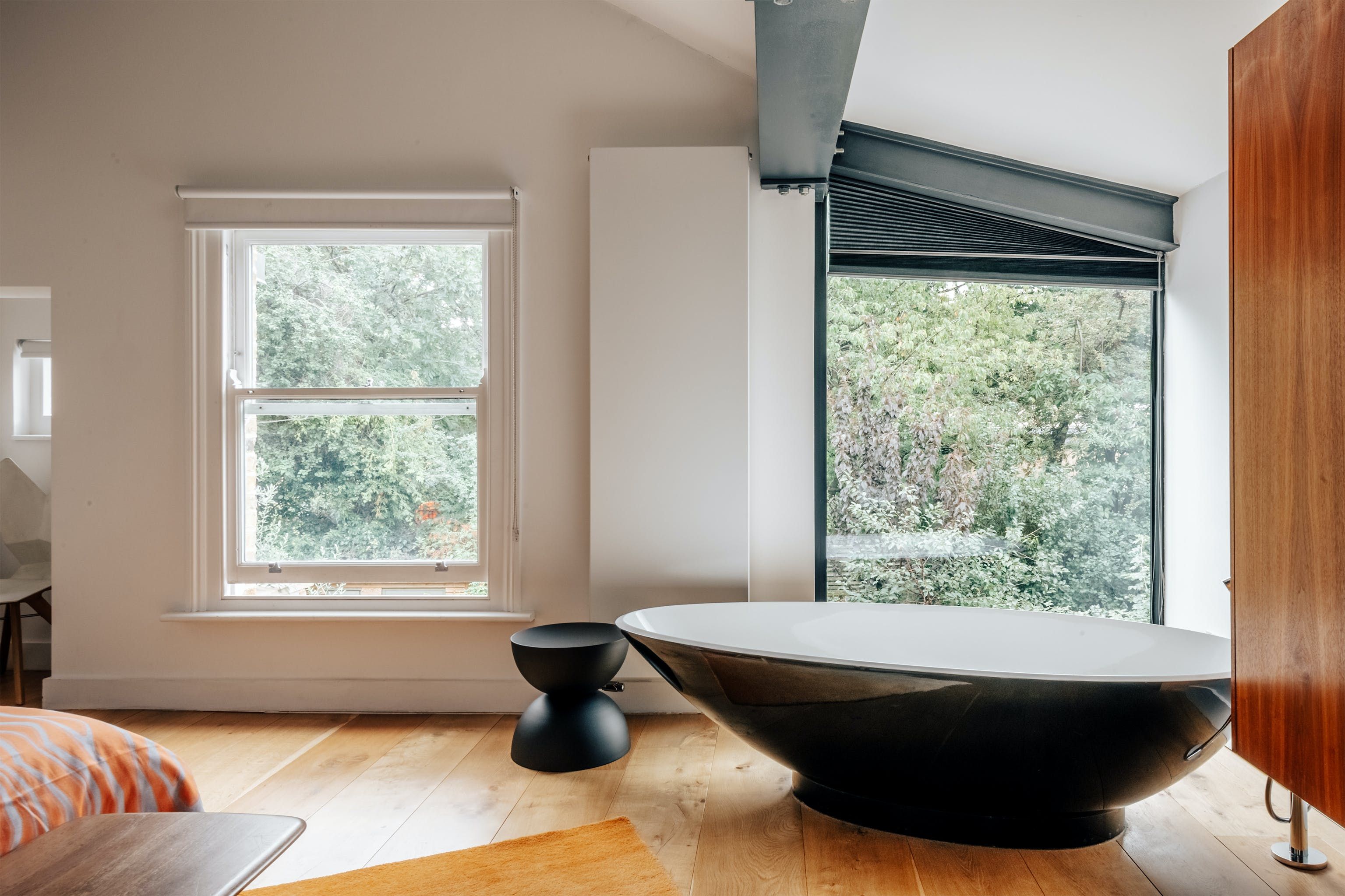 Close to Notting Hill, this chic modern home is ideal for families. At full capacity, two guests will sleep on the sofa bed in the living room, but pets are welcome here and your host can provide a cot and high chair for little ones. The main suite enjoys a luxurious standalone bathtub by the window, and the garden has seating for enjoying a cup of tea and space for children to play. While the only parking available here is paid, you'll find public transport nearby for getting around.