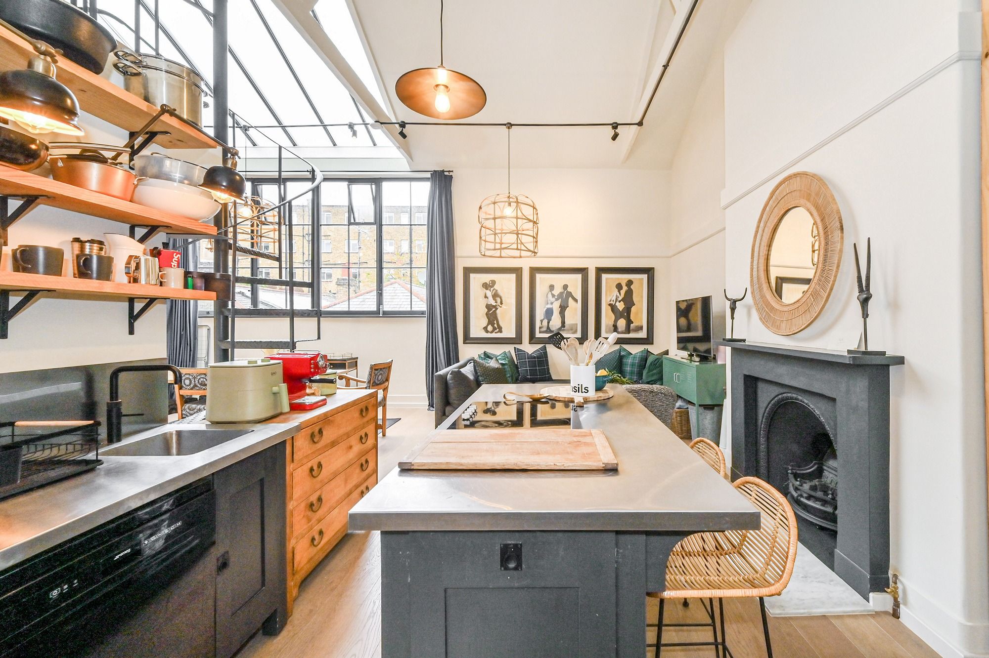 Situated in prestigious South Kensington, this studio-style apartment is in a prime location. You’ve got a trio of world-renowned museums within a fifteen-minute walk – the Natural History Museum, the V&A, and the Science Museum – as well as the high-end boutiques on King’s Road. With a double-height ceiling, dining area, and mezzanine level, the home is much bigger than your average London studio. While the open-plan layout here makes for a sociable space, privacy will be limited come bedtime. With that in mind, we think this apartment is best suited to a couple or family wanting a characterful base in a central spot.
